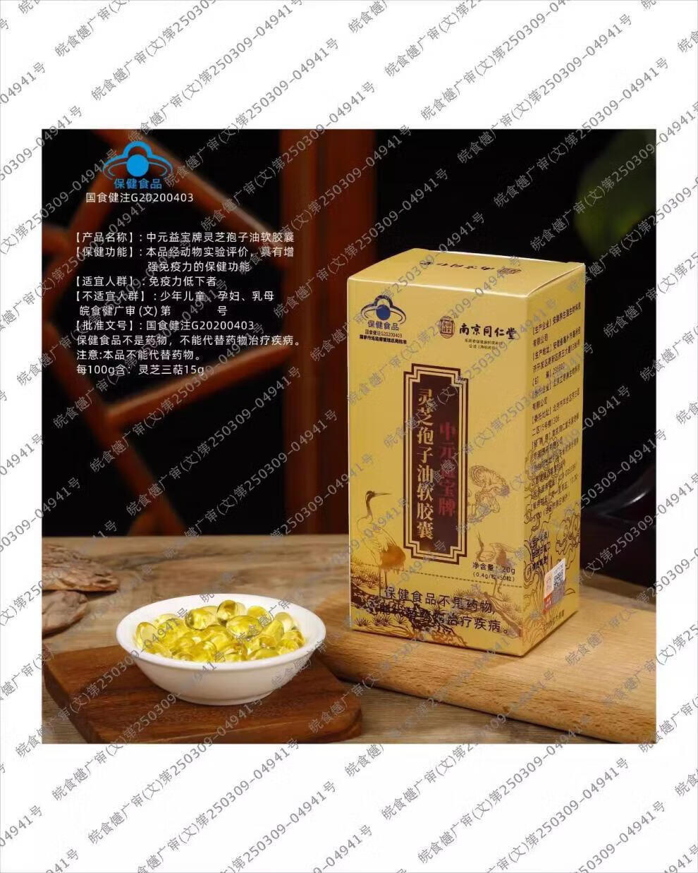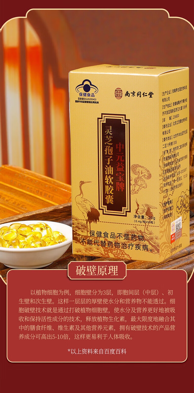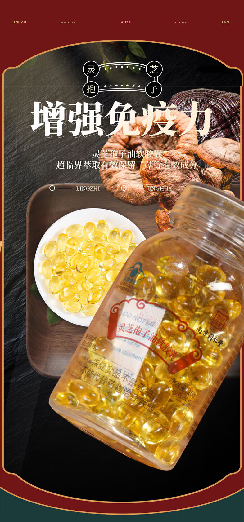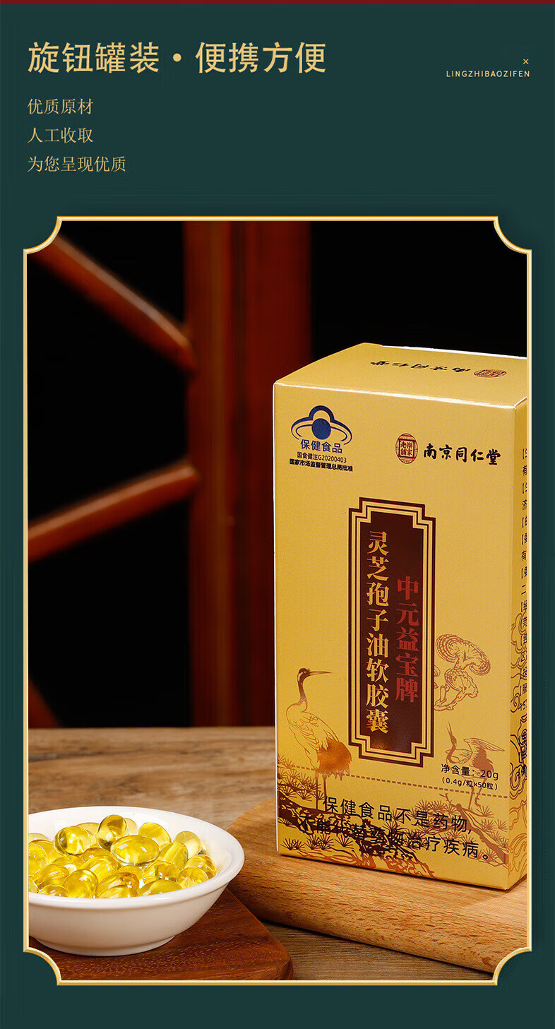 Nanjing Tongrentang Ganoderma lucidum spore oil soft capsules, broken spore powder to enhance immune constitution, post-operative nourishing robe oil soft capsules 20g (0.4g/capsule*50 capsules)/bottle*5 boxes, Ganoderma lucidum spore oil Zhongyuan Yibao brand post-operative nourishment and health gift to parents