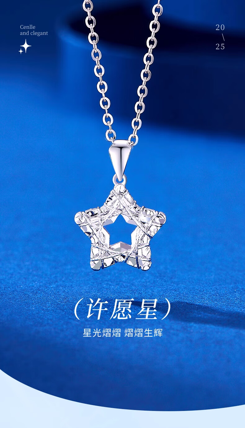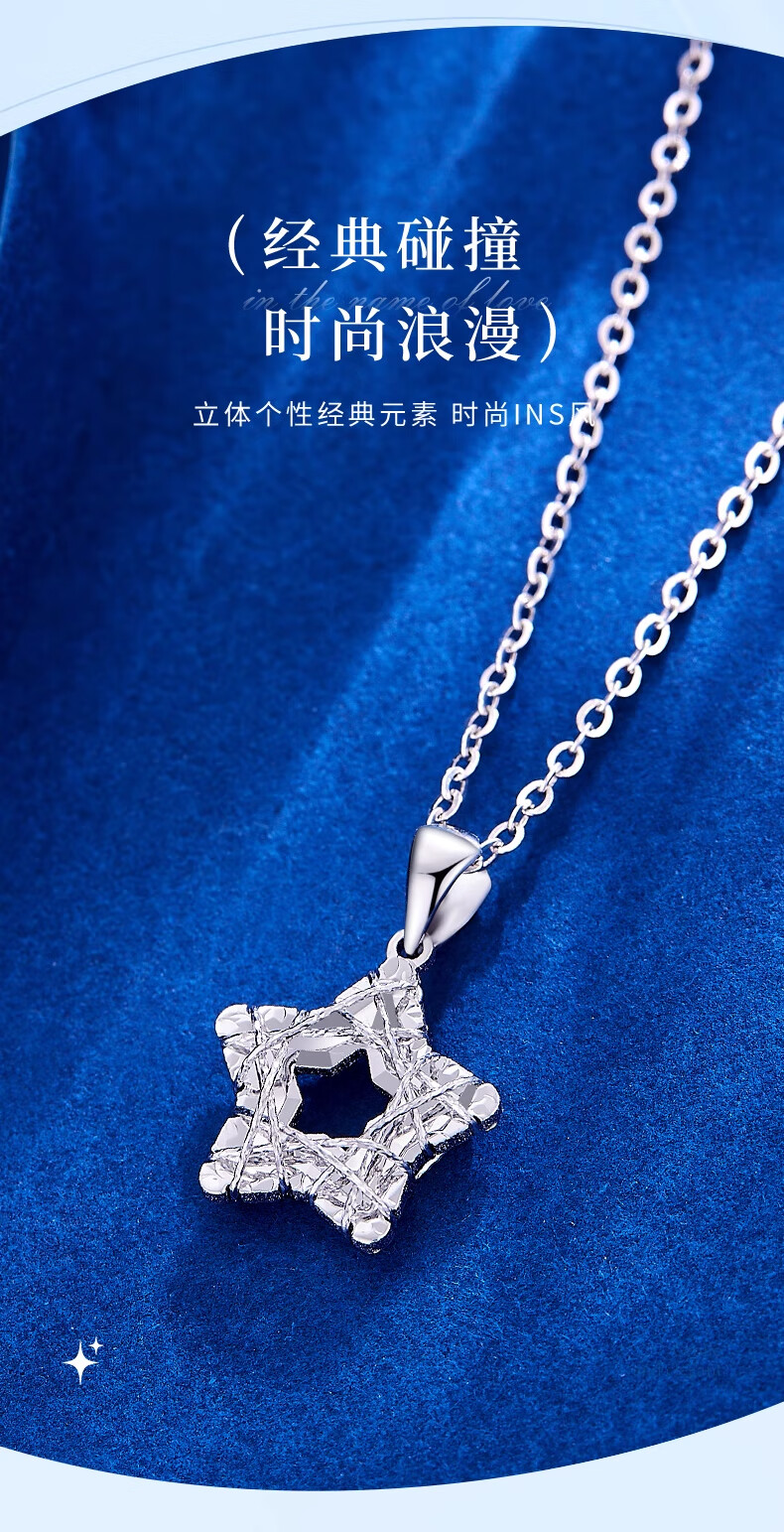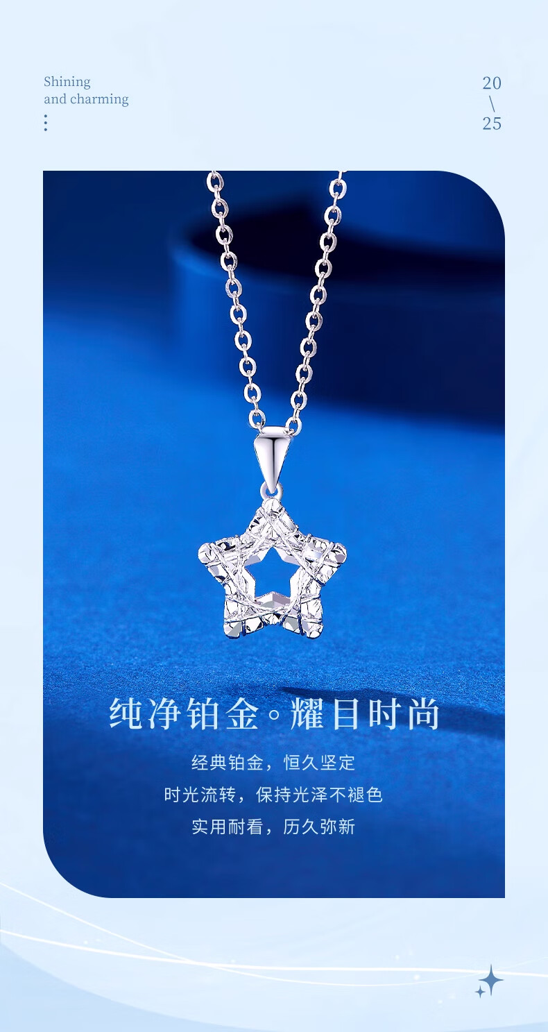 CHINA GOLD Platinum Pendant Women's PT950 Wishing Star Necklace Winding Hollow Valentine's Day Birthday Gift for Girlfriend and Wife Platinum Wishing Star Pendant About 2.3g Free Silver Chain + Brand Gift Box