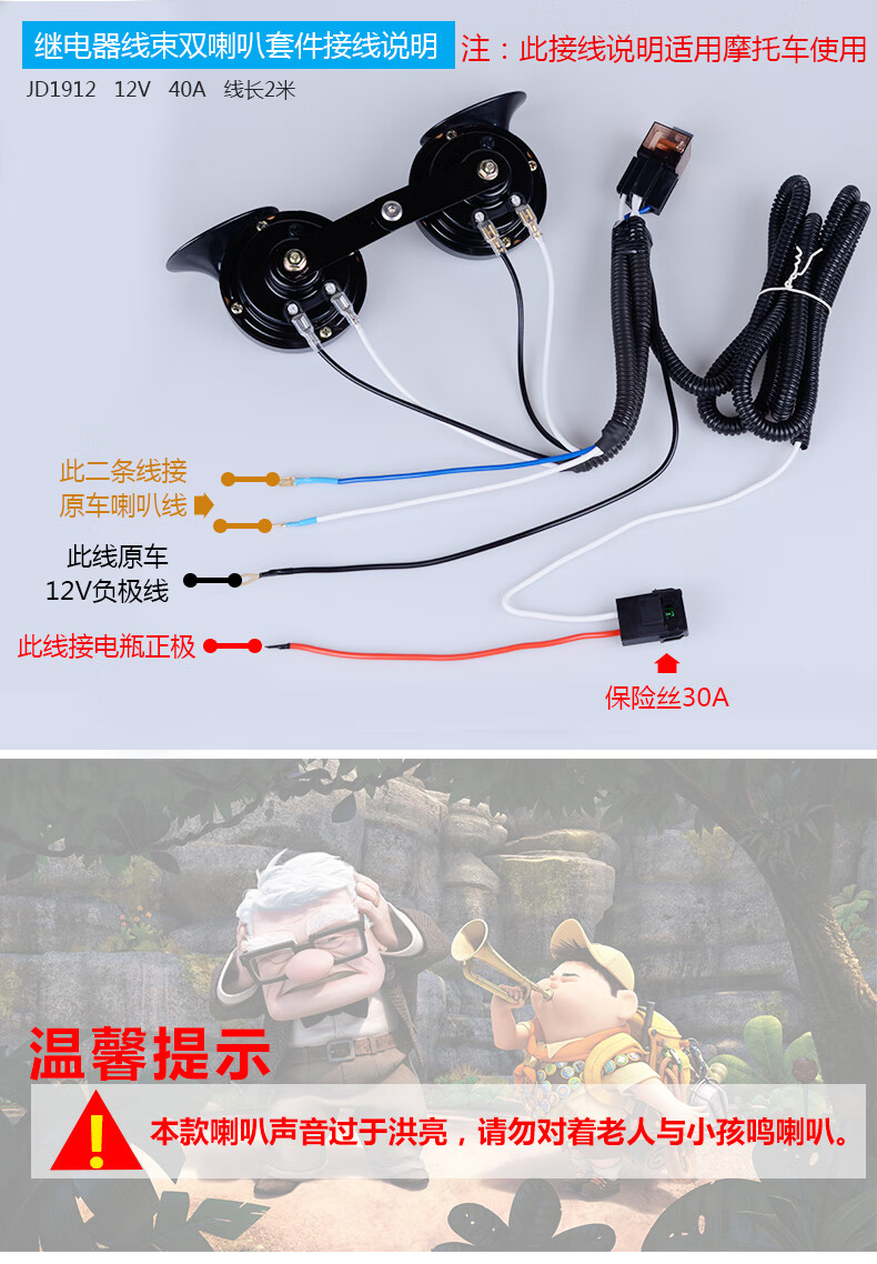 Car snail horn super loud high and low two-tone whistle 12v24V waterproof motorcycle universal truck electric horn 12v pair + wire with iron plate