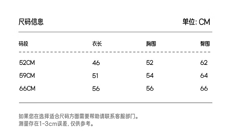 Size (cm) 42 44 46 48 50