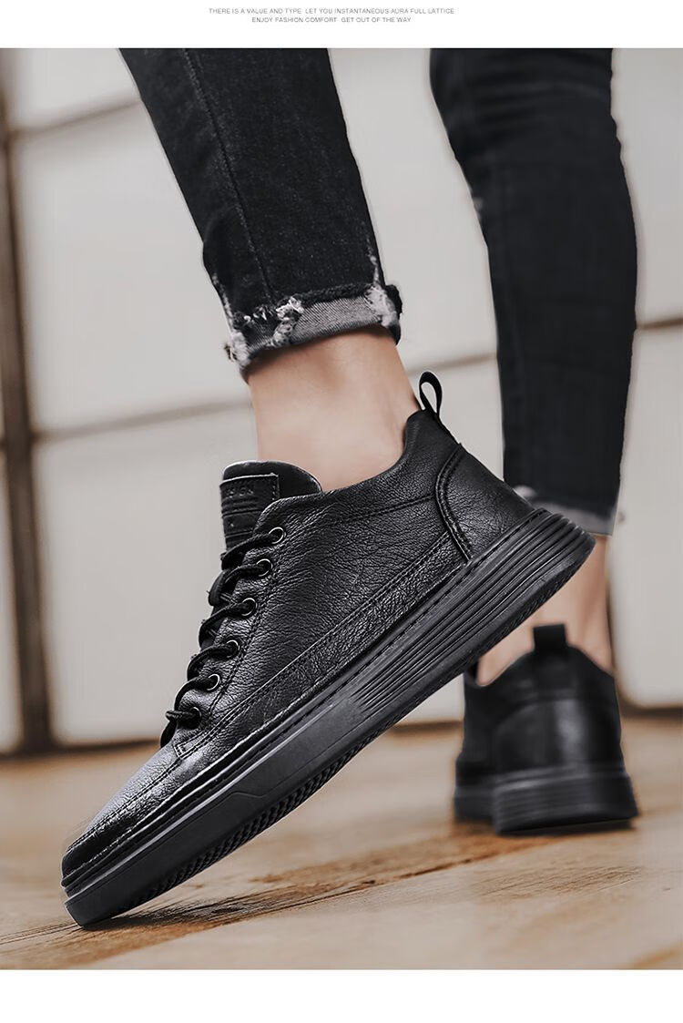 Woodpecker Men's Shoes Autumn 2025 New Kitchen Waterproof Anti-skid Shoes Men's Casual Leather Shoes Black Work Versatile Trendy Shoes Black 42