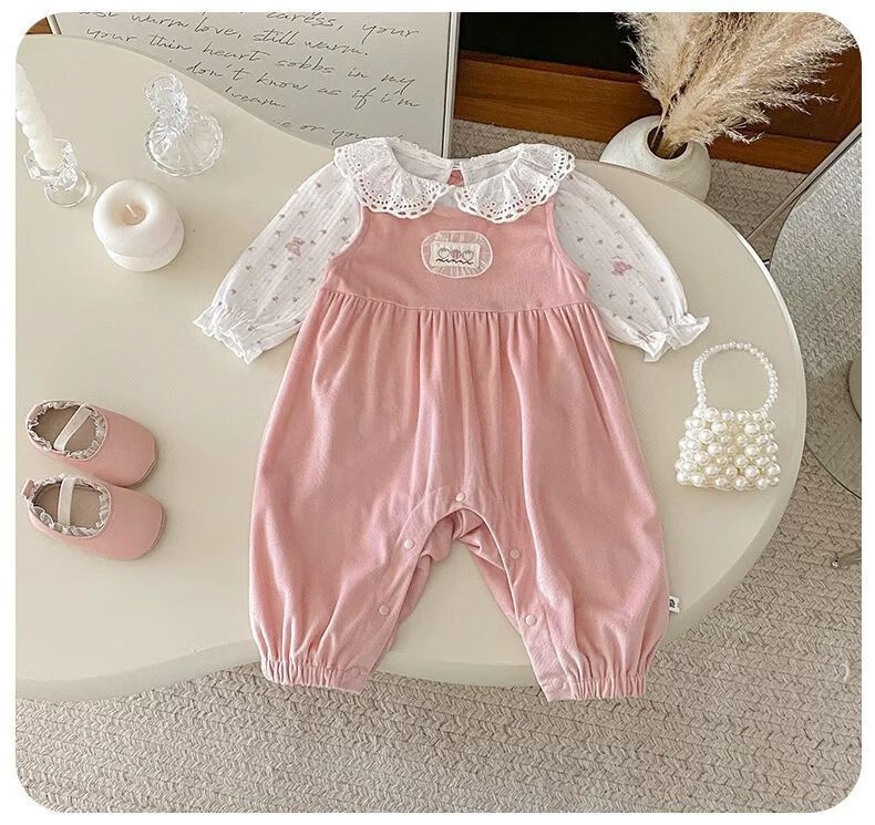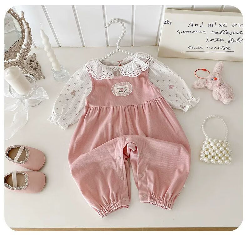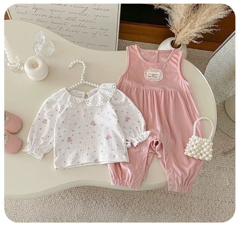 G.DUCKKIDS little yellow duck high-end baby clothes autumn and winter new baby girl bottoming shirt top overalls two-piece vest official flagship pink official flagship 90 one size fits all