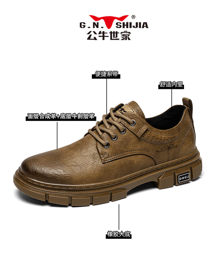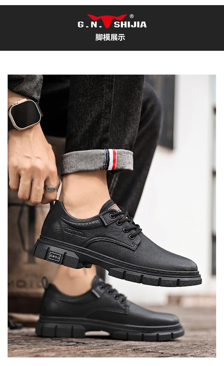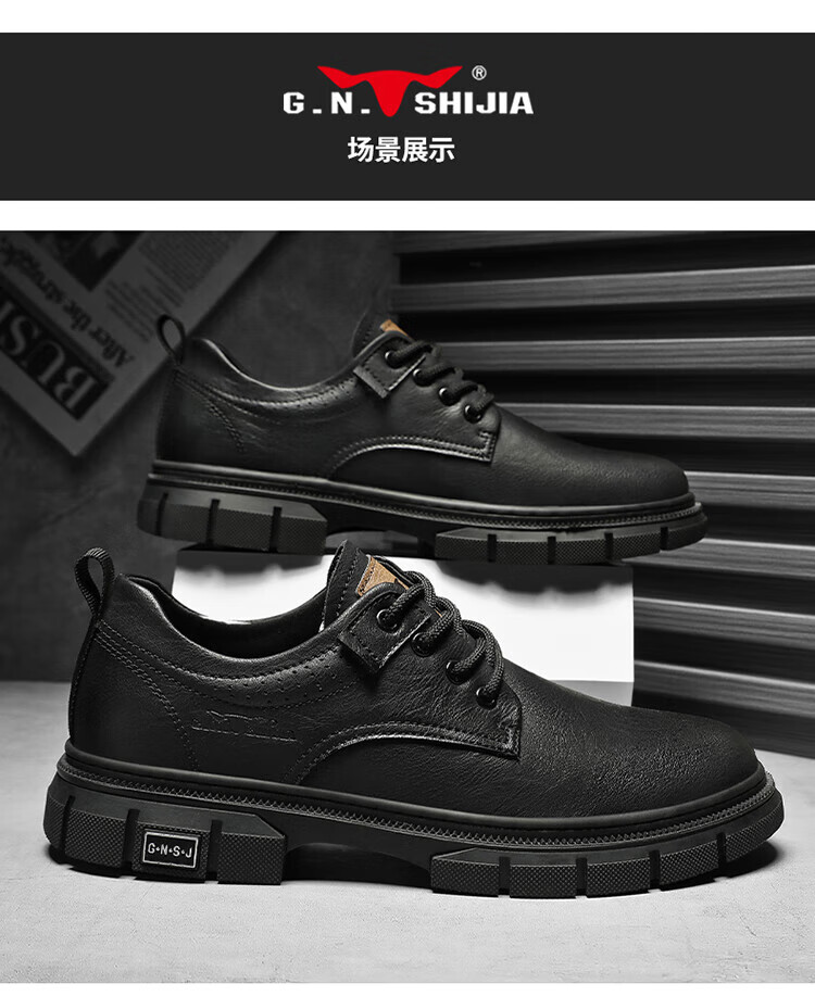 Bull Family Business Formal Leather Shoes Men's Shoes Autumn and Winter 2025 New Shoes Men's Casual Men's Genuine Leather Martin Boots Men's Black Four Seasons Shoes GN123101753 41 (Standard Sports Code)