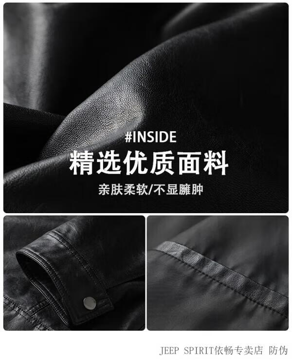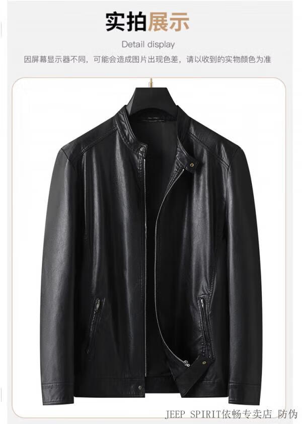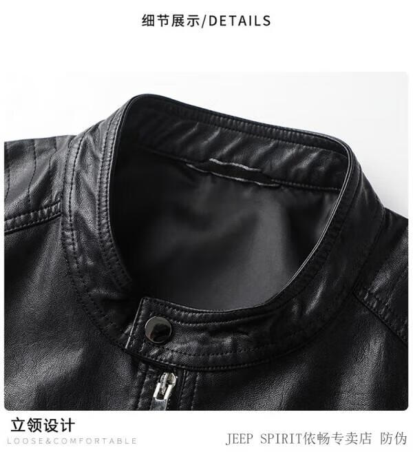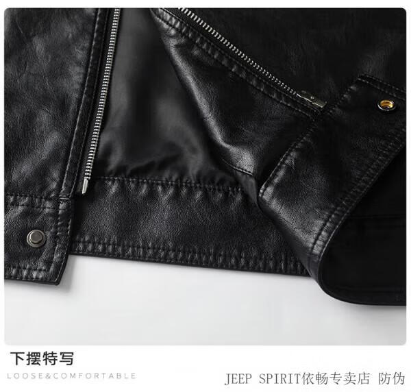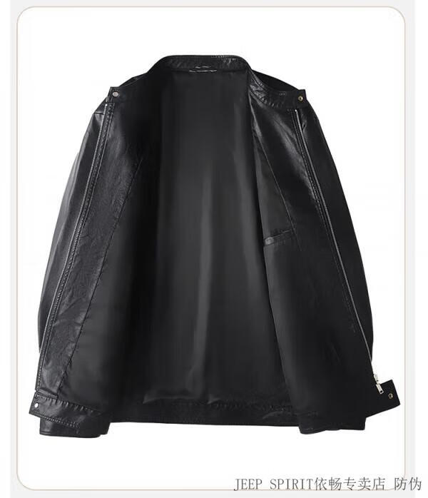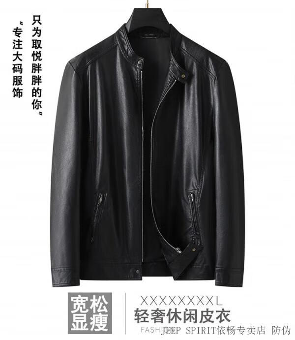 JEEP SPIRIT Jeep Plus Size Men's Motorcycle Leather Jacket Spring and Autumn Trendy Fat Man Loose Stand Collar Soft Leather Jacket 58962 7XL Recommended 260-280Jin Jin is equal to 0.5 kg