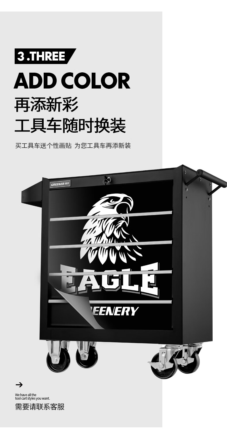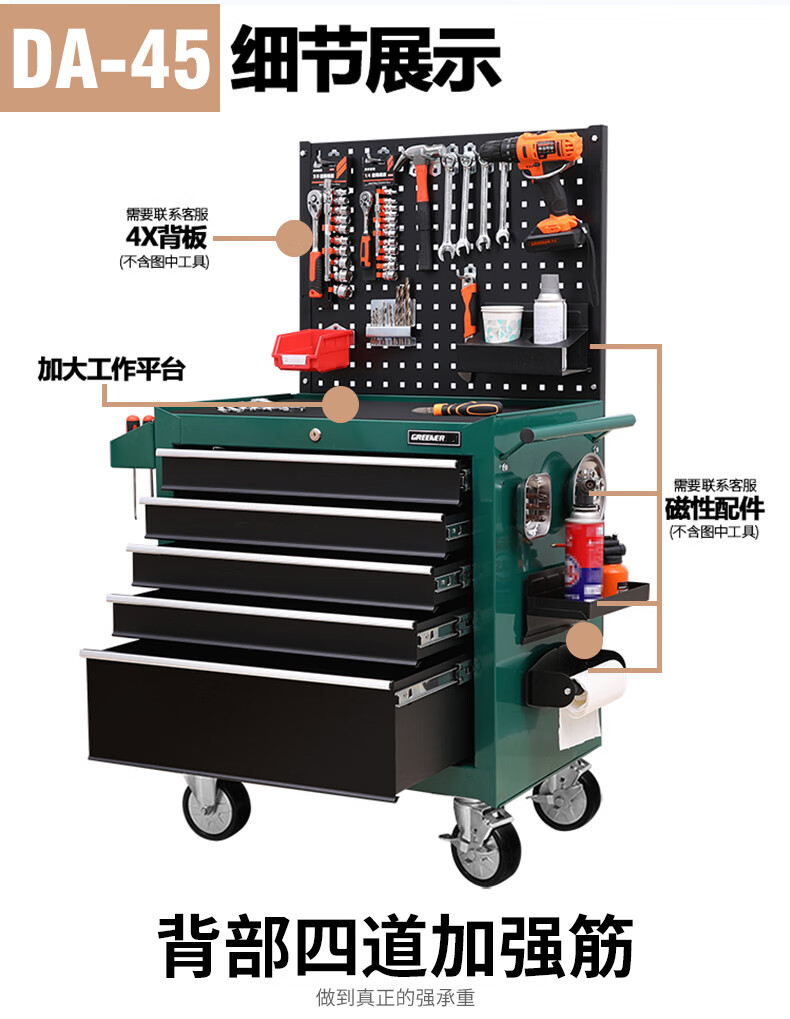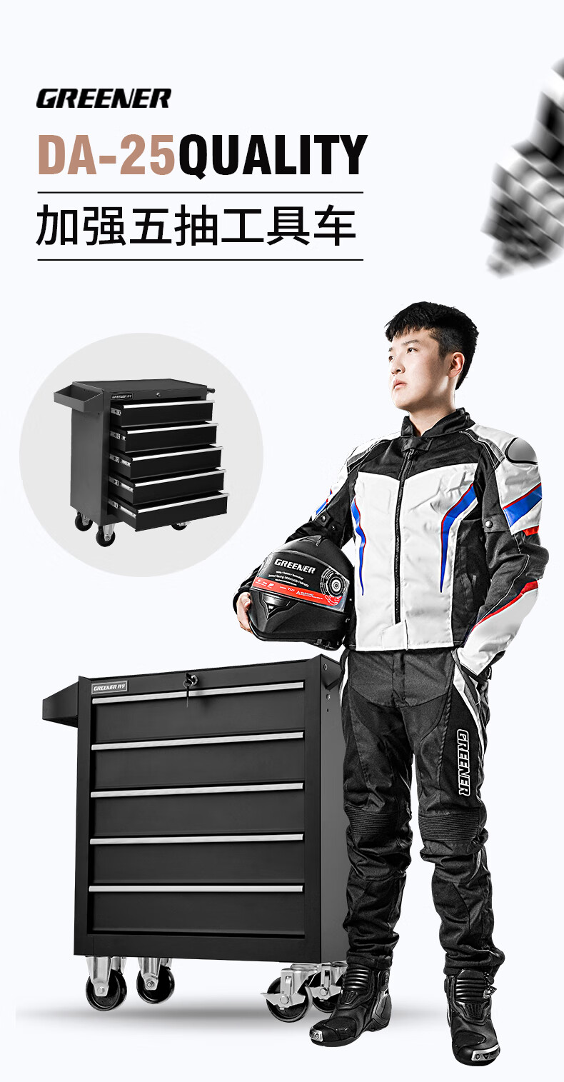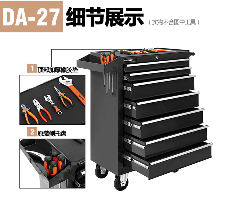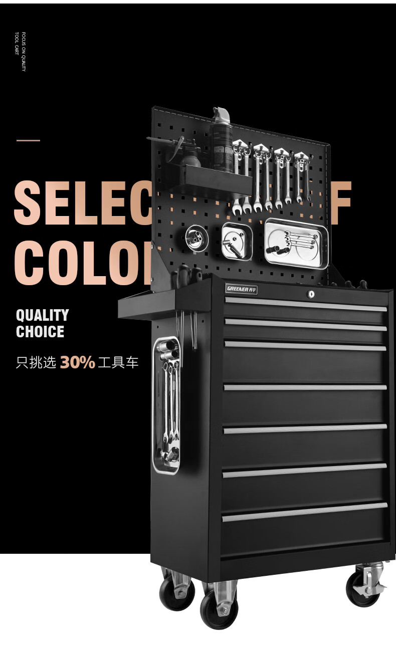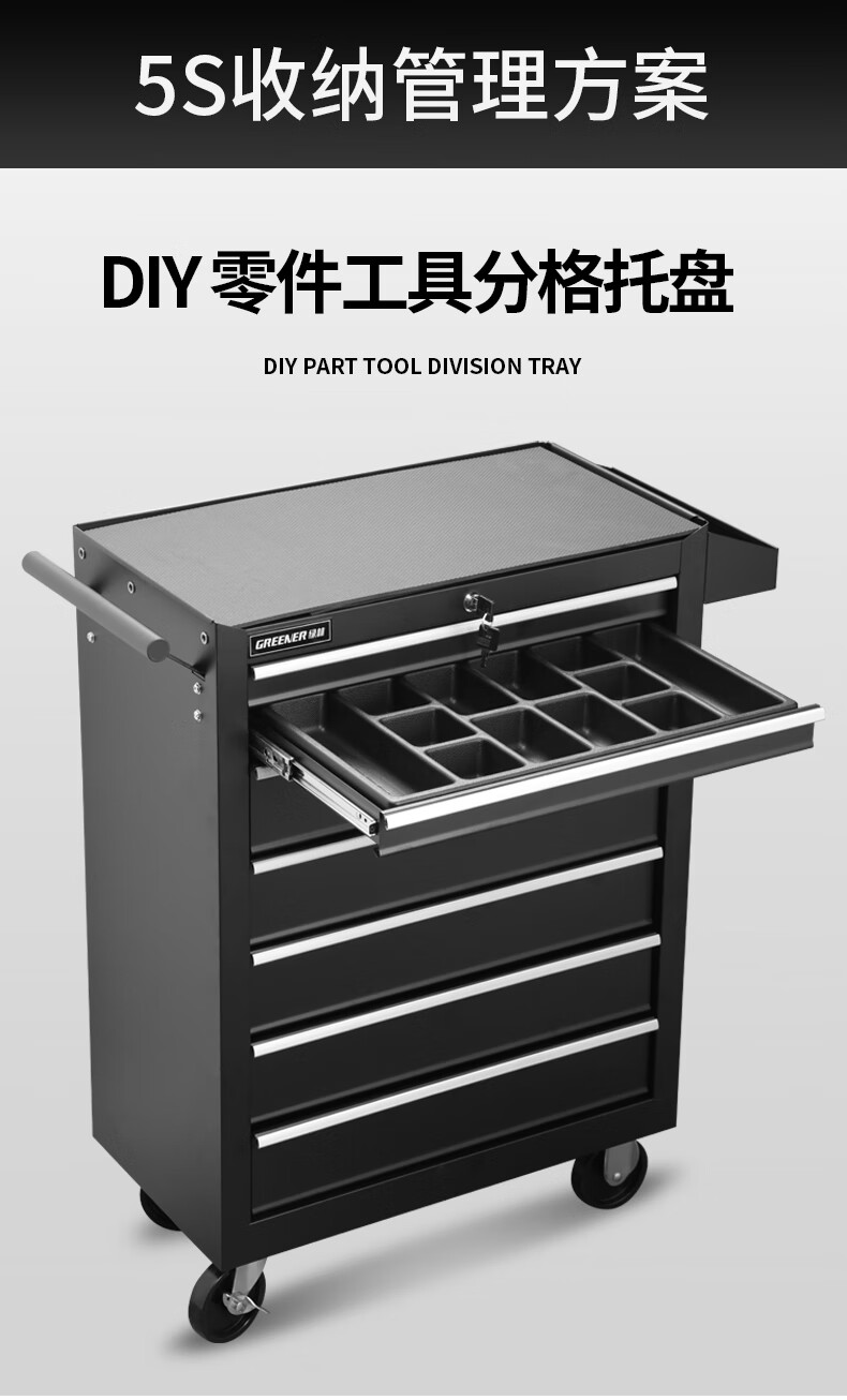 GREENER Auto Repair Tool Trolley Multifunctional Drawer Tool Cabinet Mobile Metal Repair Box for Workshop High-end Cabinet Black