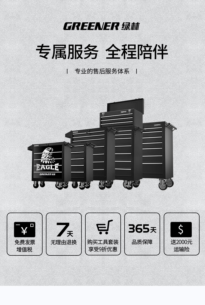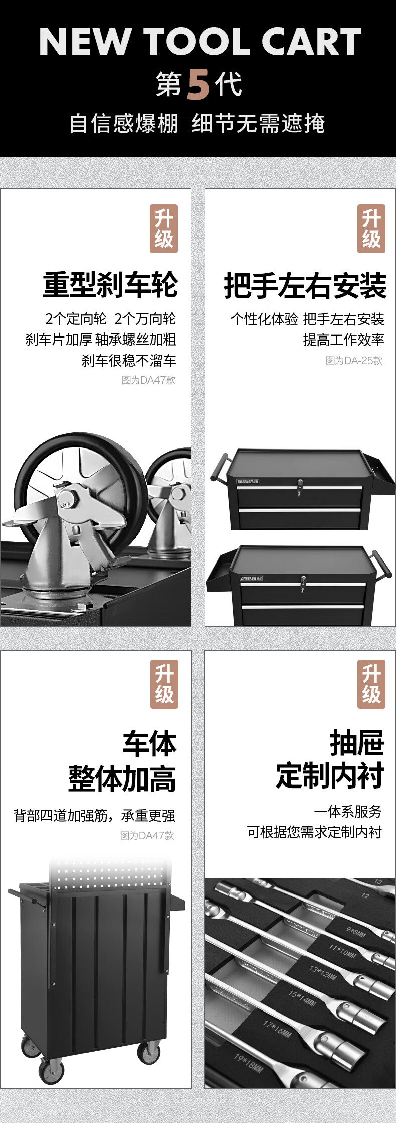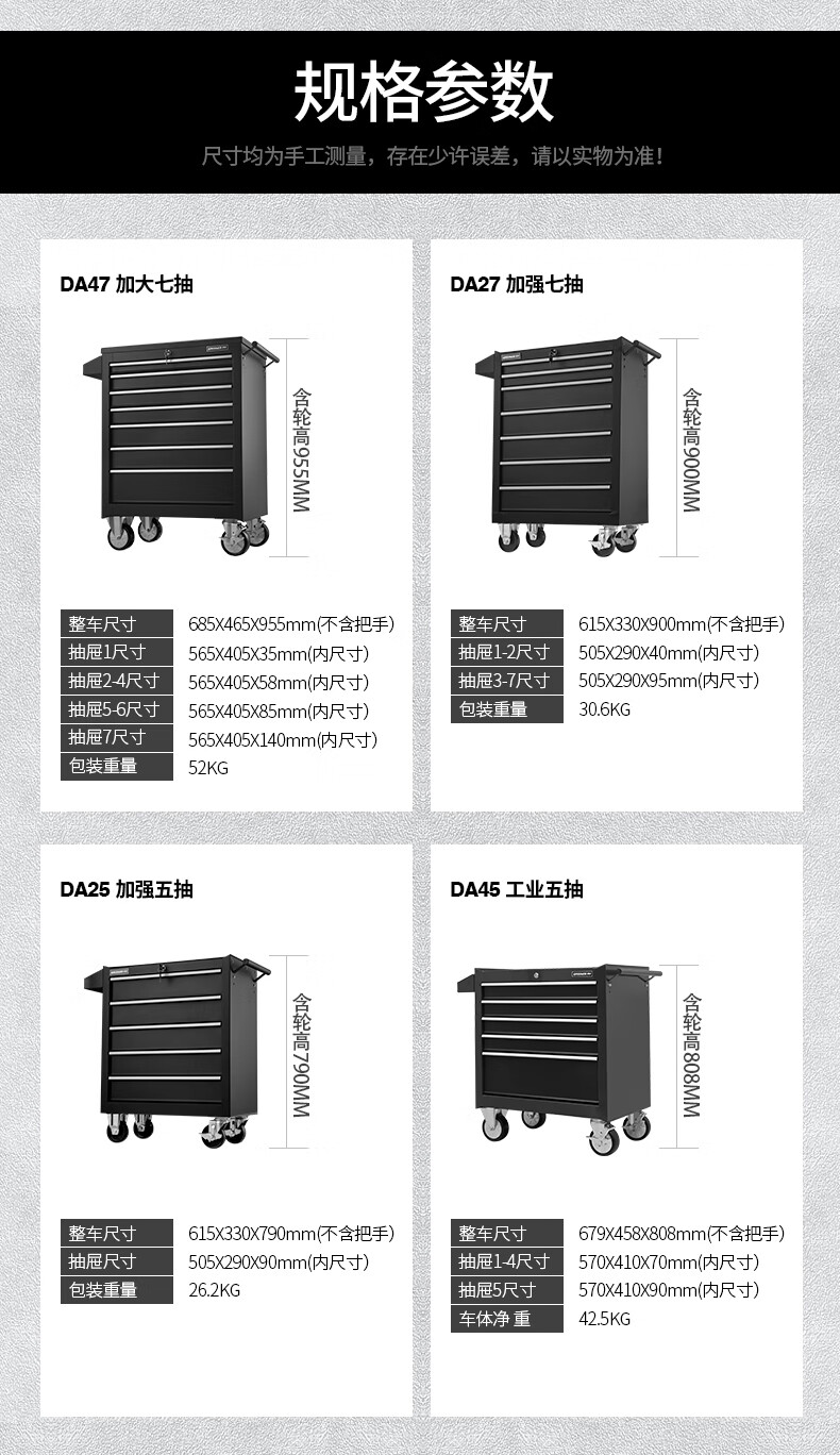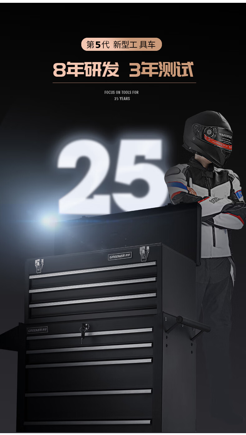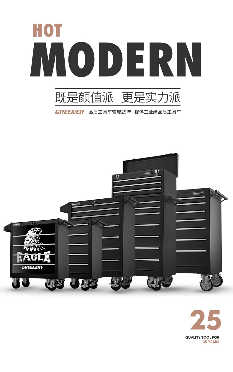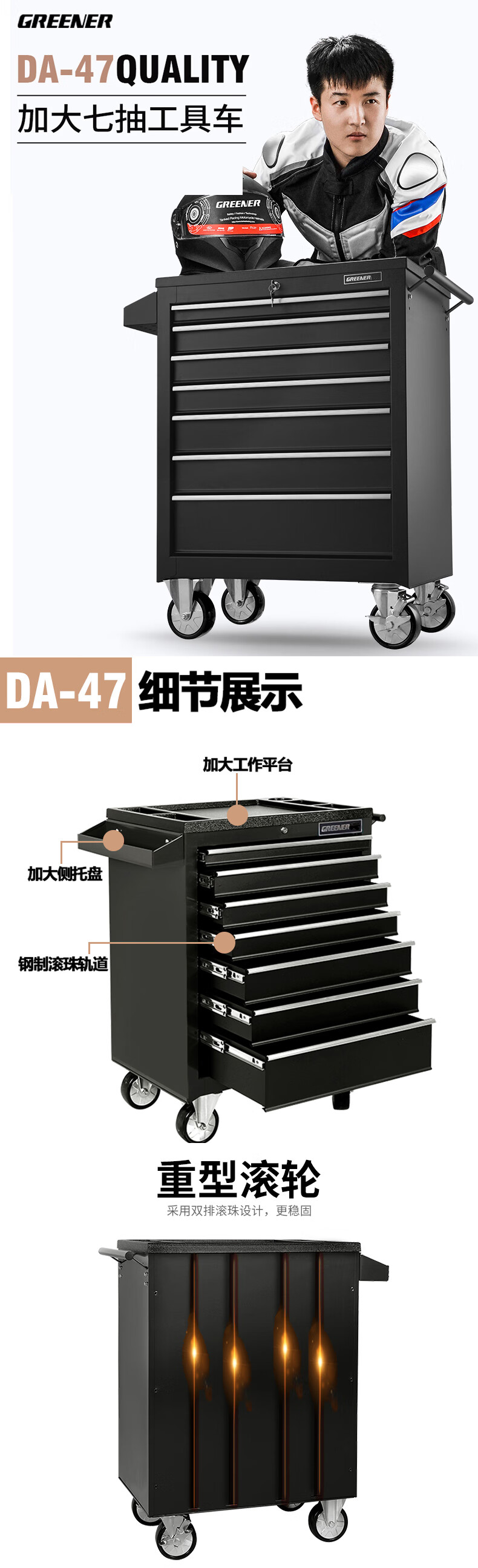 GREENER Auto Repair Tool Trolley Multifunctional Drawer Tool Cabinet Mobile Metal Repair Box for Workshop High-end Cabinet Black