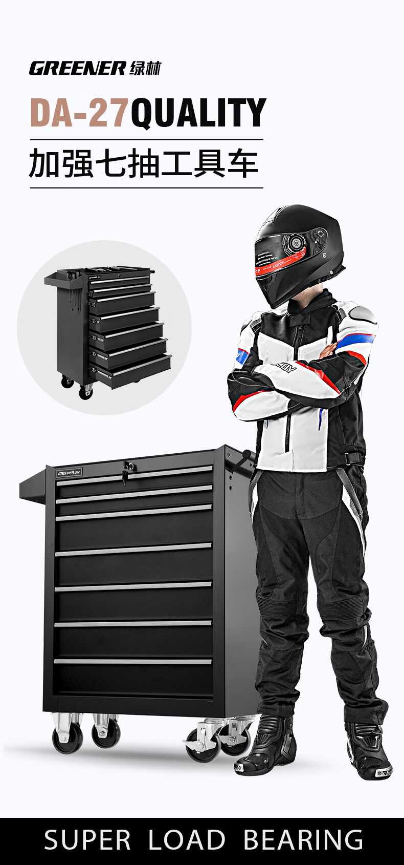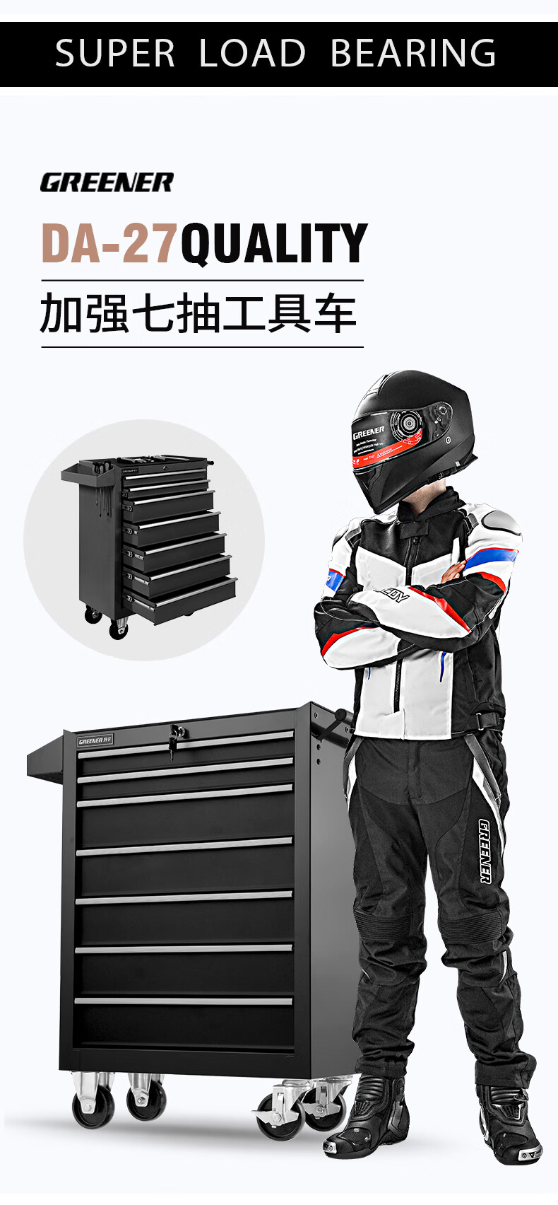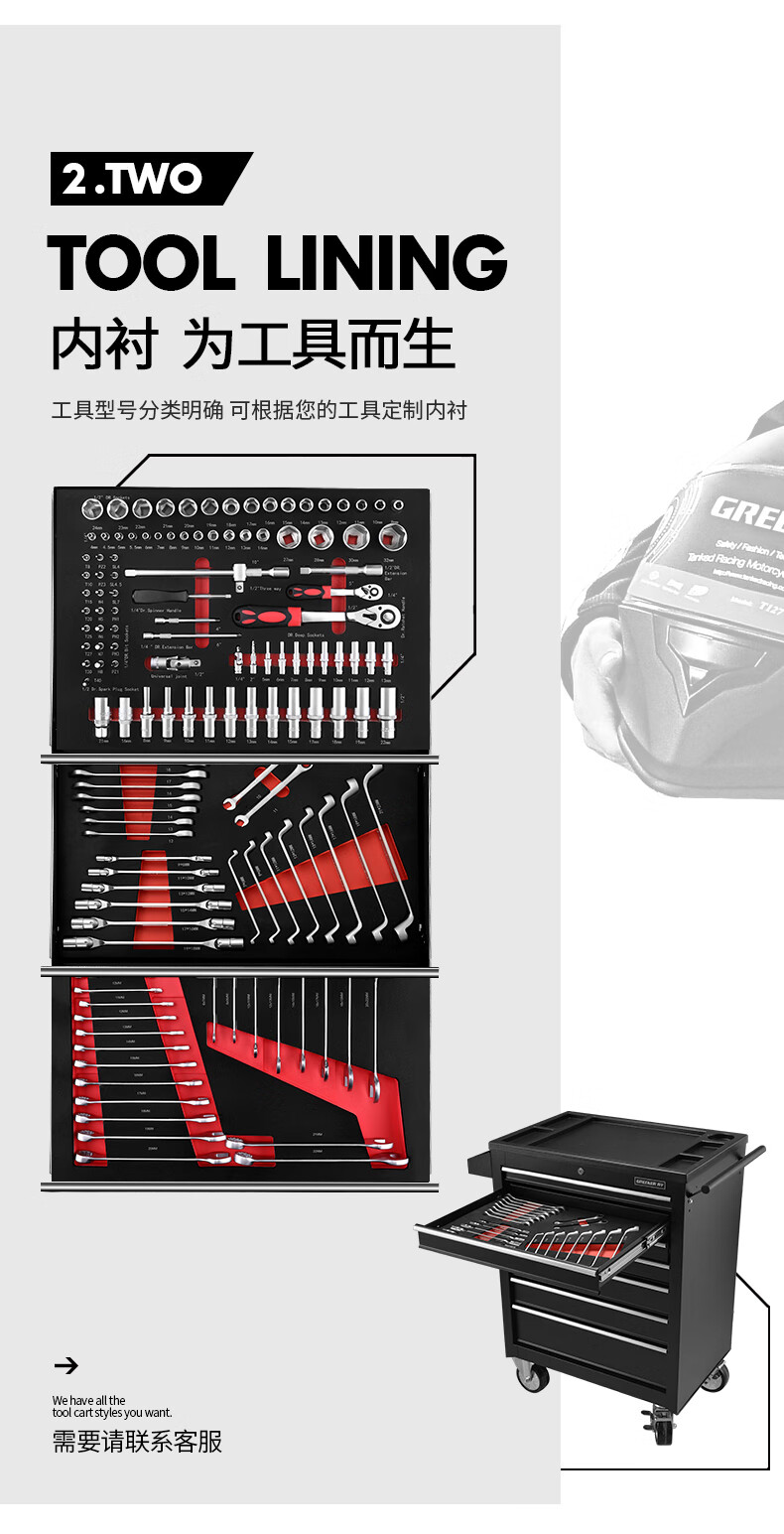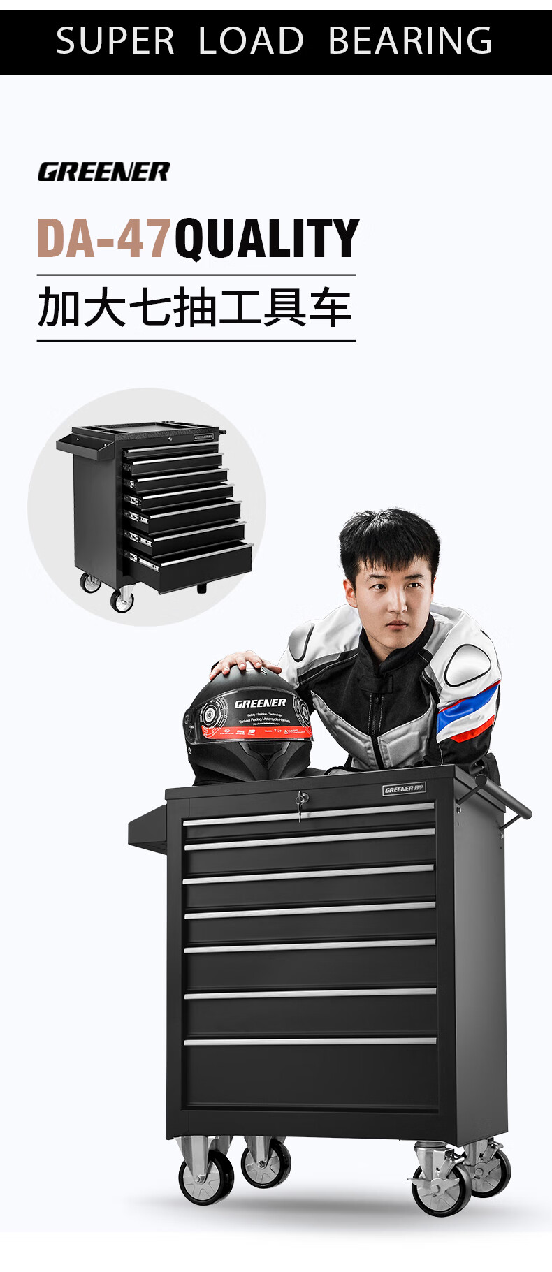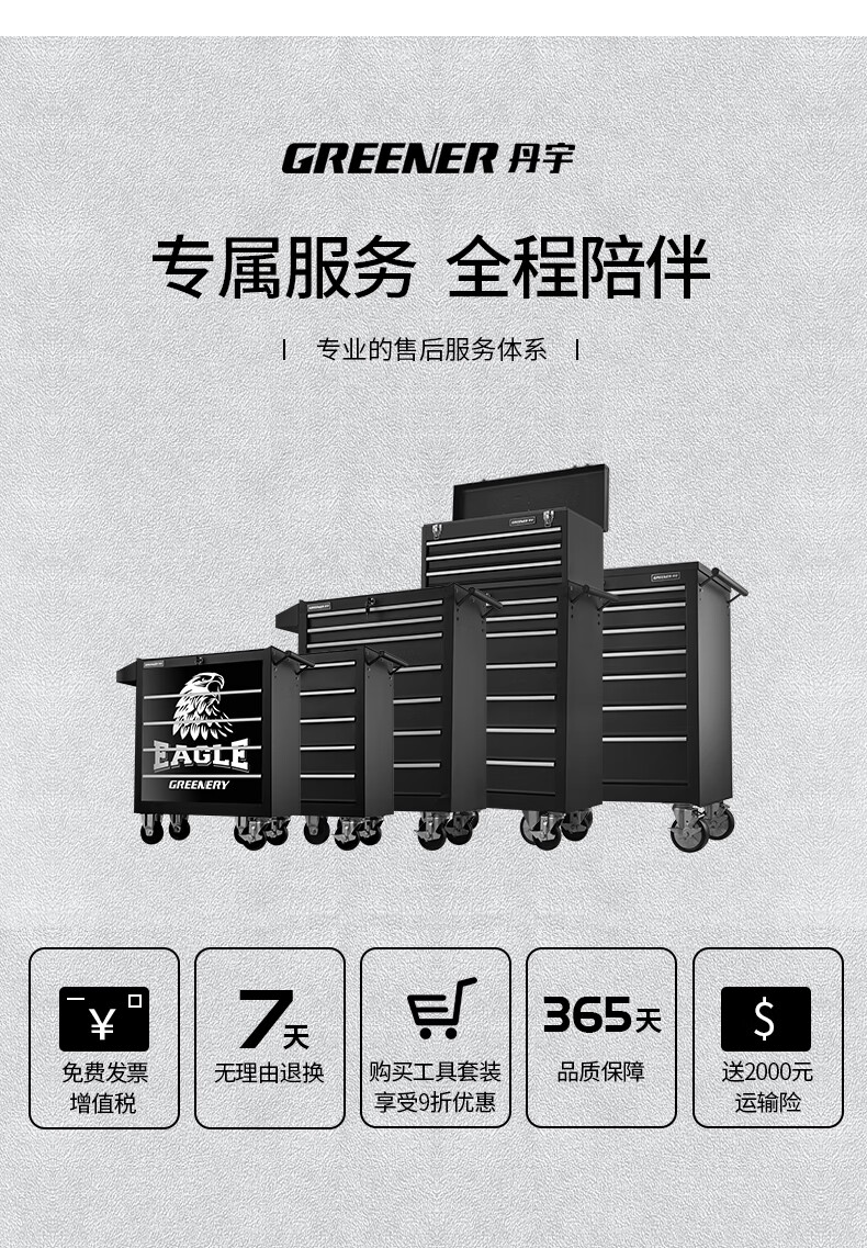GREENER Auto Repair Tool Trolley Multifunctional Drawer Tool Cabinet Mobile Metal Repair Box for Workshop High-end Cabinet Black