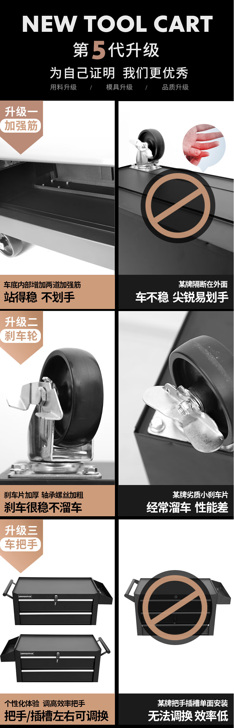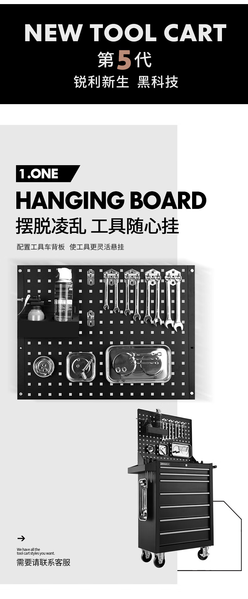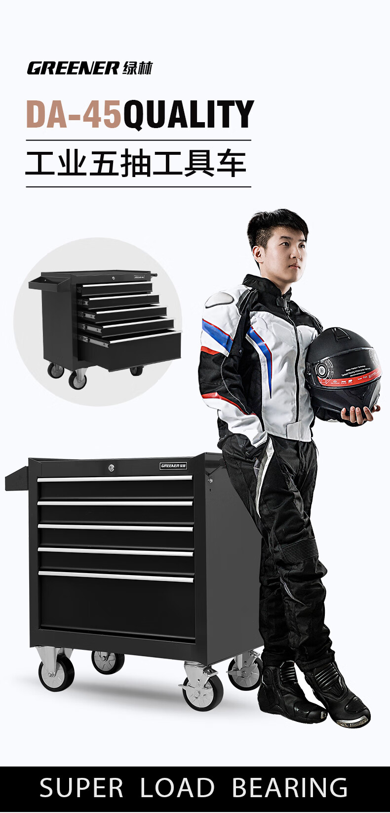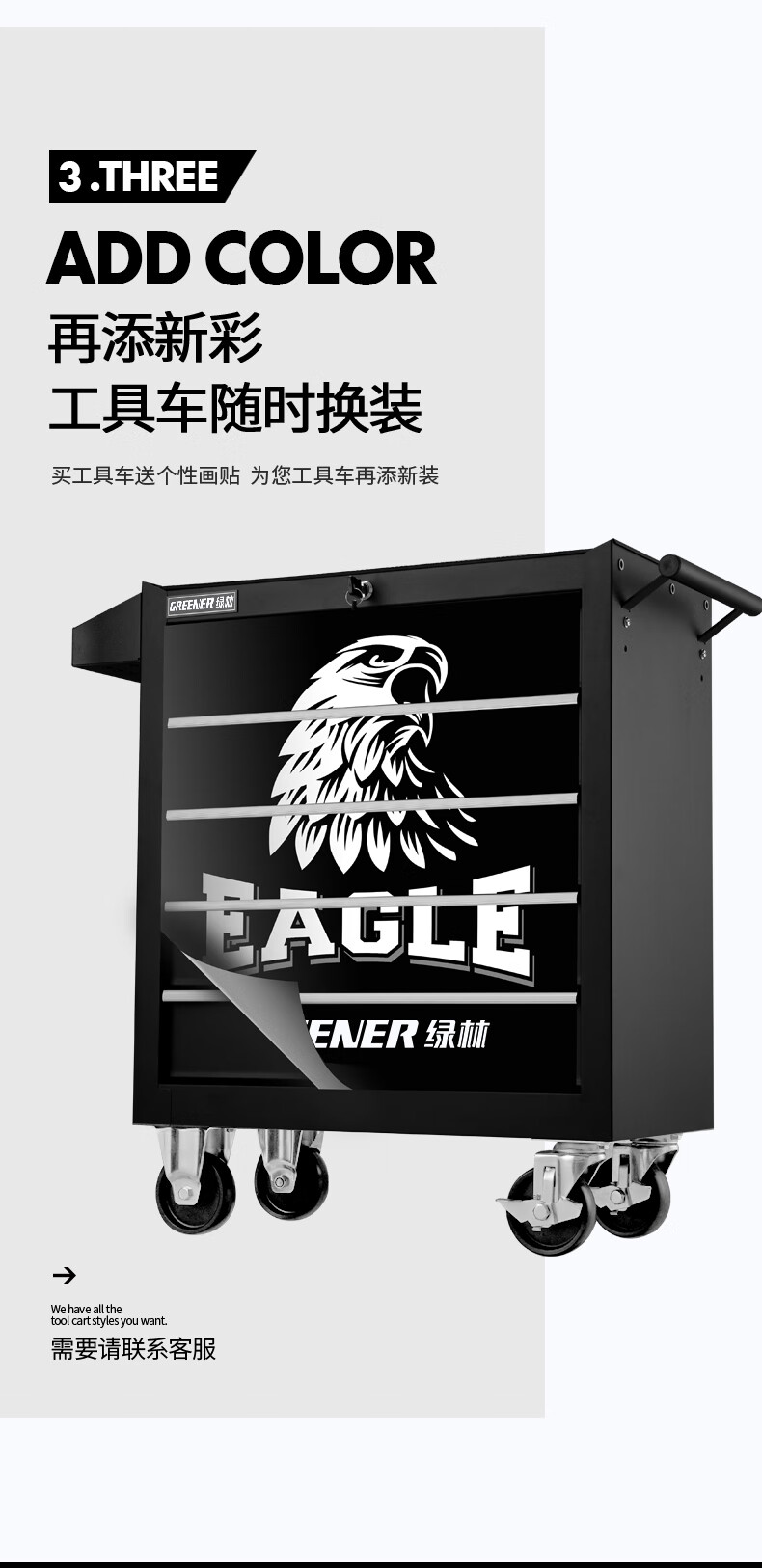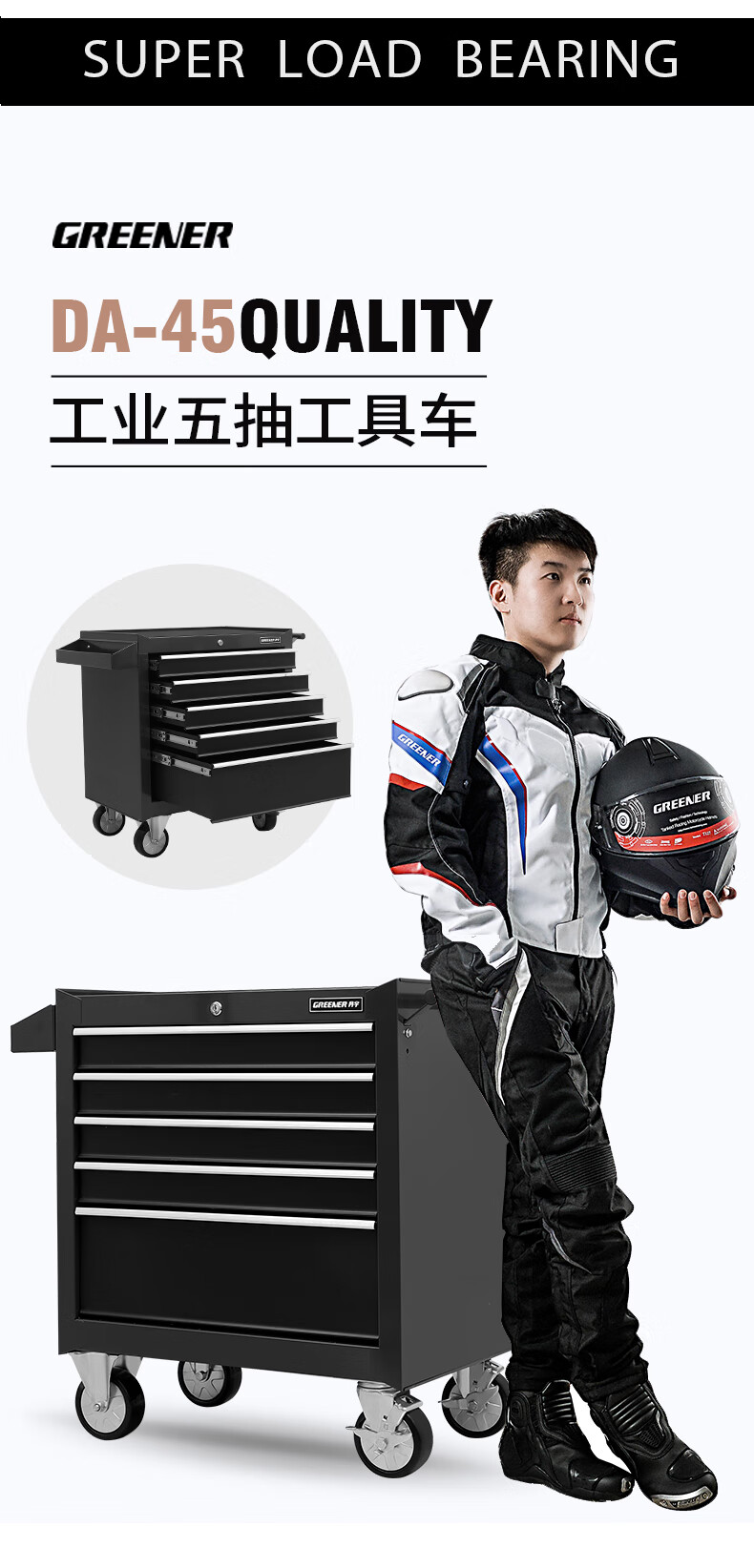 GREENER Auto Repair Tool Trolley Multifunctional Drawer Tool Cabinet Mobile Metal Repair Box for Workshop High-end Cabinet Black