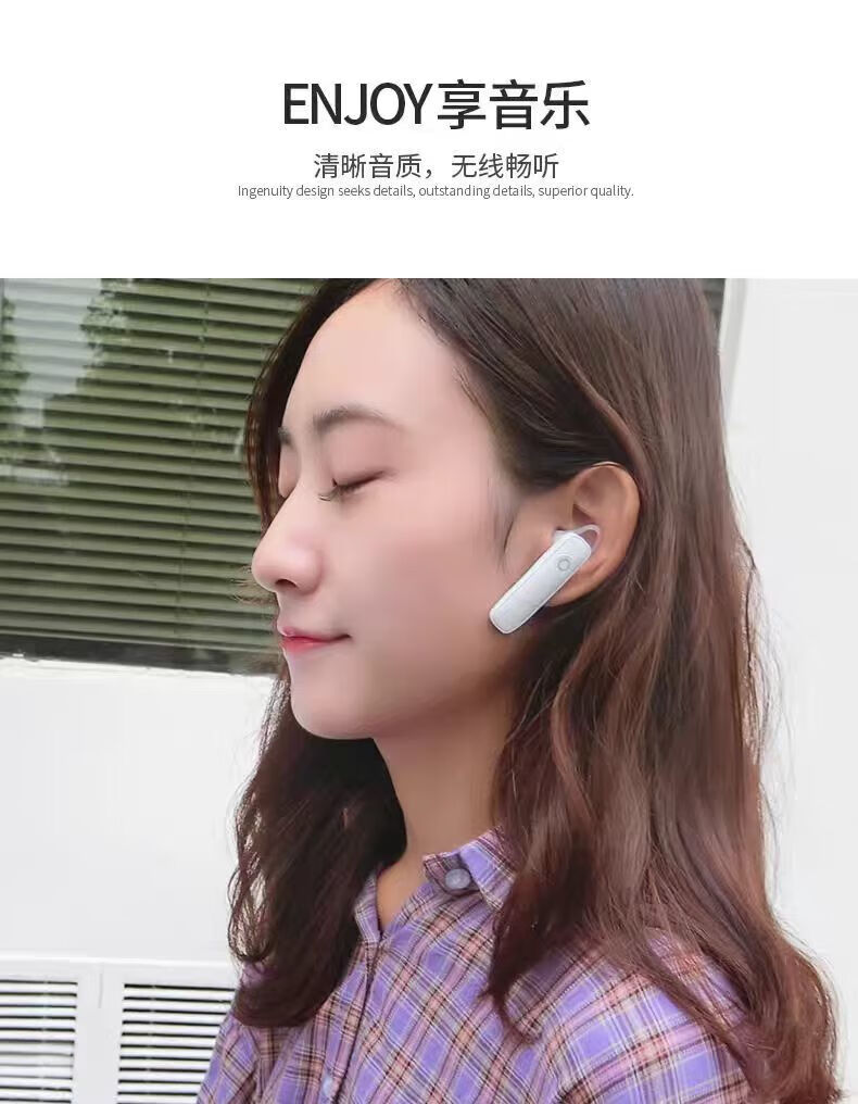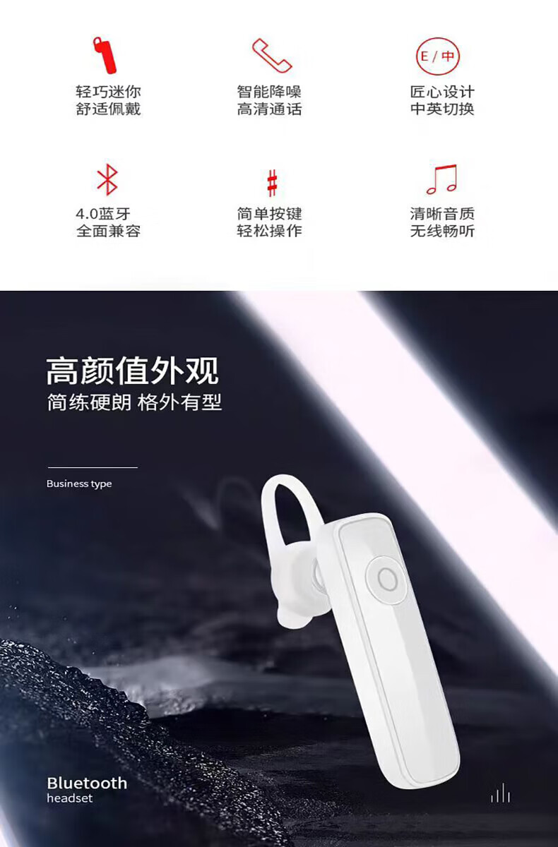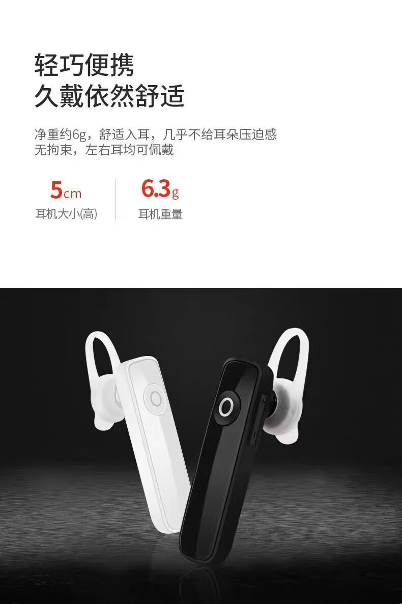 Bluetooth Headset Stereo Suitable for Smartphone Calls Wireless Bluetooth Business Compact and Essential for Driving M165 White Single Ear - Noise Reduction Call + One-click Photo