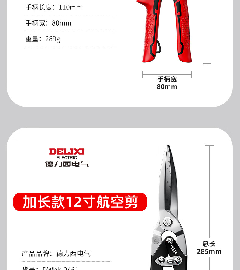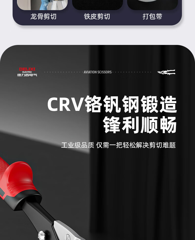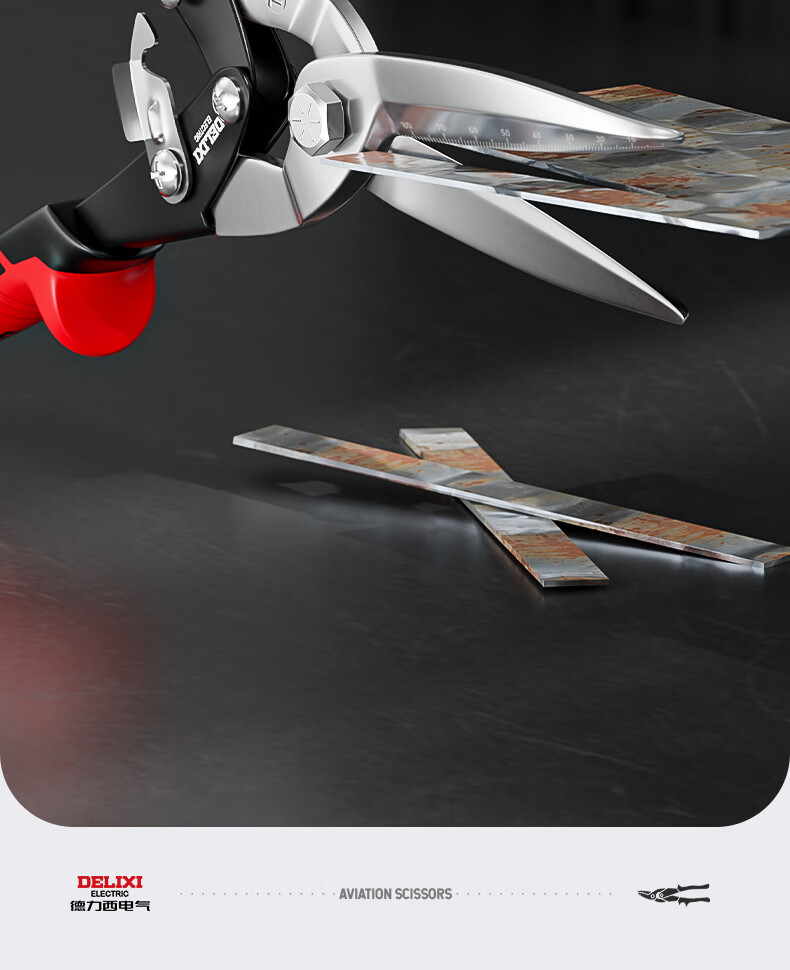 Delixi iron sheet scissors industrial keel aviation aluminum buckle plate curved mouth stainless steel light steel wire special large scissors Delixi straight head aviation scissors + gloves