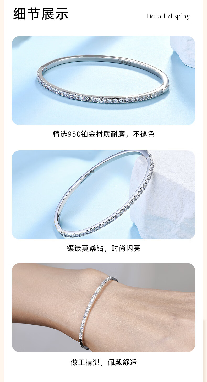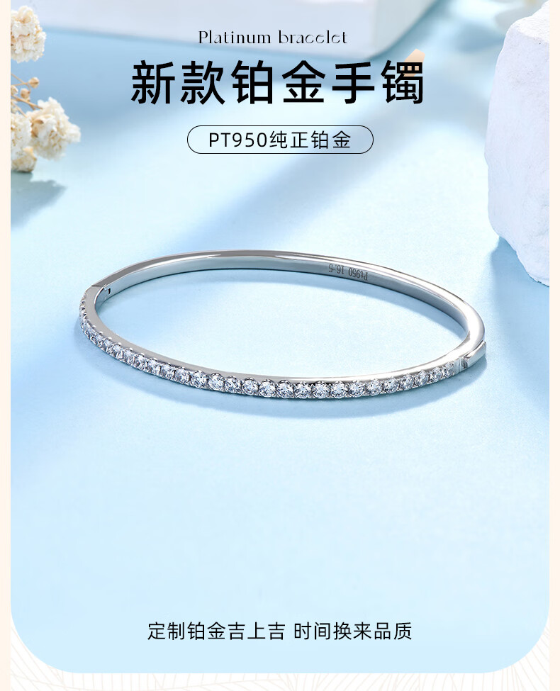 GsunG Platinum Moissanite Bracelet Women's PT950 Pure Platinum Bracelet Noble and Elegant Chinese Valentine's Day Gift for Wife Priced by Gram Contact Before Buying