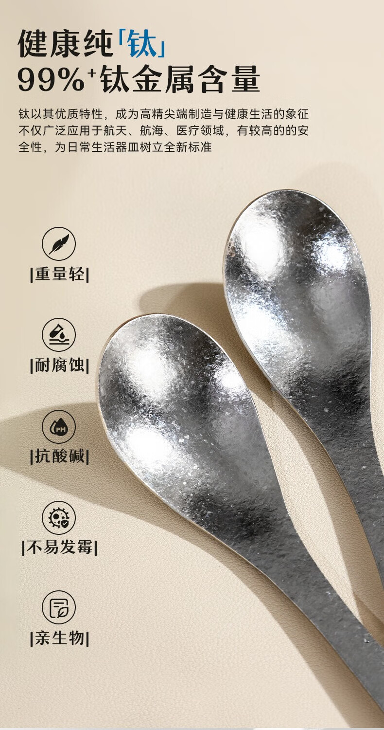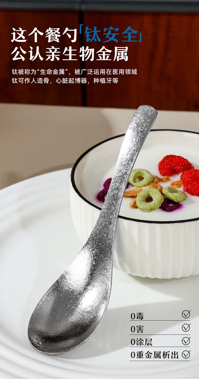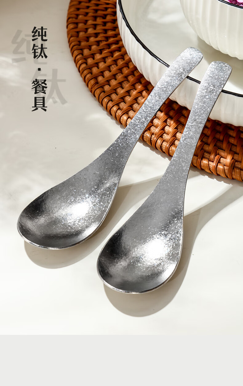 GEEGO pure titanium spoon household western food spoon eating spoon 99% titanium table spoon plus large spoon tableware 1 pure titanium table spoon