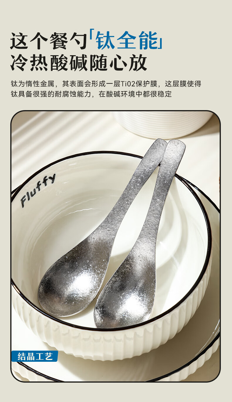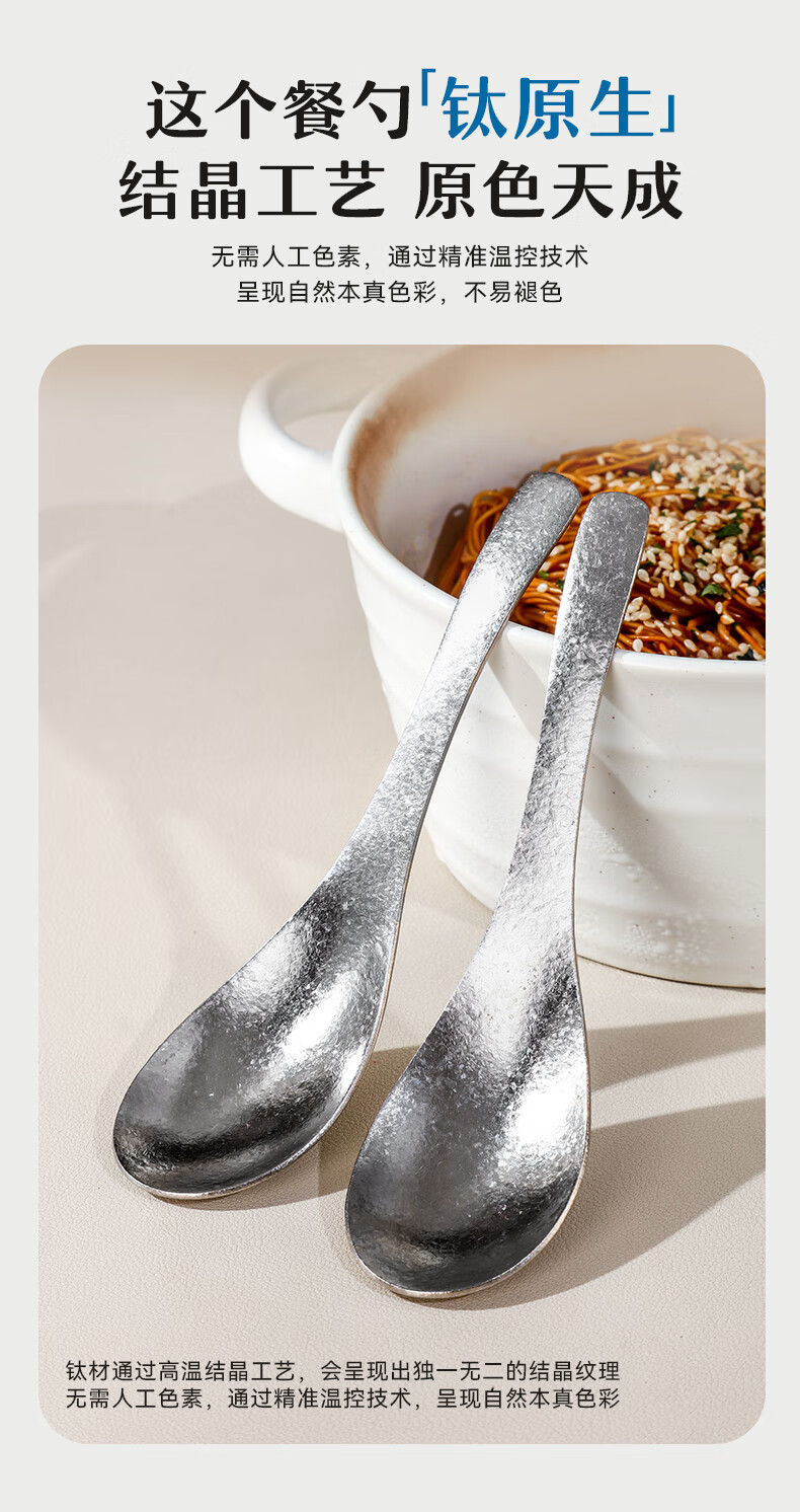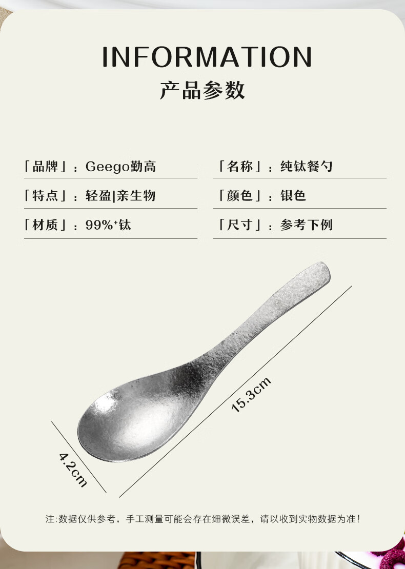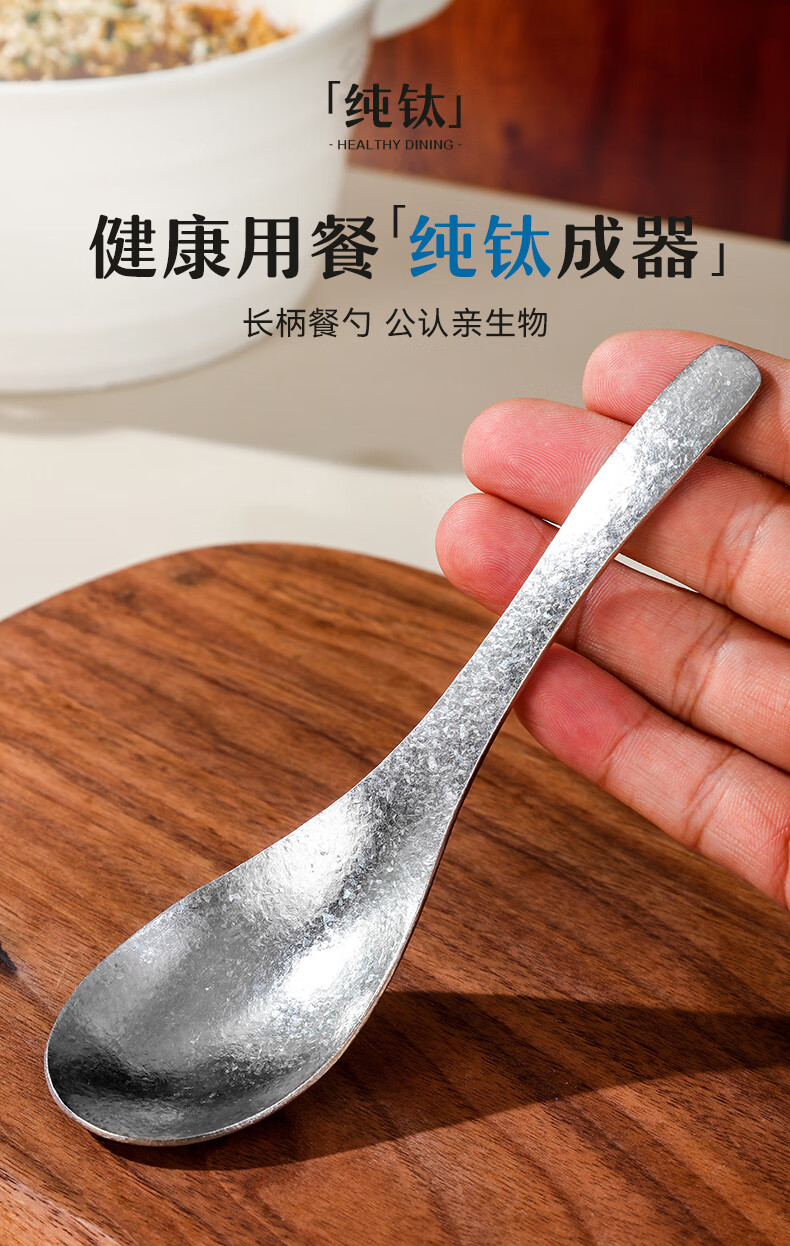 GEEGO pure titanium spoon household western food spoon eating spoon 99% titanium table spoon plus large spoon tableware 1 pure titanium table spoon