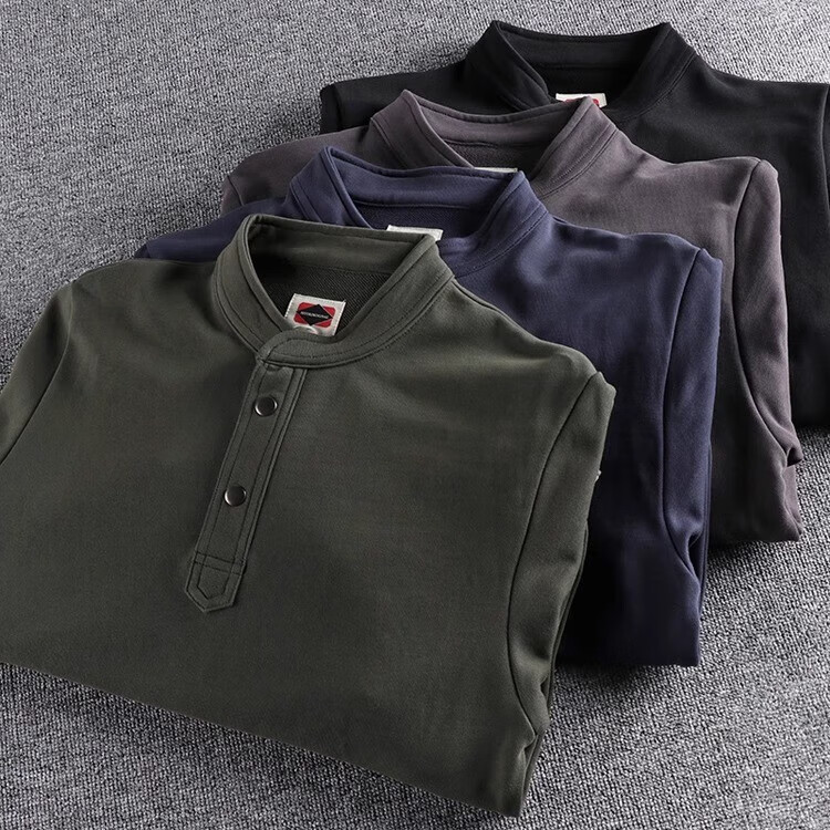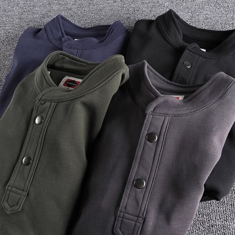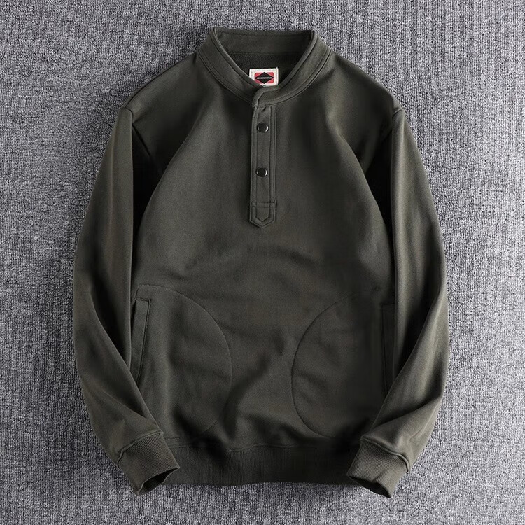 Kuraishi Kazuki trendy American retro loose heavyweight sweatshirt men's autumn and winter high-end hooded Henley bottoming shirt top black XL