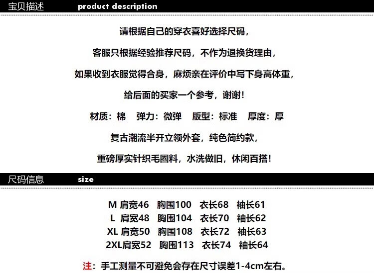Size (cm) 42 44 46 48 50