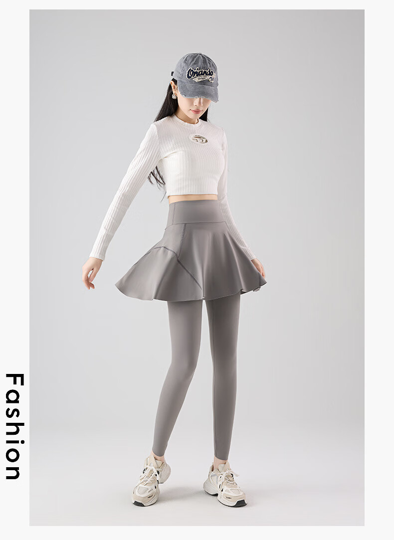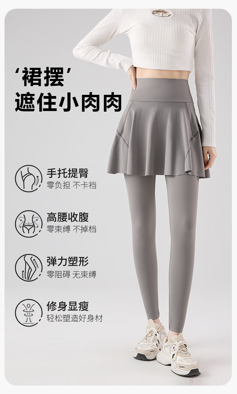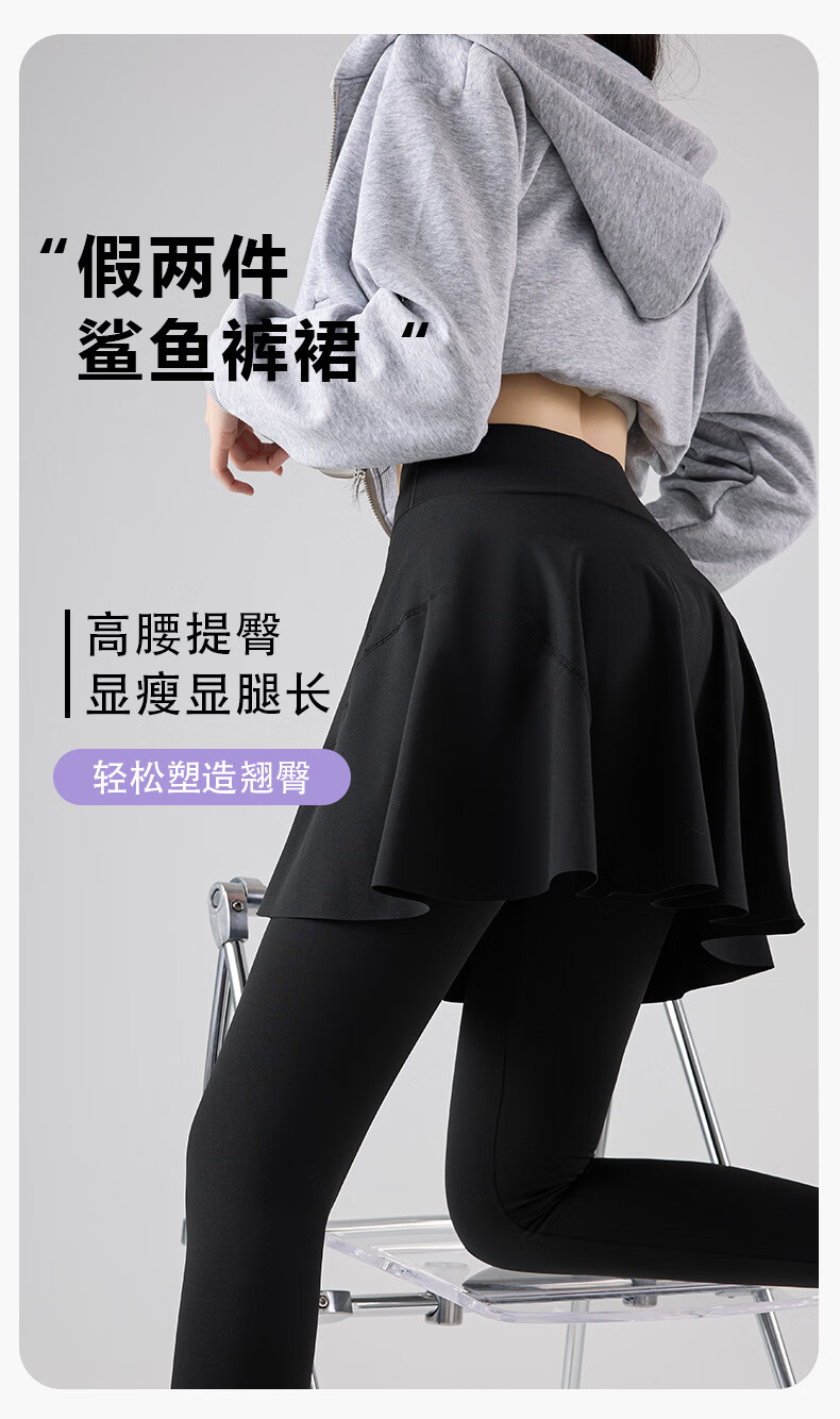 Cream Gray Yoga Pants Women's Fake Two-Piece High Waist Fitness Quick-Drying Running Shark Skirts Nude Tight Pants Yadan Black XL 120-140Jin Jin is equal to 0.5kg