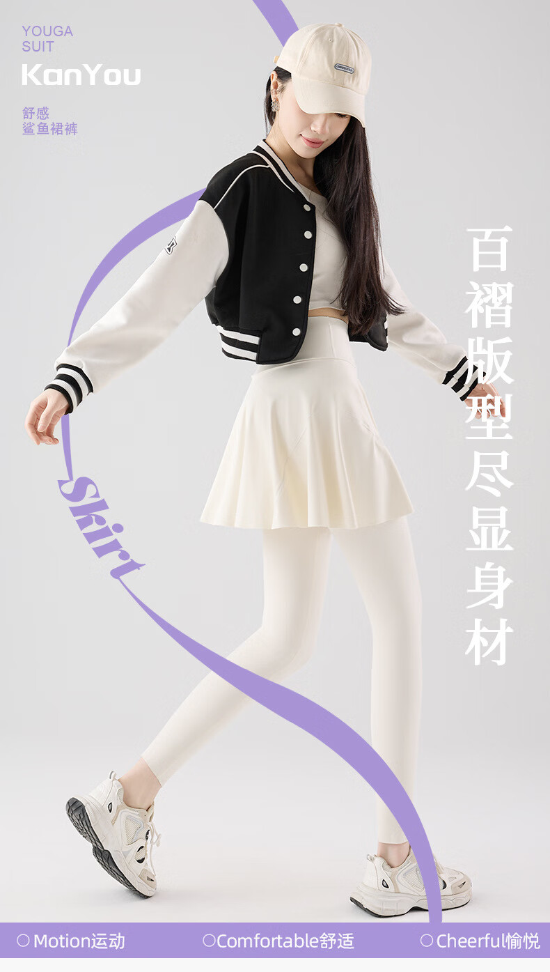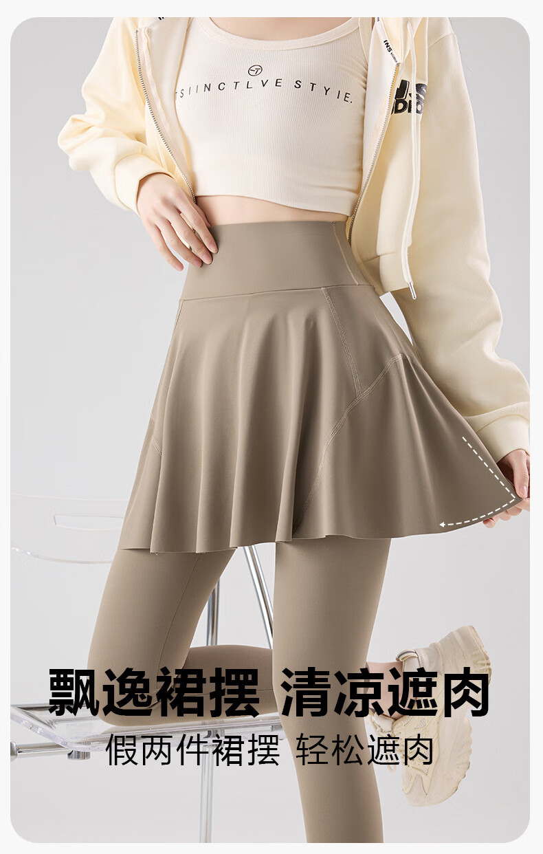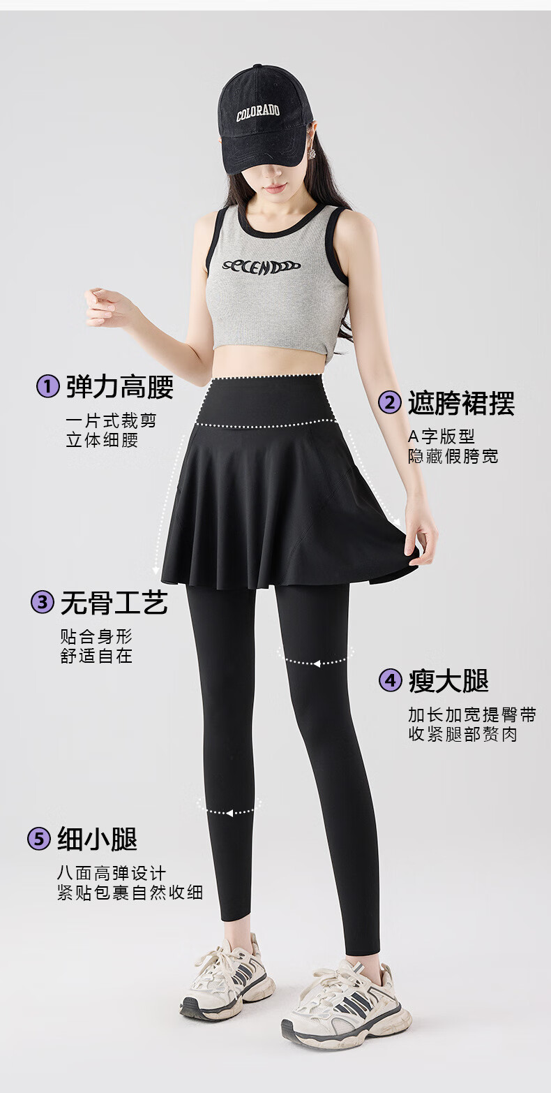 Cream Gray Yoga Pants Women's Fake Two-Piece High Waist Fitness Quick-Drying Running Shark Skirts Nude Tight Pants Yadan Black XL 120-140Jin Jin is equal to 0.5kg