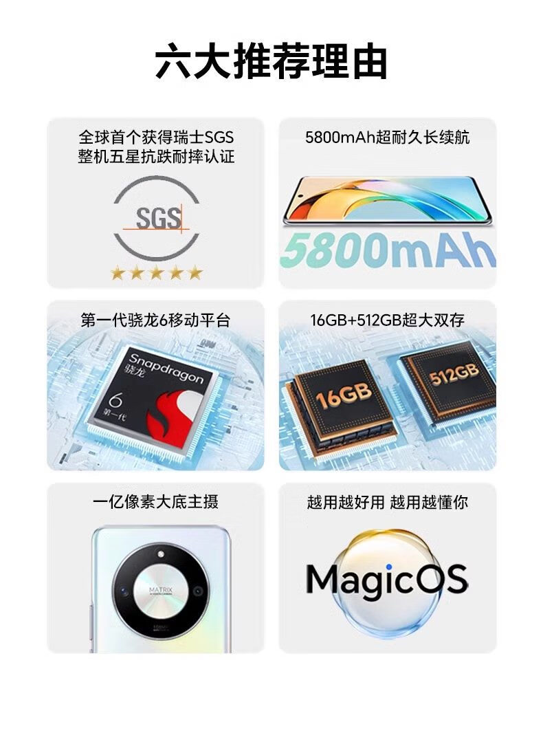 Honor X50 Exhibition Machine Mobile Phone Large Battery 100 Million Pixel Dual Cartoon Snapdragon Camera 5G Mobile Phone Elegant Black 8GB+128GB