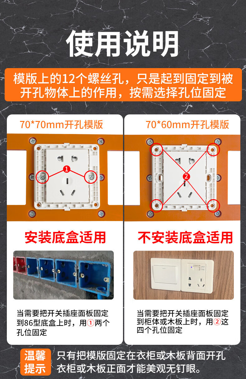 Youchili 86 box socket bottom box opening mold woodworking wardrobe switch socket wire box board slotting and drawing line template 86 wire box opening mold 7*7cm