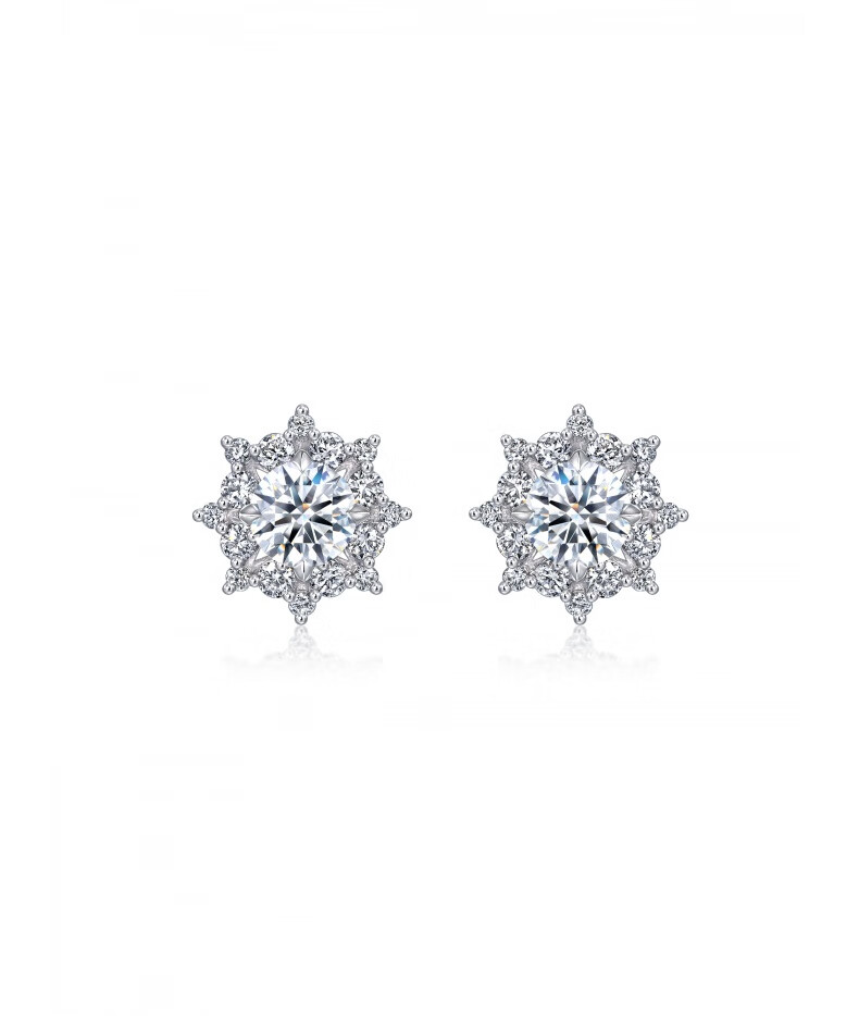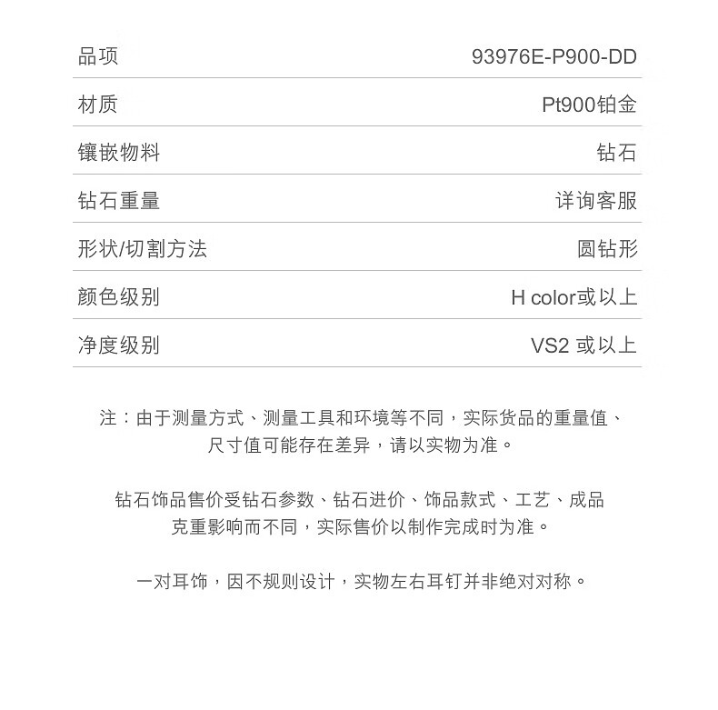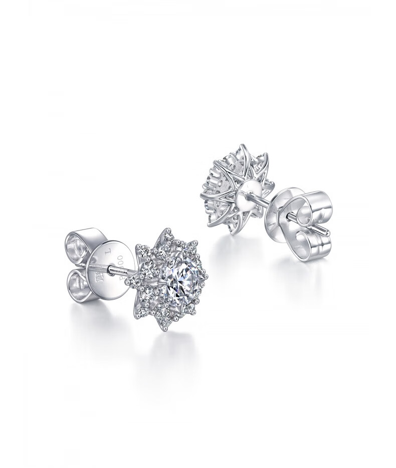 Chow Sang Sang gift, eight-pointed star diamond stud earrings, Love Diamond Pt900 Platinum Heart Compass Earrings, 93976E Diamond single 34 points/H color/VVS1 clarity