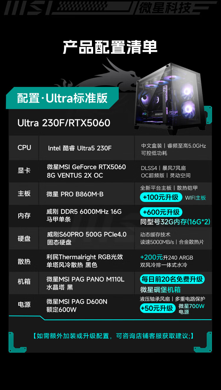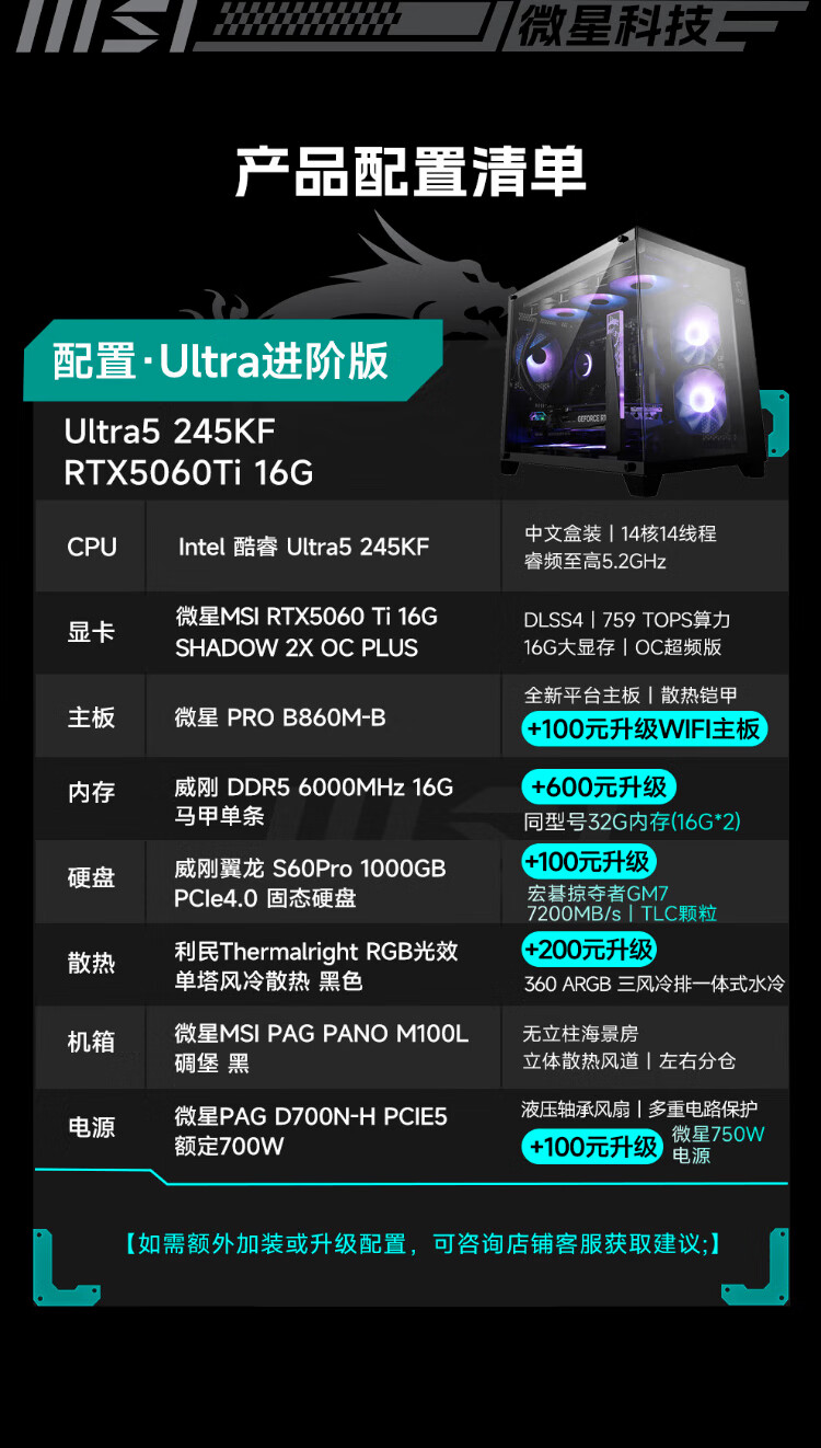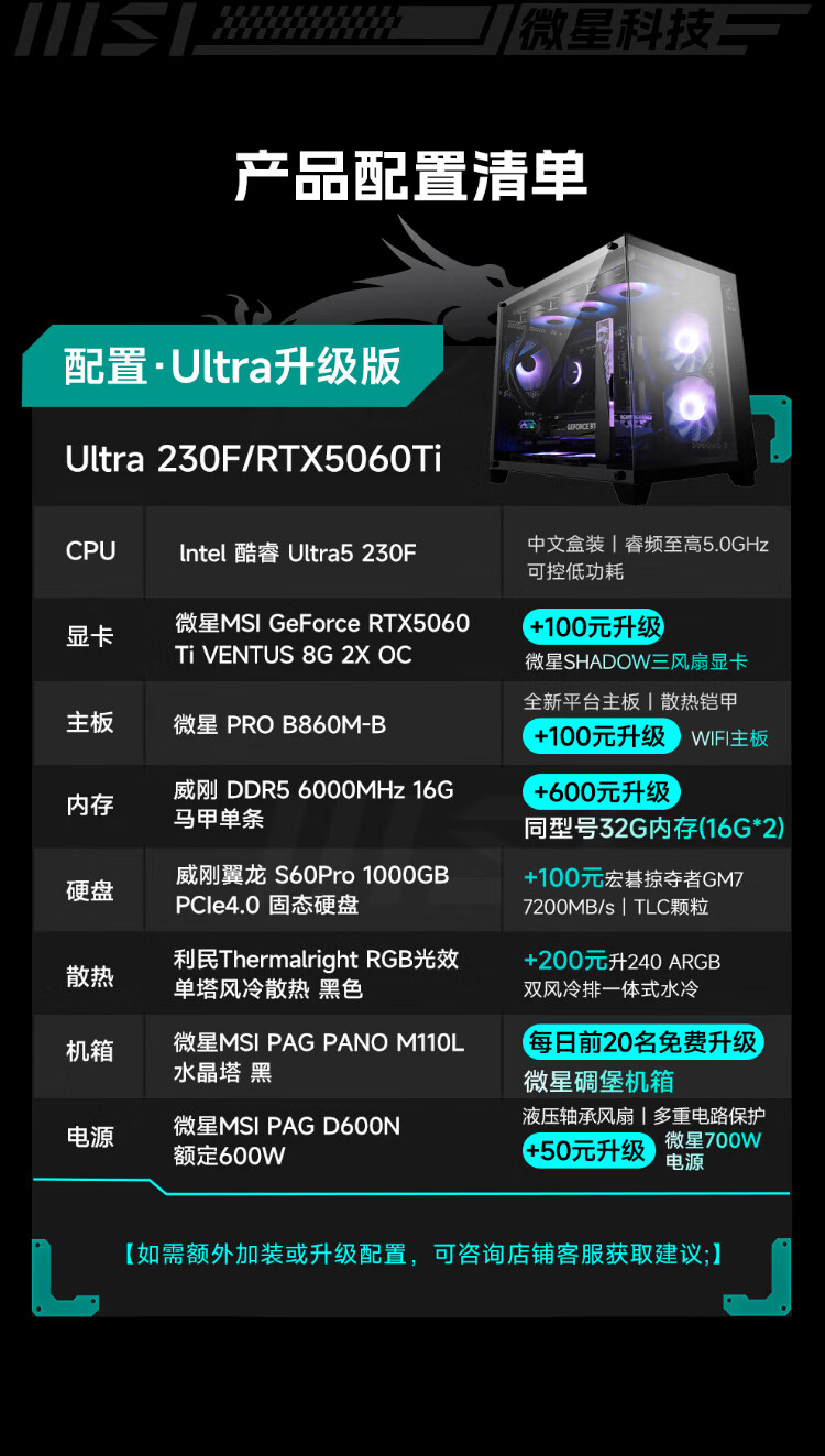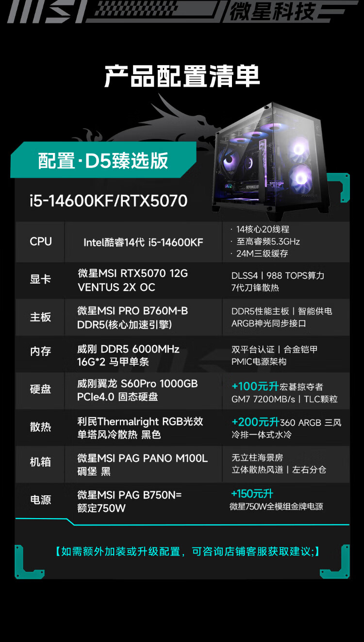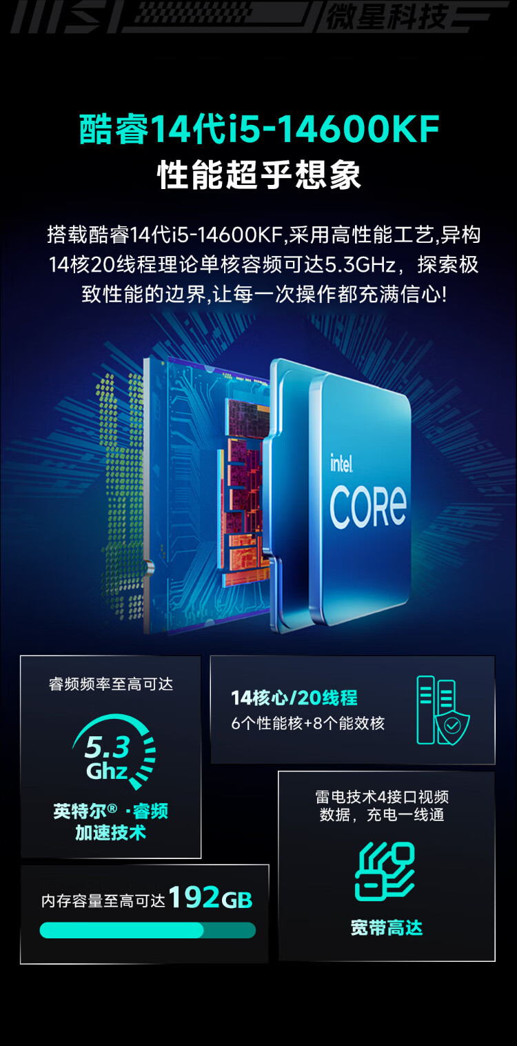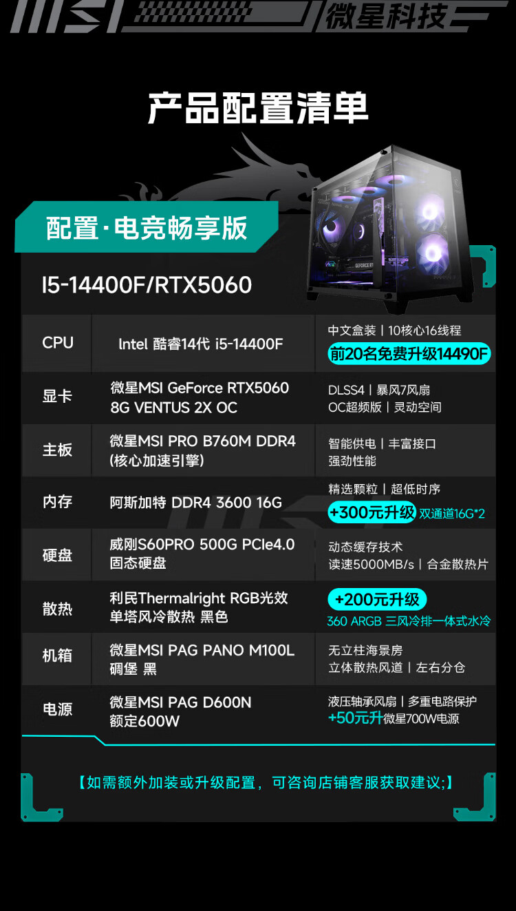 MSI Core Ultra7/i5-14490F/14600KF with 5060/5060Ti e-sports game machine RGB sea view room desktop DIY computer for the whole family D5 upgraded version丨i5-14600KF+RTX5060