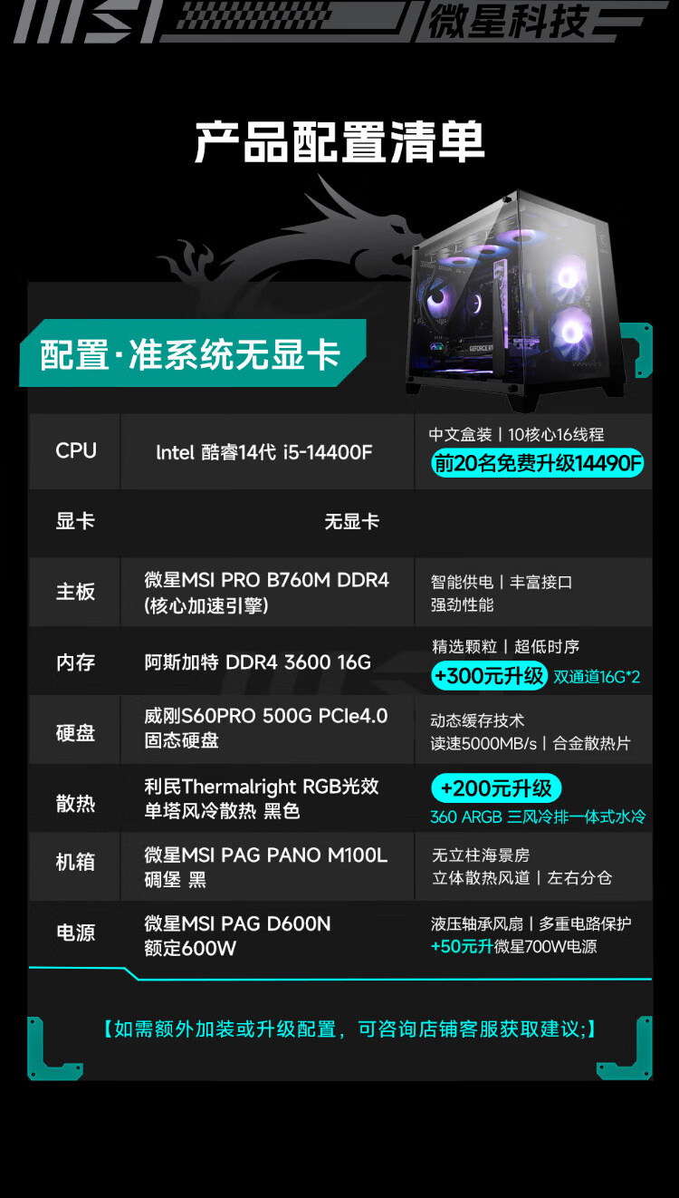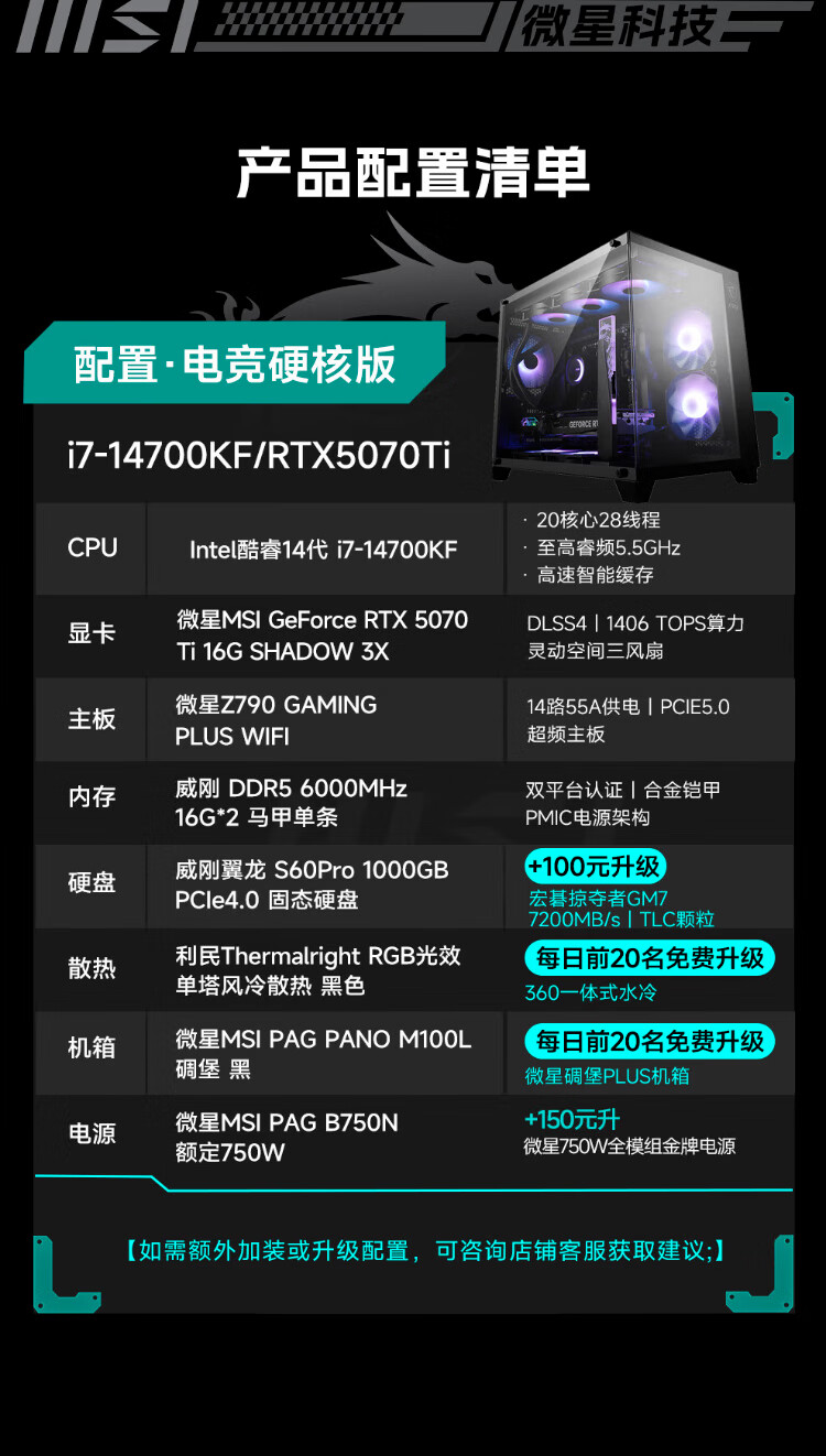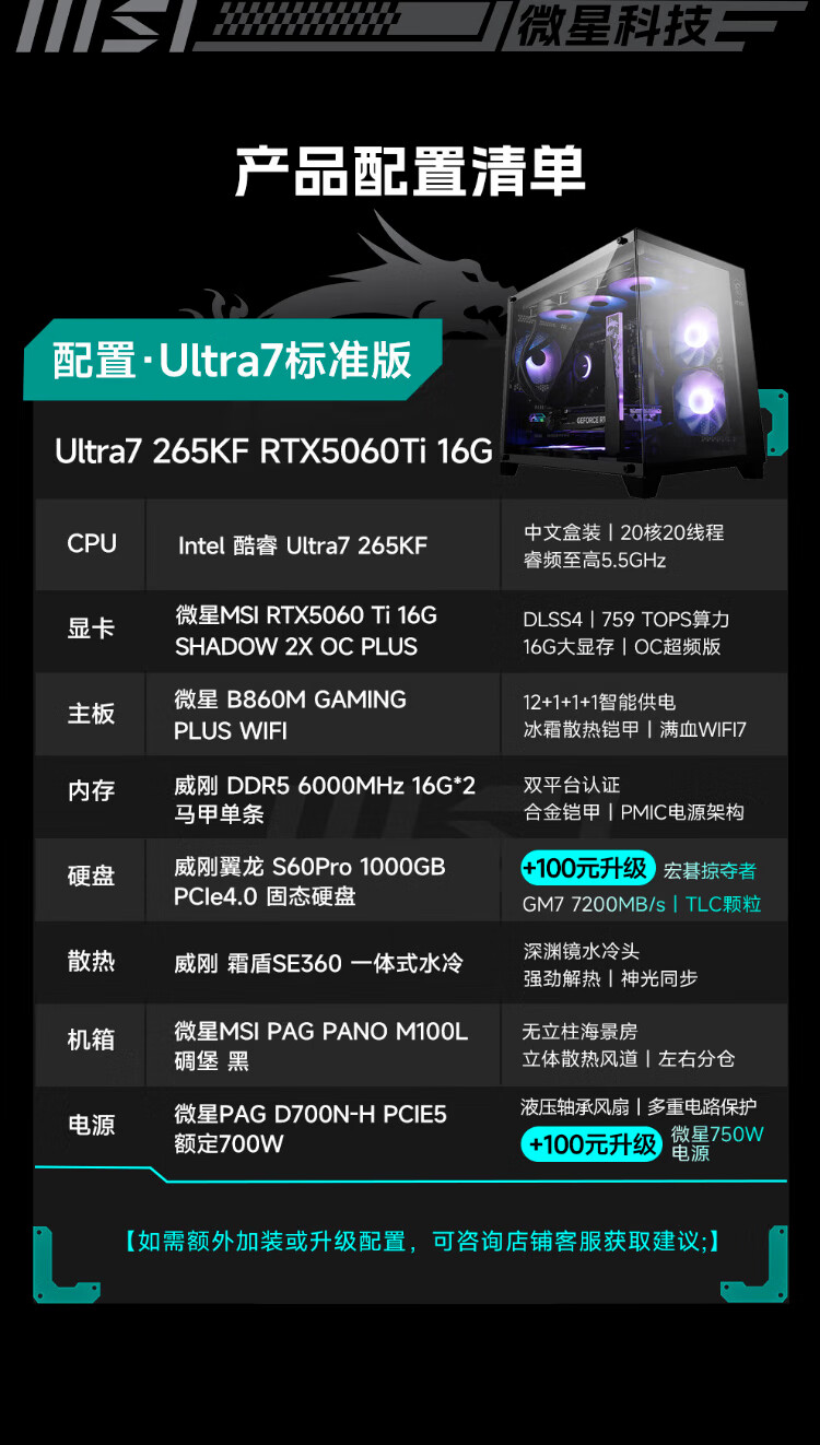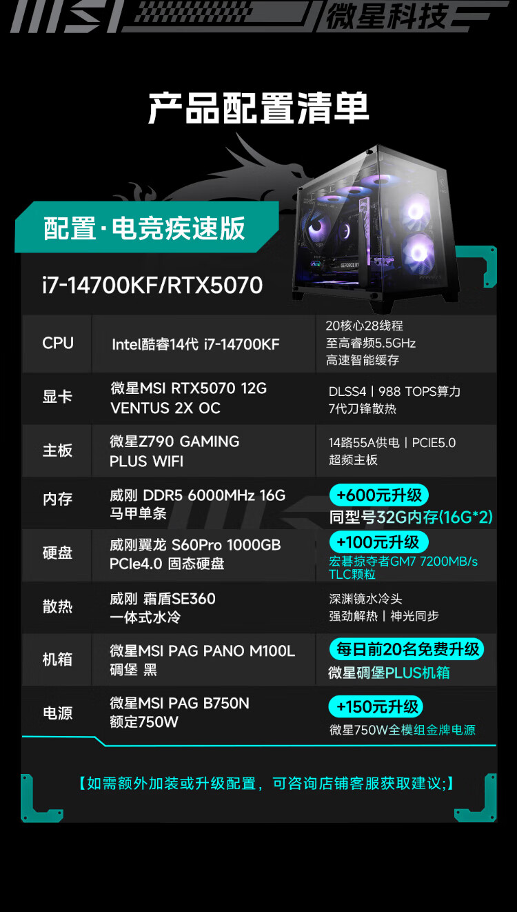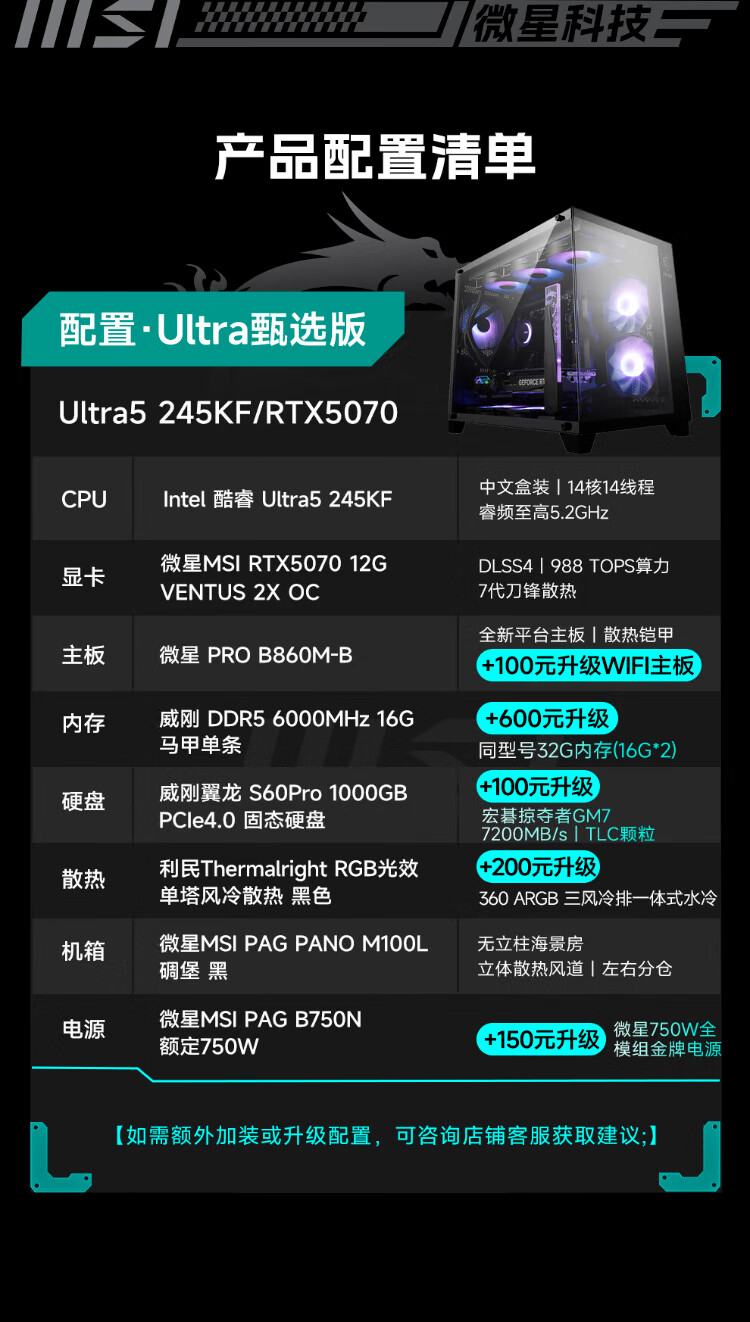 MSI Core Ultra7/i5-14490F/14600KF with 5060/5060Ti e-sports game machine RGB sea view room desktop DIY computer for the whole family D5 upgraded version丨i5-14600KF+RTX5060
