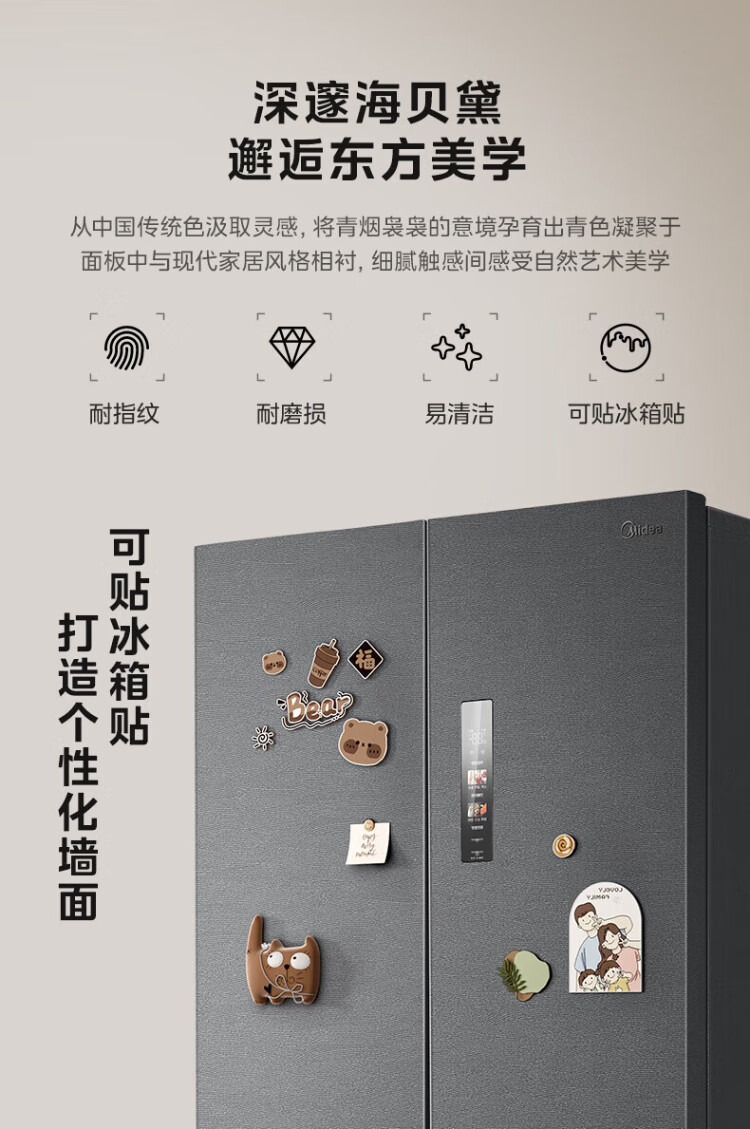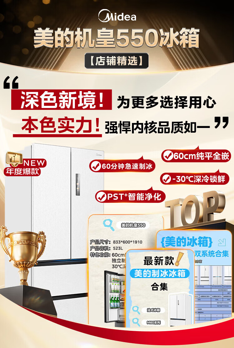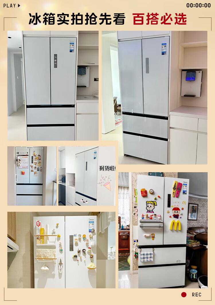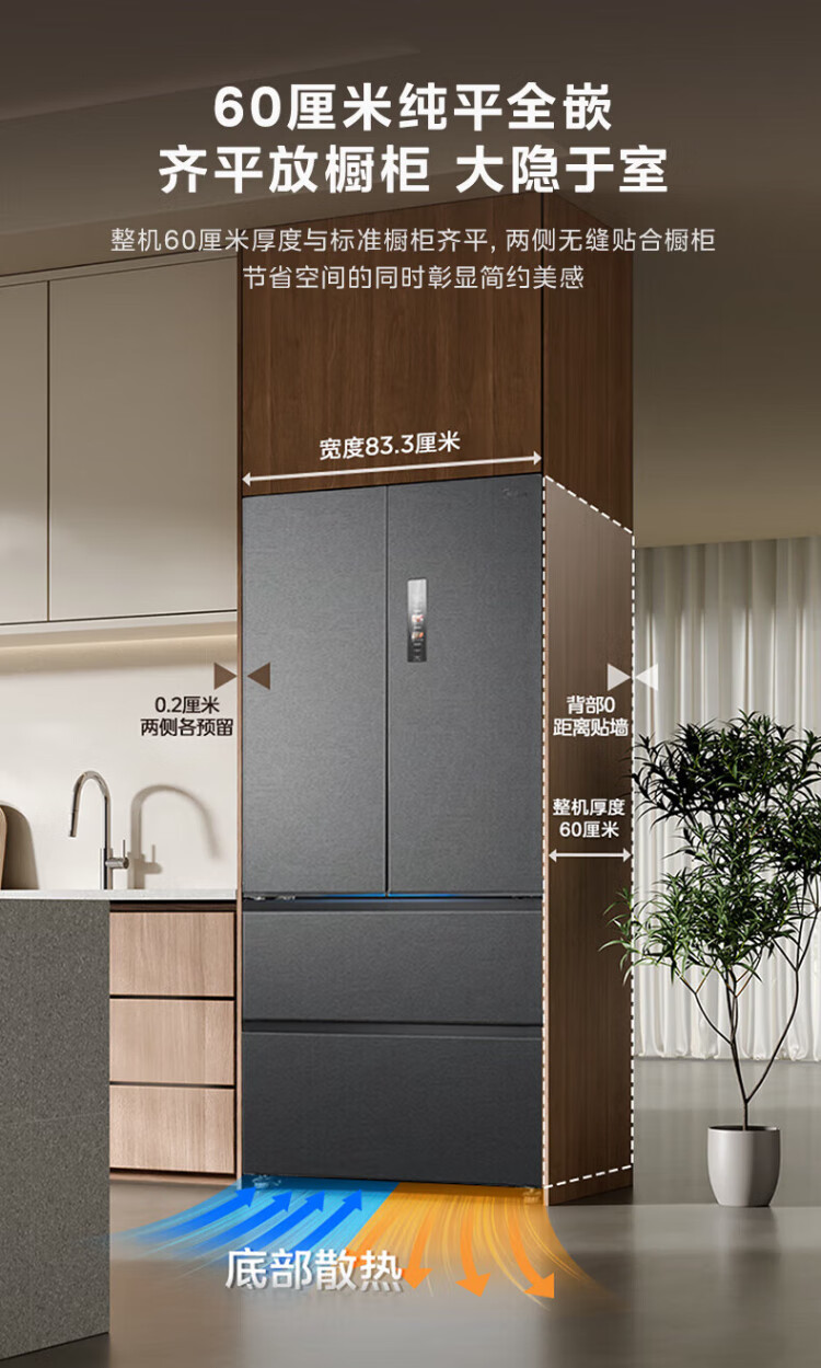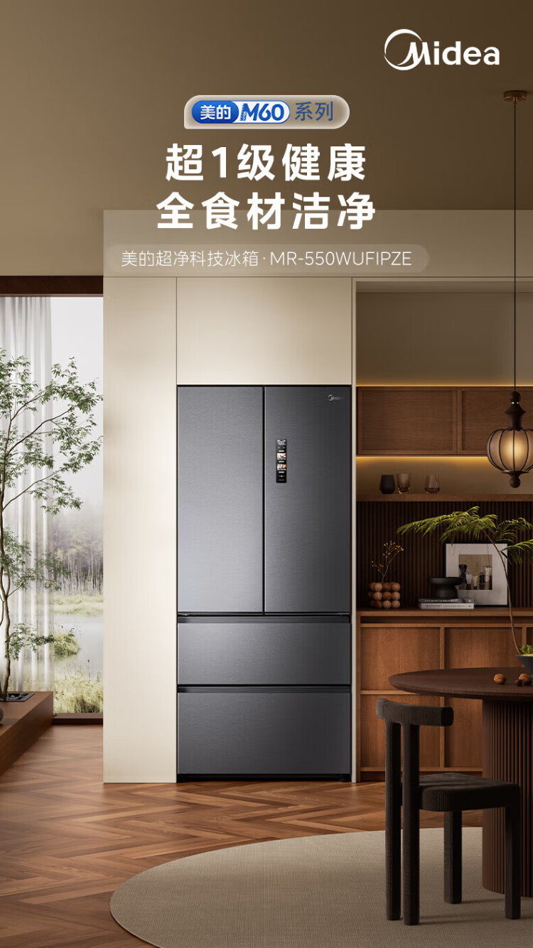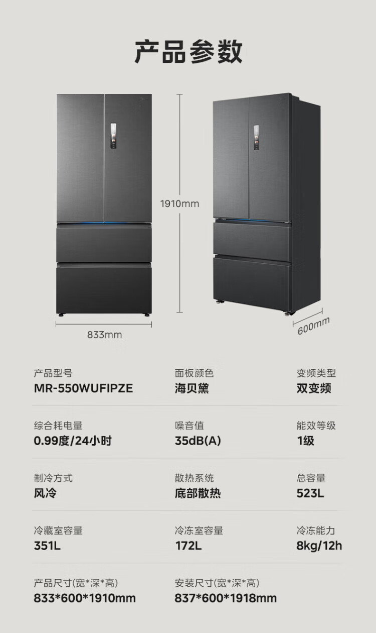 Midea refrigerator 550 M60 series French multi-door four-door flat screen fully embedded dual system dual cycle automatic ice making all-in-one machine large capacity first class energy efficiency MR-550WUFIPZE Xiyun White