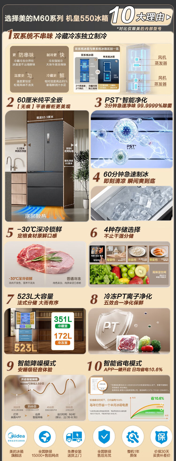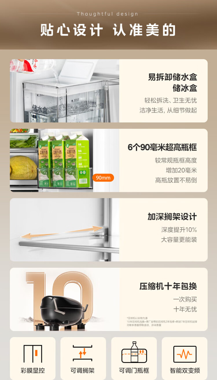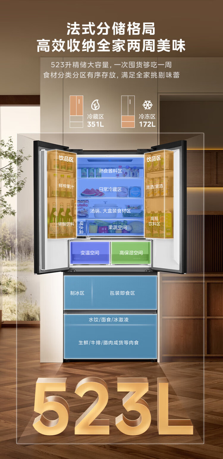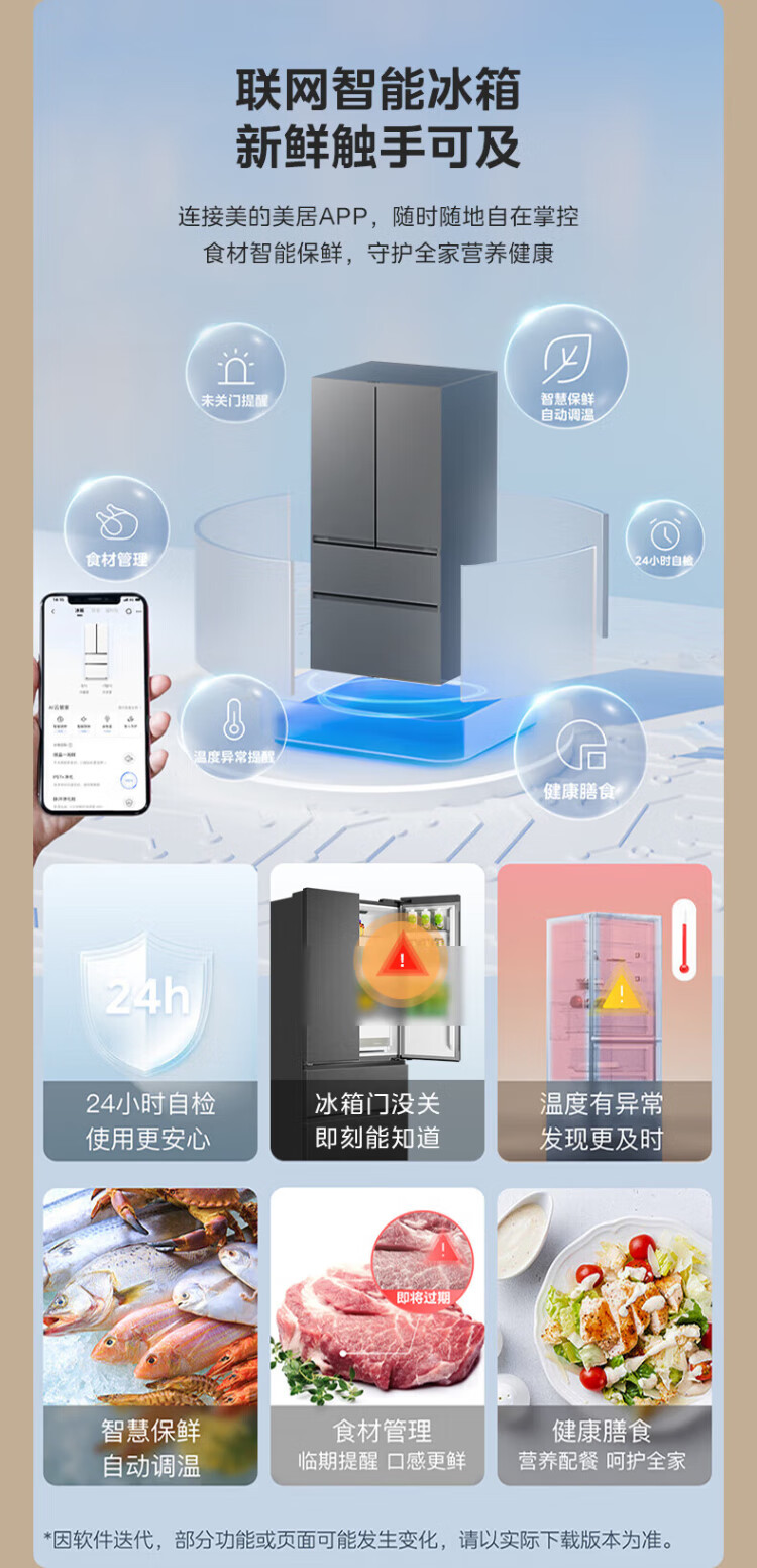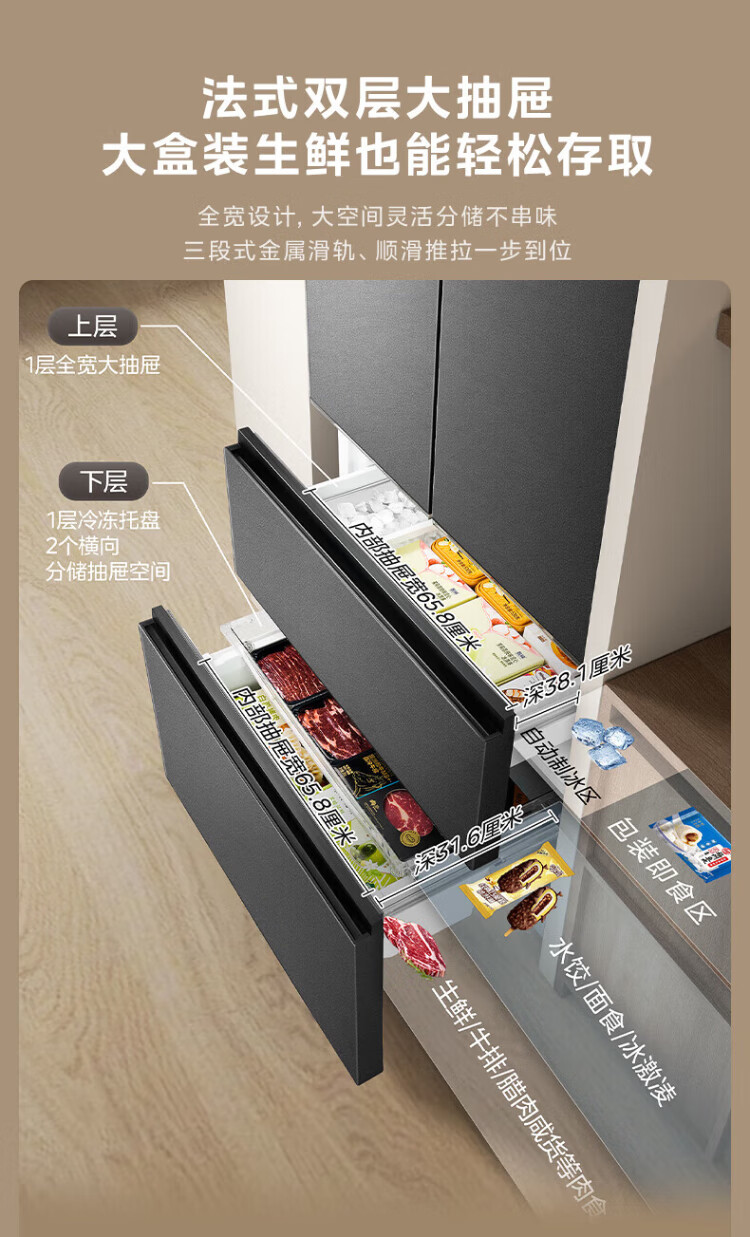 Midea refrigerator 550 M60 series French multi-door four-door flat screen fully embedded dual system dual cycle automatic ice making all-in-one machine large capacity first class energy efficiency MR-550WUFIPZE Xiyun White