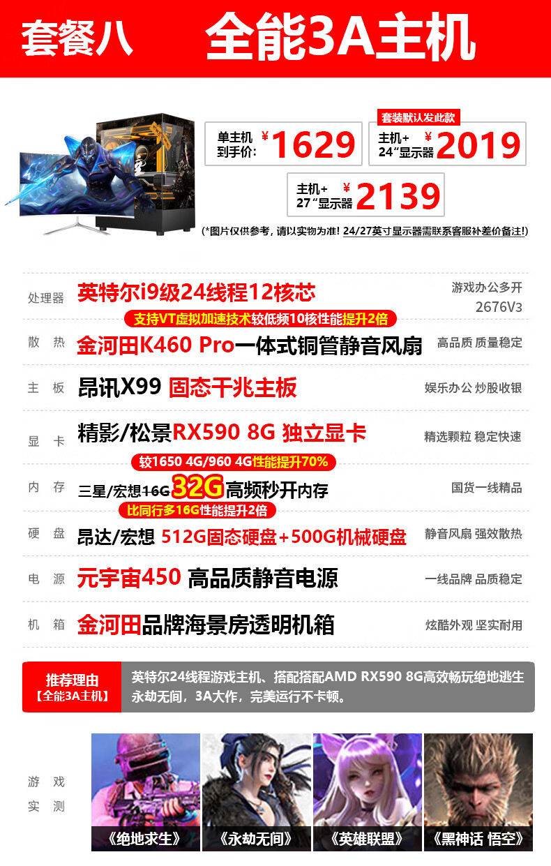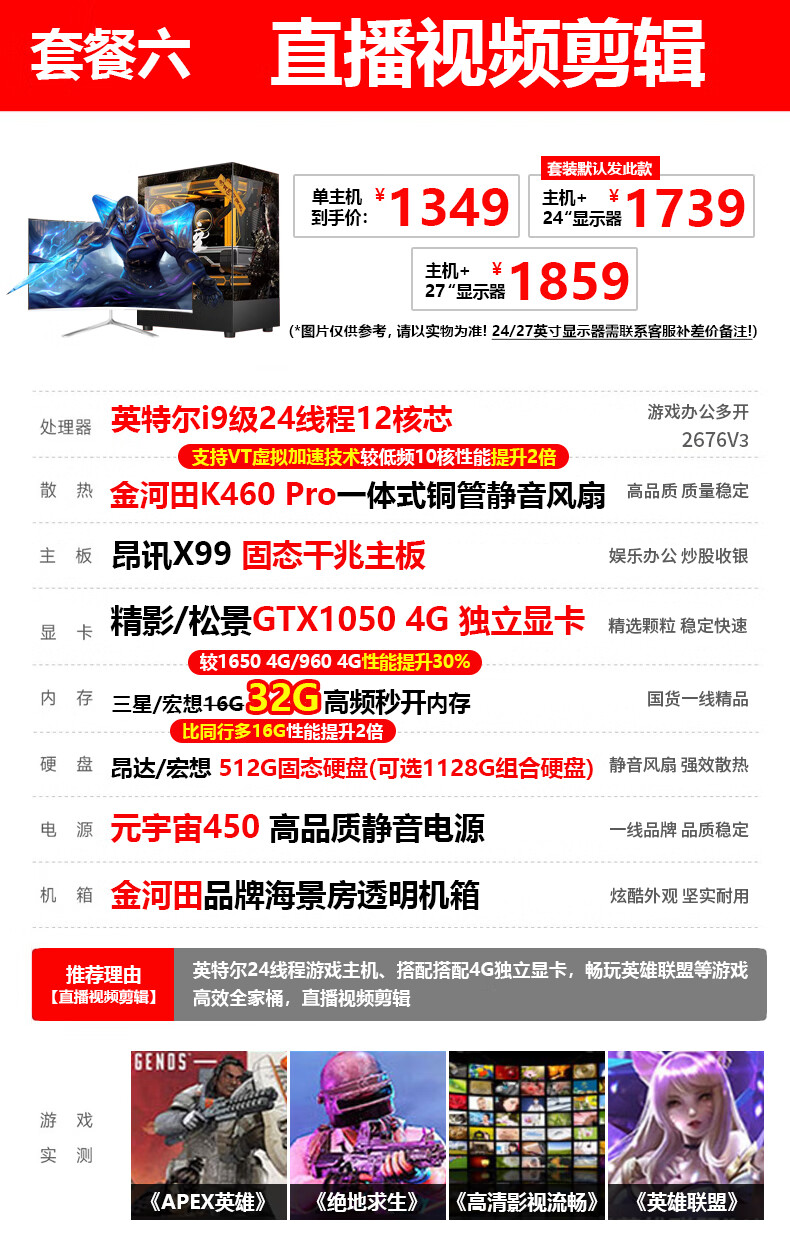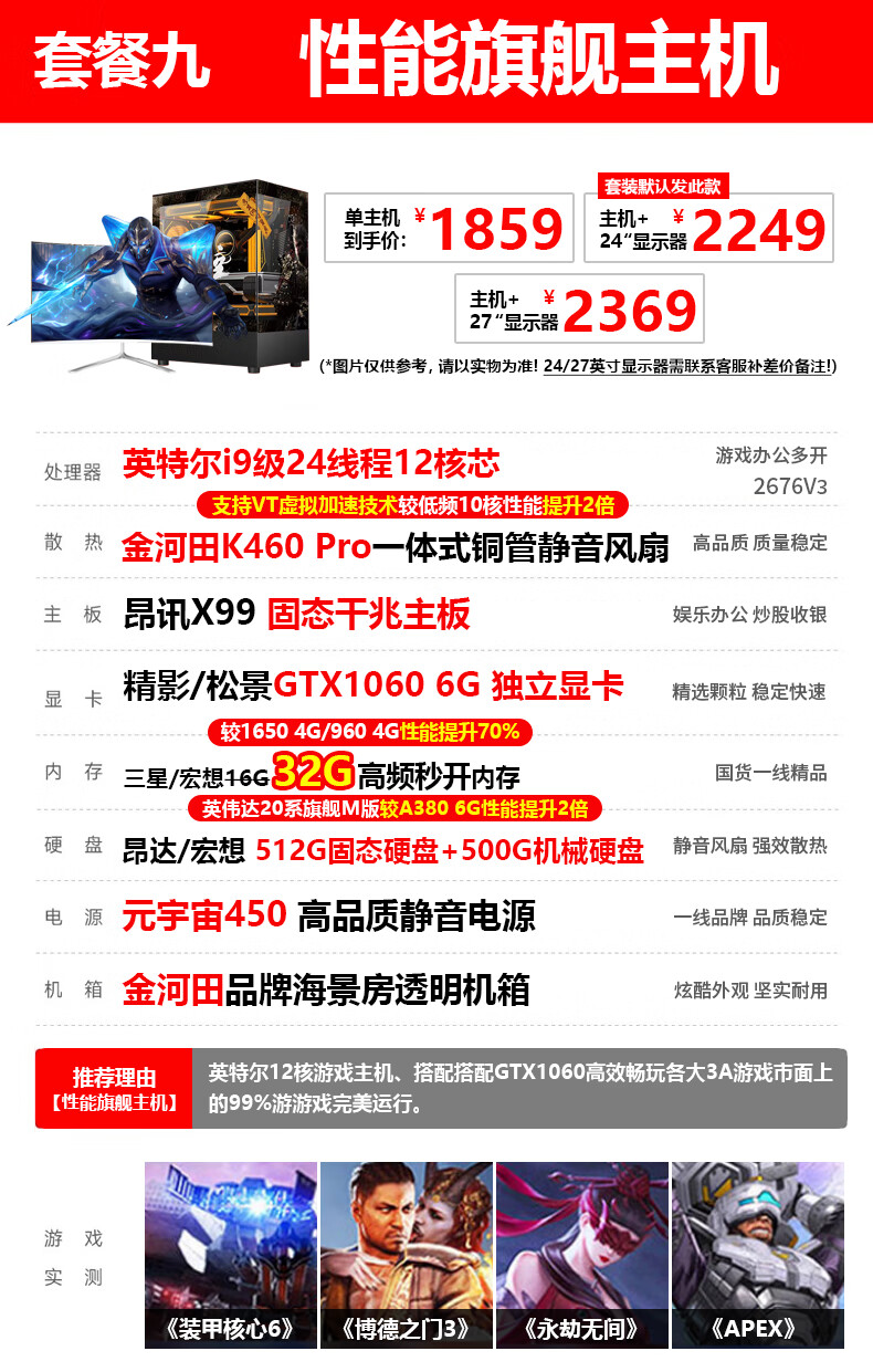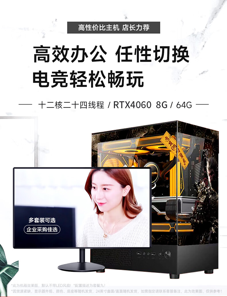Peak God of War Core i9 level 24 core e-sports desktop complete machine high-end live broadcast assembly computer 4060 independent display office gaming water cooling host + 24-inch IPS e-sports monitor set of six i9 level twelve cores | 32G | live broadcast editing