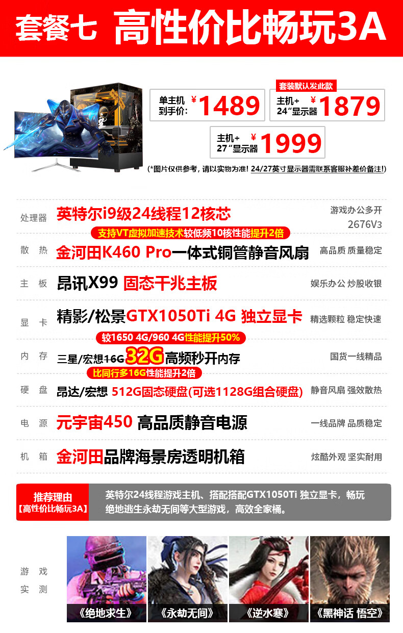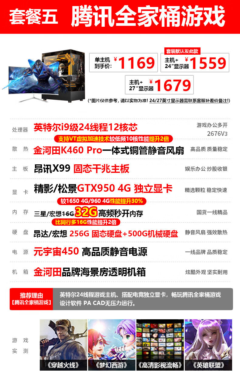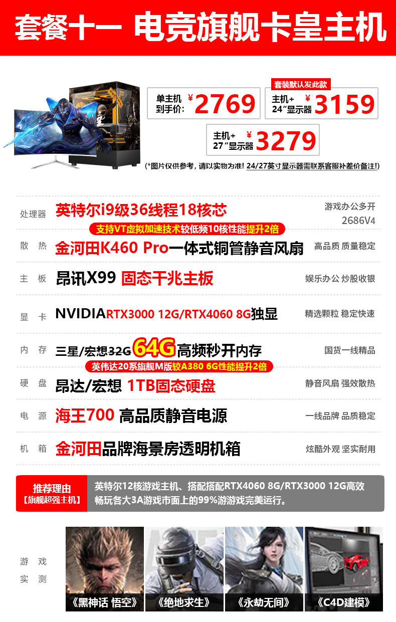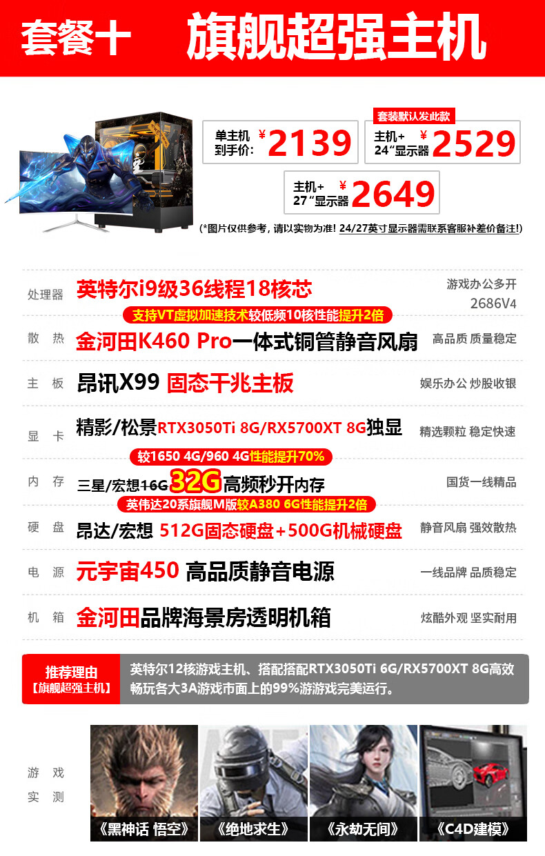Peak God of War Core i9 level 24 core e-sports desktop complete machine high-end live broadcast assembly computer 4060 independent display office gaming water cooling host + 24-inch IPS e-sports monitor set of six i9 level twelve cores | 32G | live broadcast editing