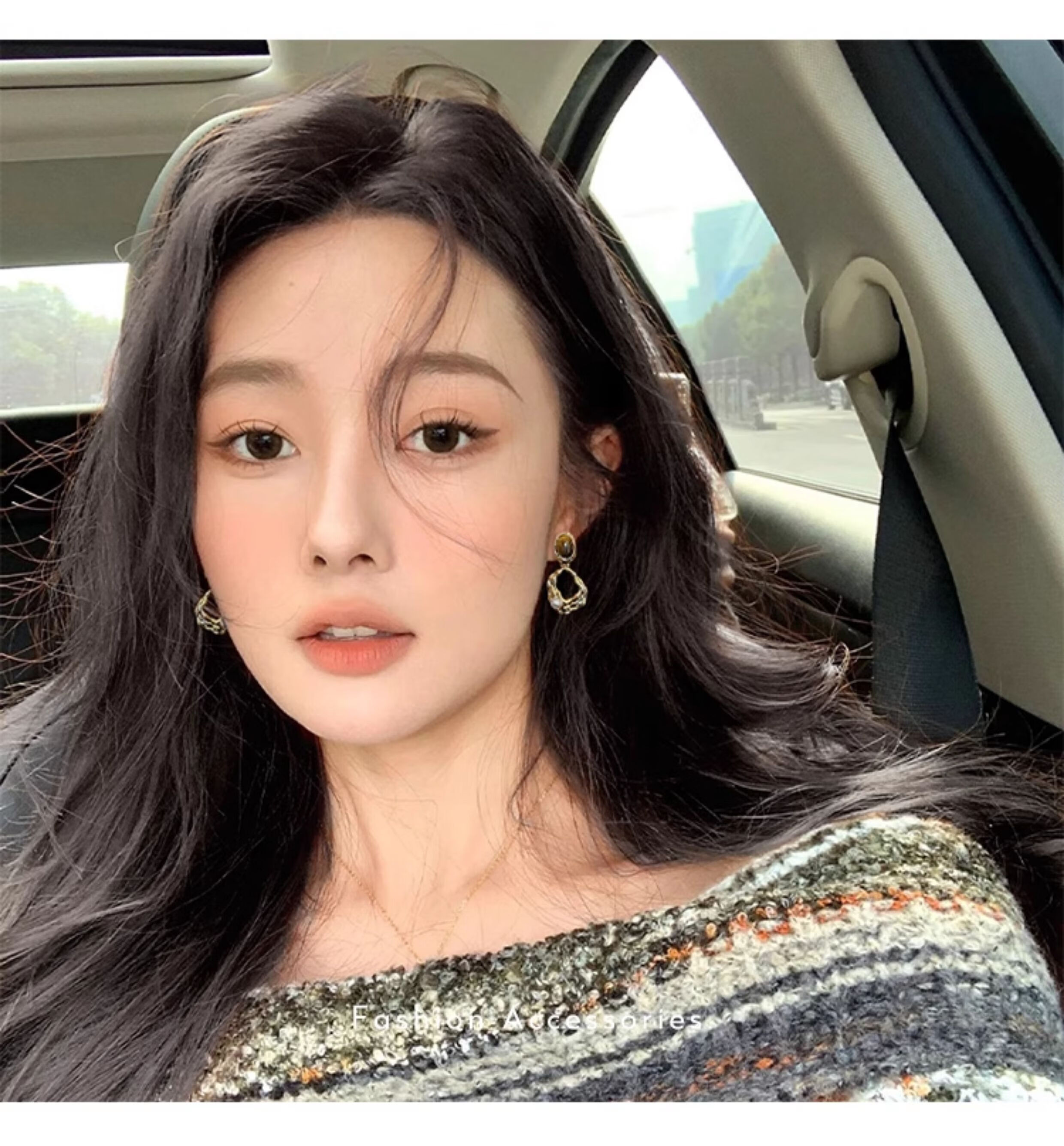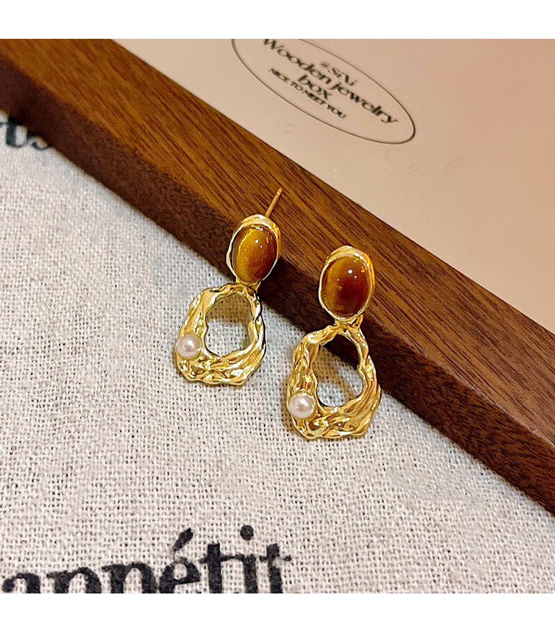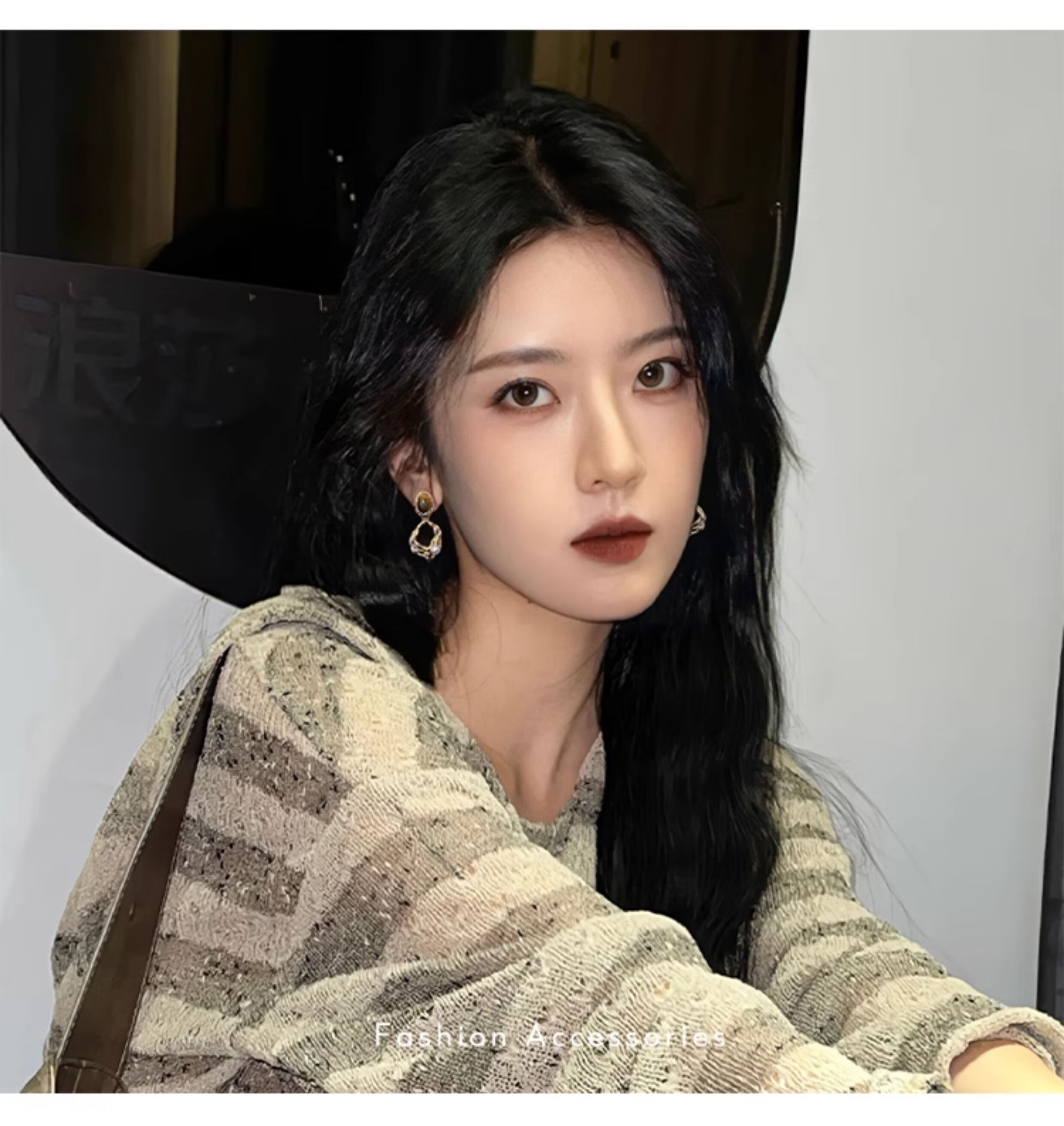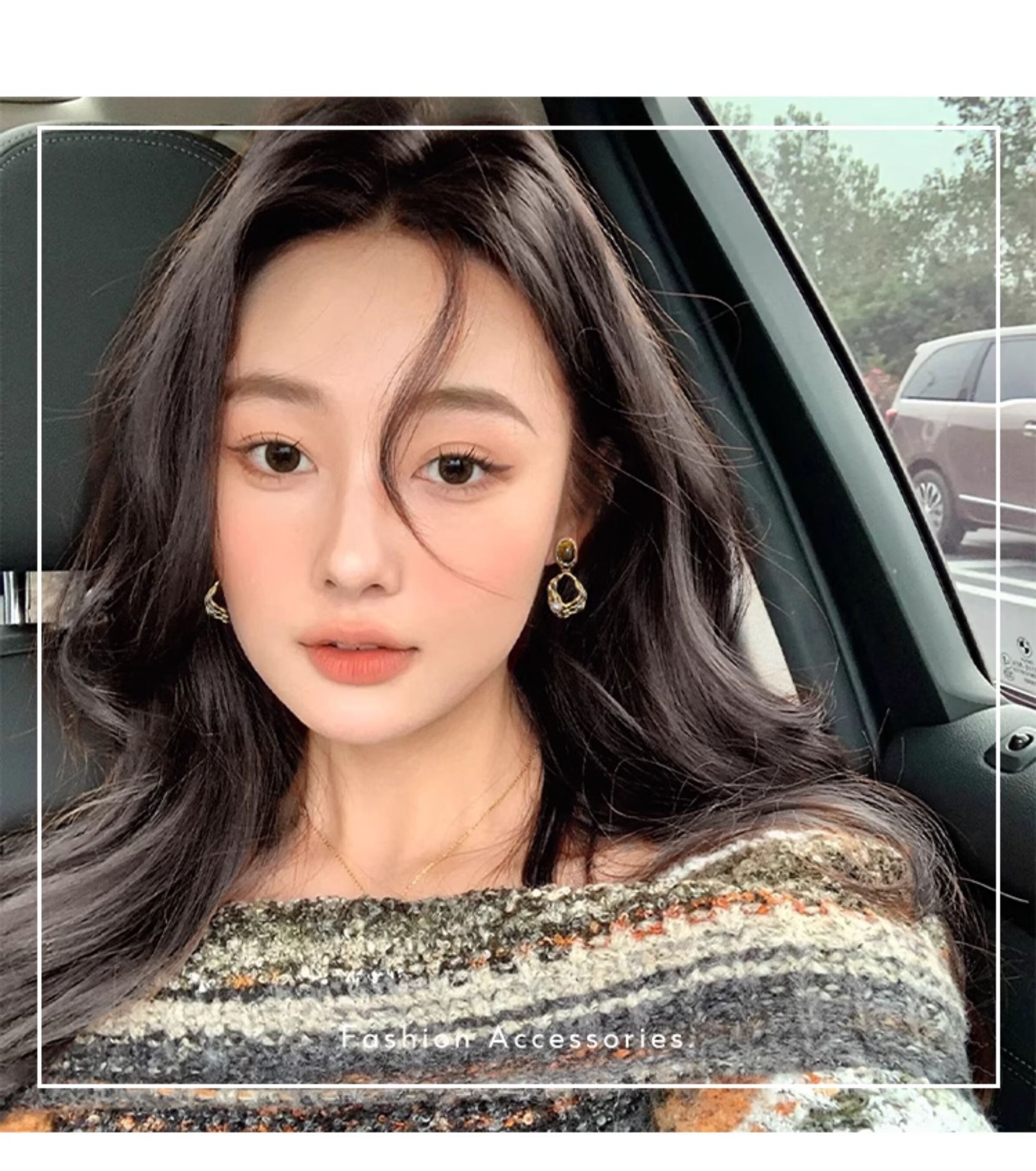 Fan Shengyu retro brown earrings for women in autumn and winter irregular niche light luxury earrings temperament high-end Hong Kong style earrings Maillard hollow earrings a pair