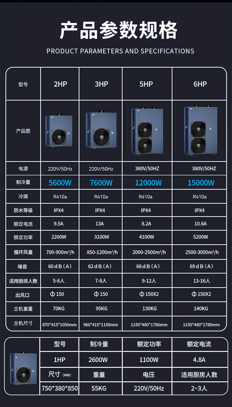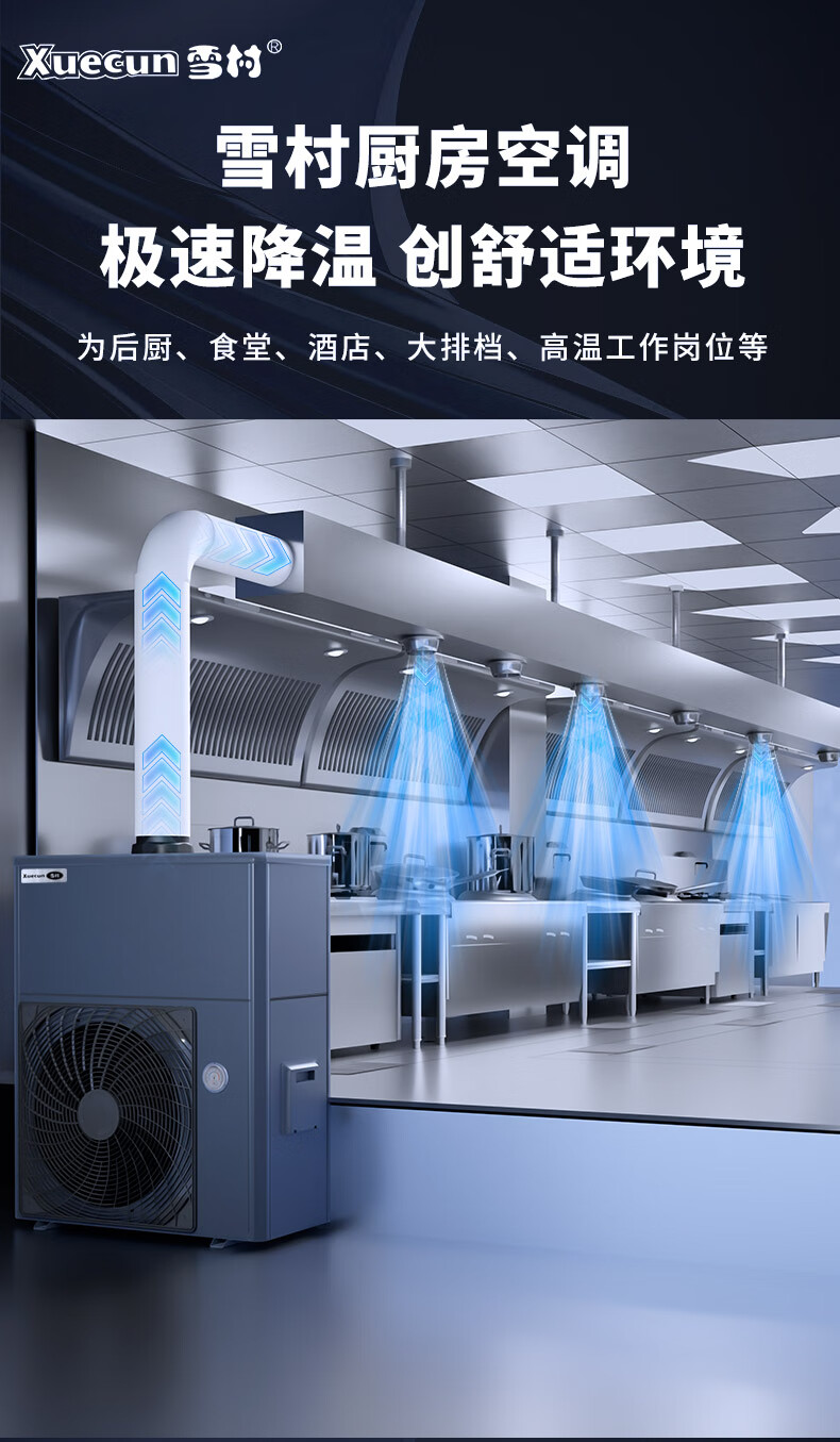 Xuecun commercial kitchen air-conditioning, hotel kitchen special air-conditioning duct machine, restaurant canteen, hotel workshop, central air-conditioning, kitchen fresh air refrigeration all-in-one machine, 2 horses, set, all-inclusive, 5-hole mop