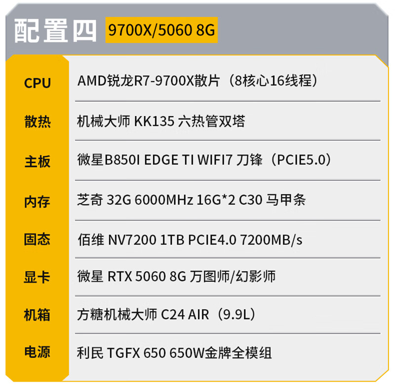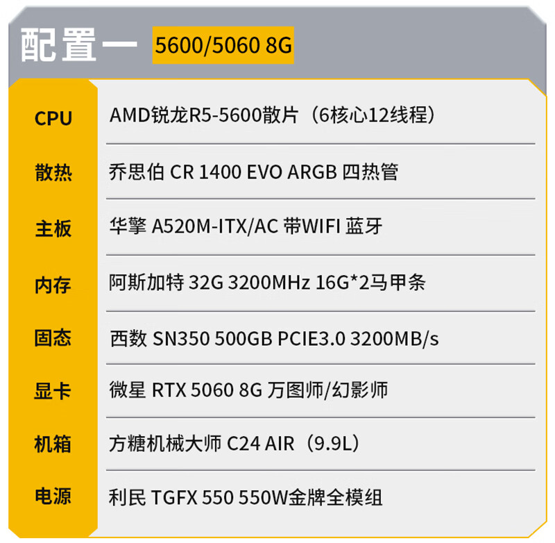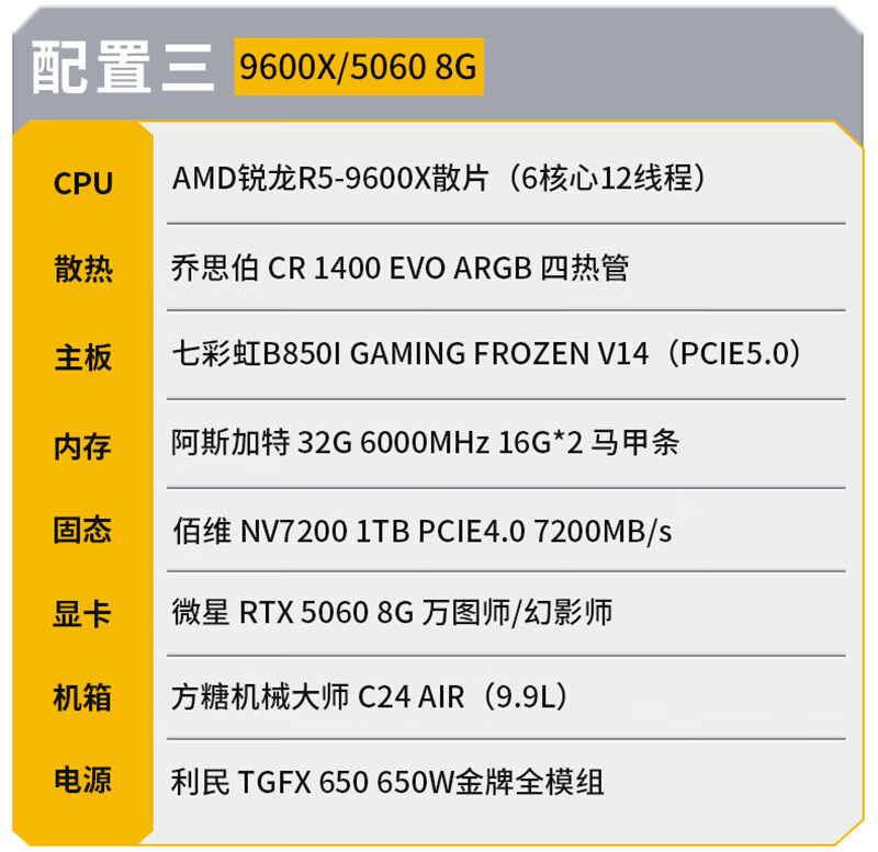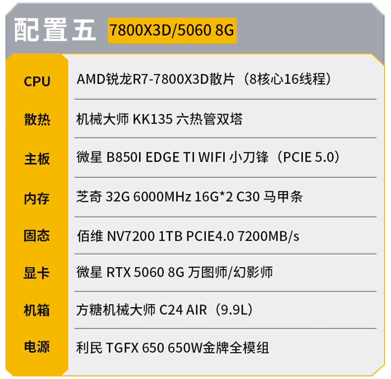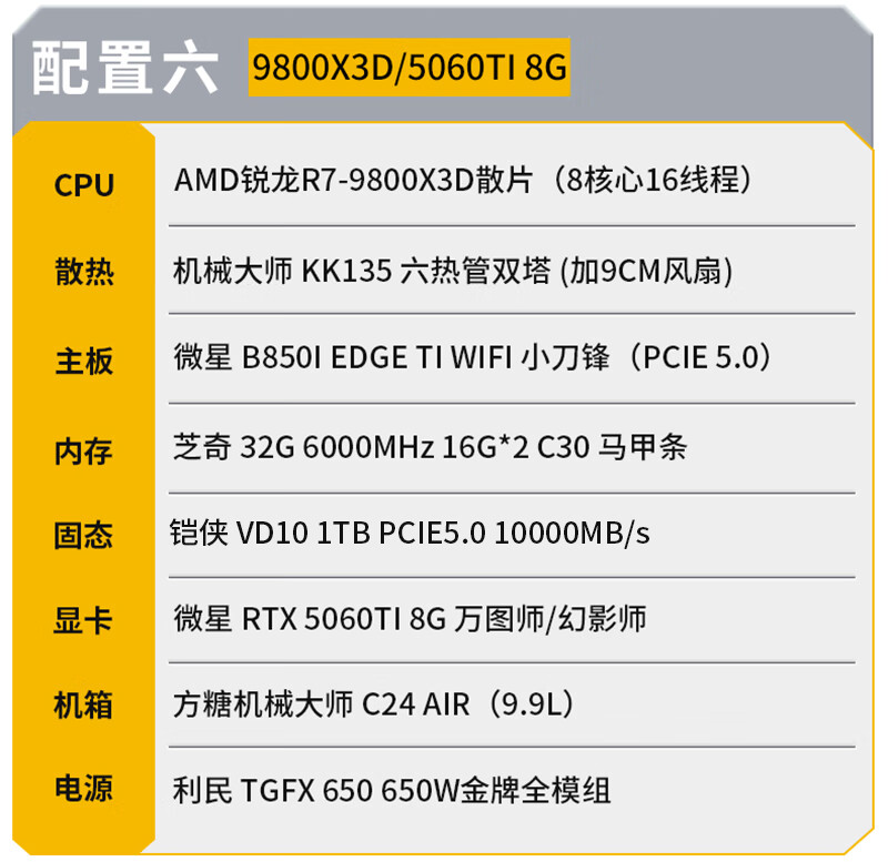 Sugar Cube Mechanical Master AMD Ryzen computer assembly machine 9600X/9800X3D desktop computer host C24 ITX portable mini host configuration three 9600X/32G/5060 8G