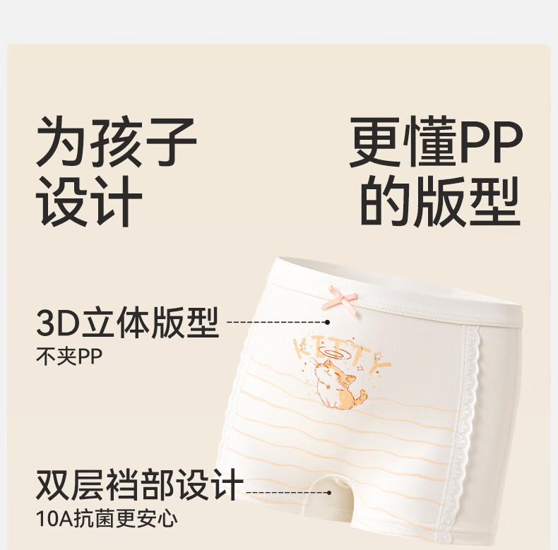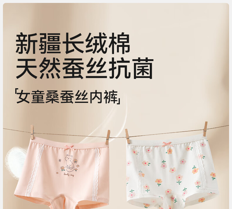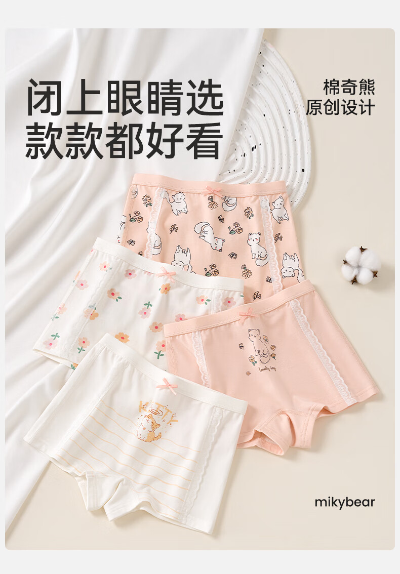 Mianqi Xiong Silk Antibacterial Crotch Children's Underwear Girls' Cotton Class A Boxer Briefs Medium and Large Children's Cotton Briefs 4 Pack A202 Mulberry Silk Bottom *10A Antibacterial 4 Pack 110 -Height 95-110cm Weight 25-35Jin Jin is equal to 0.5kg