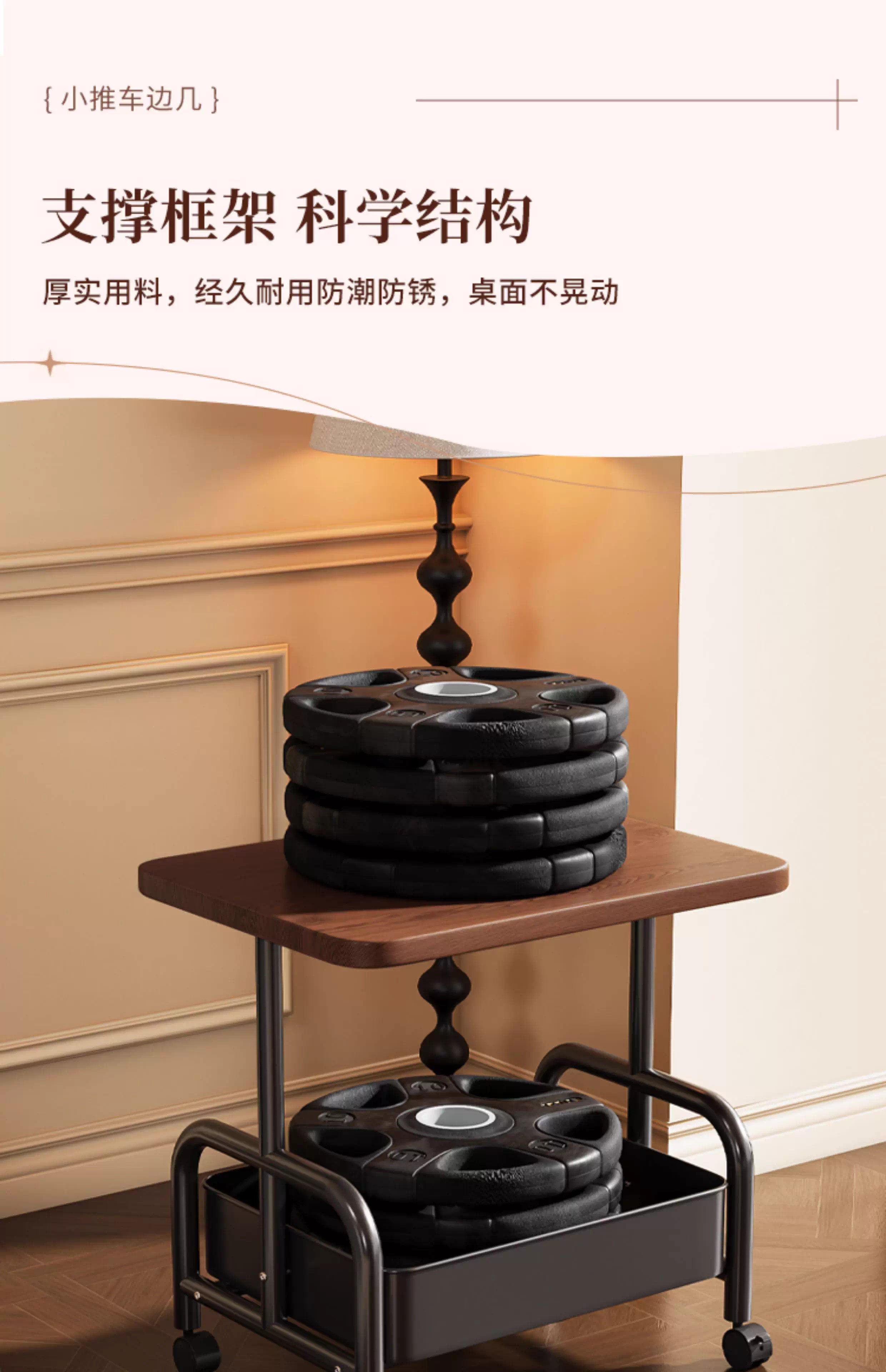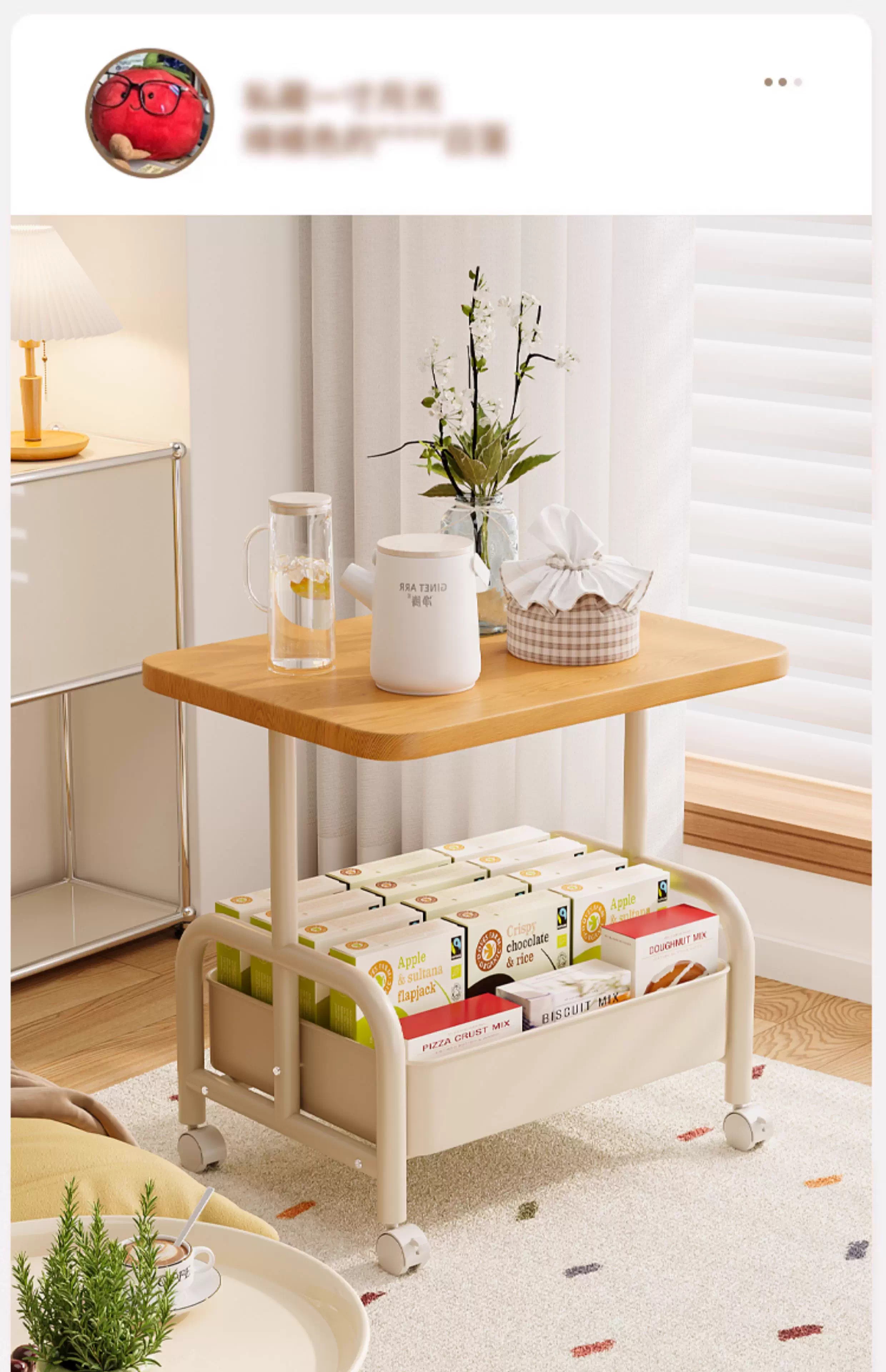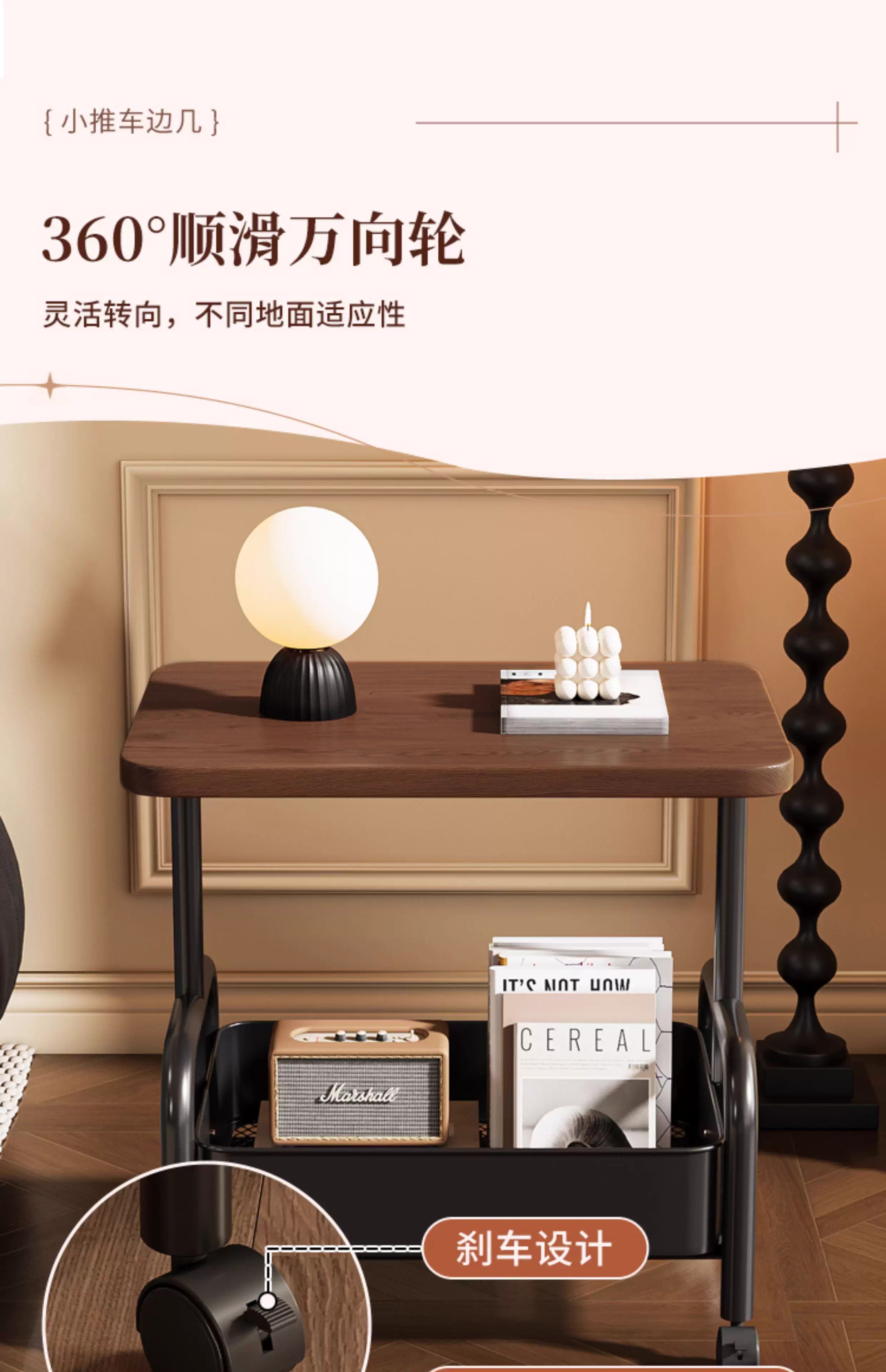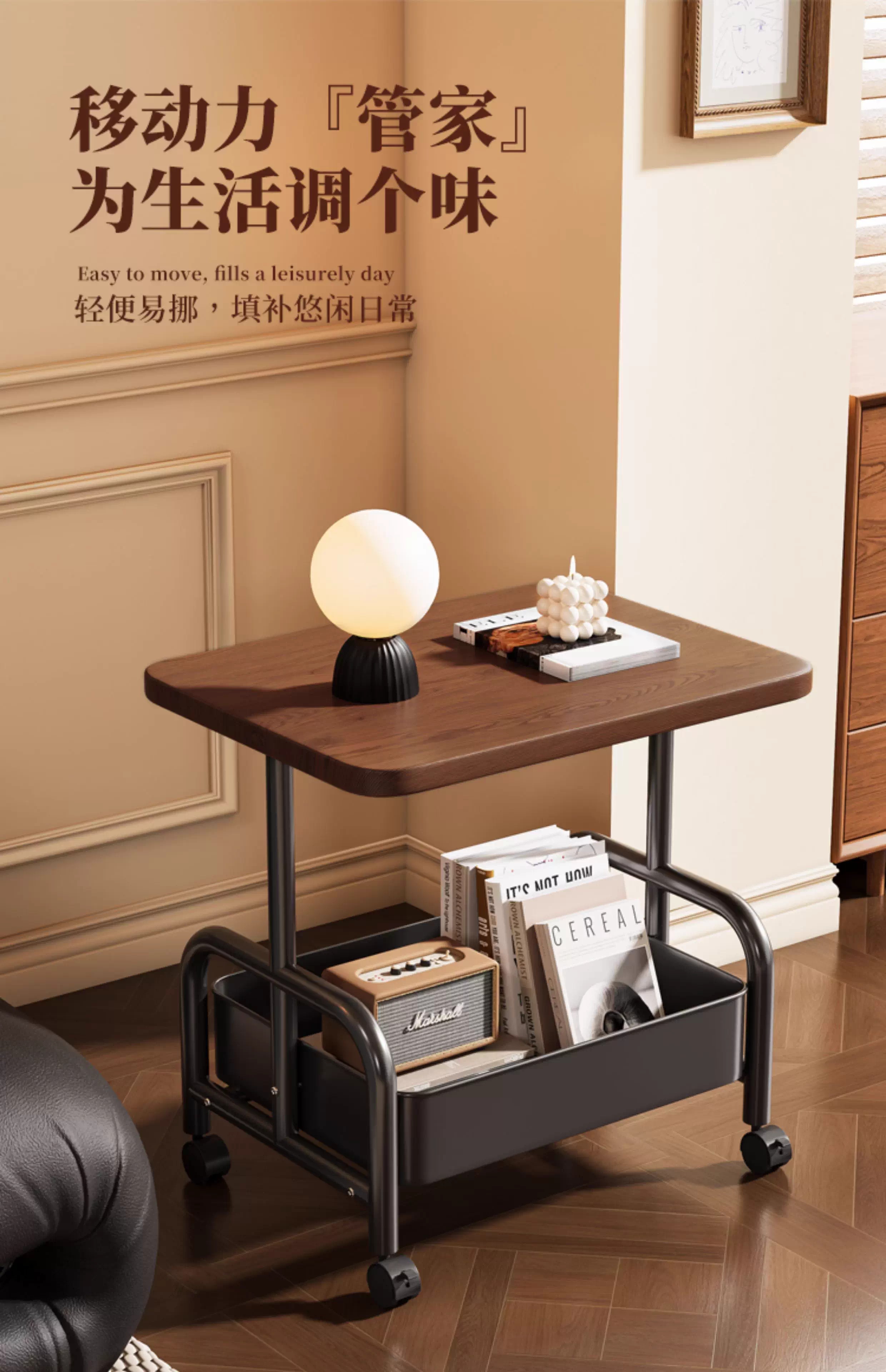 Bedside table, movable coffee table, trolley, sofa, side table, bedside storage rack, high table, living room snack storage rack, cream white 45*30*51, stable + universal wheels