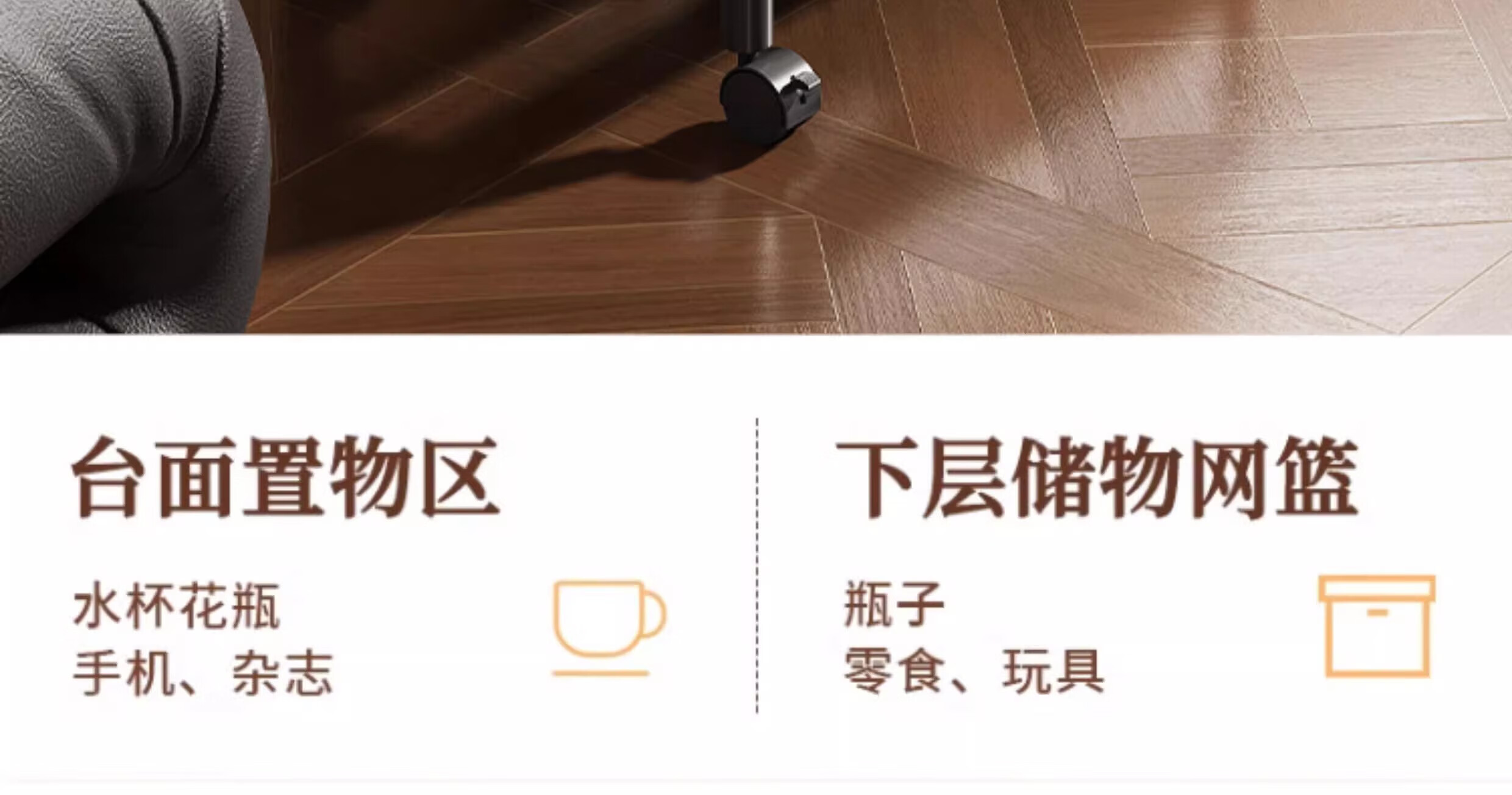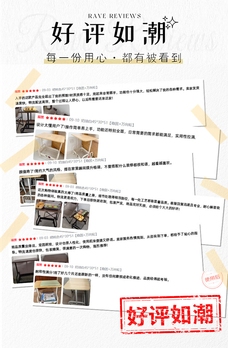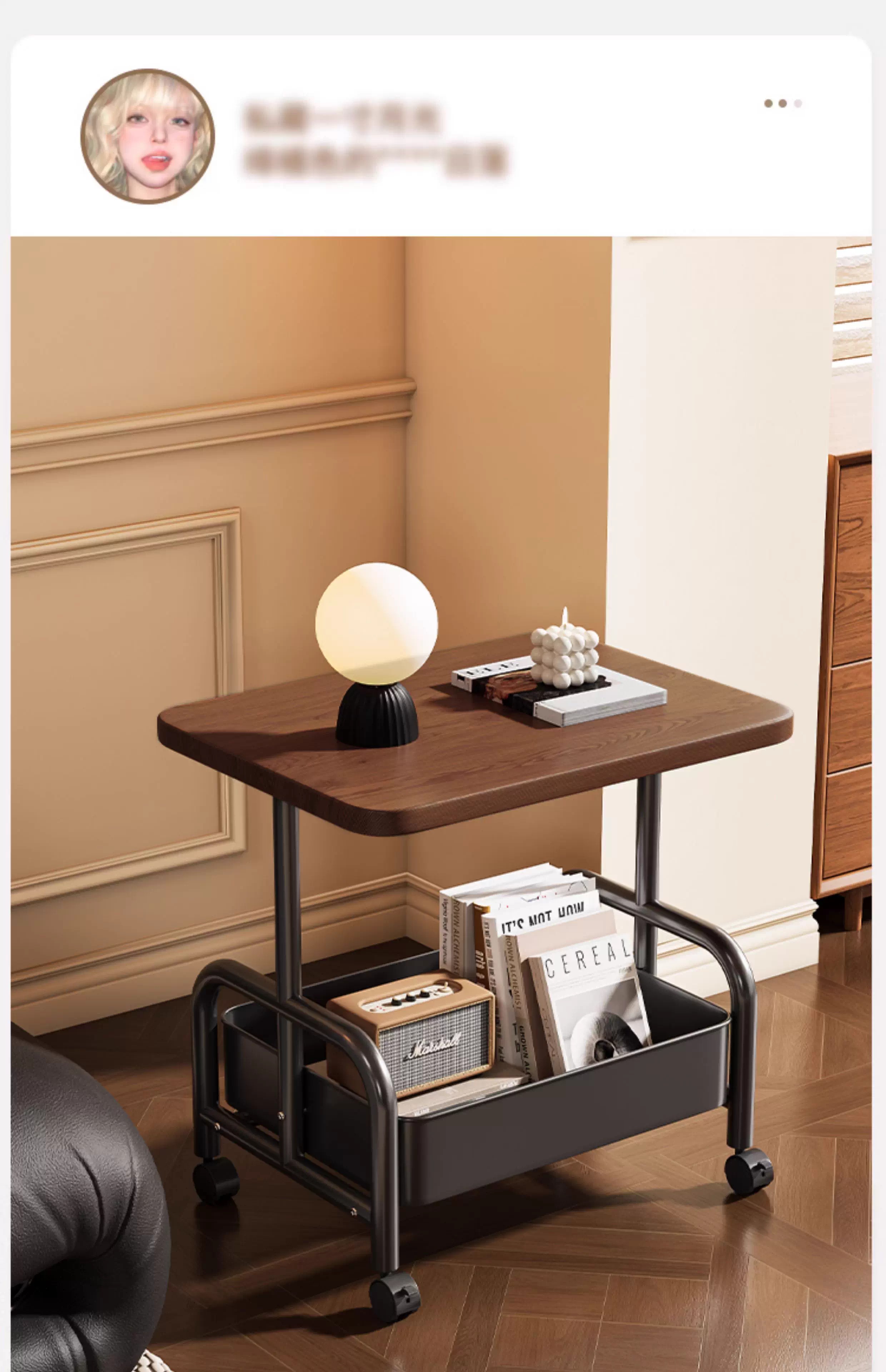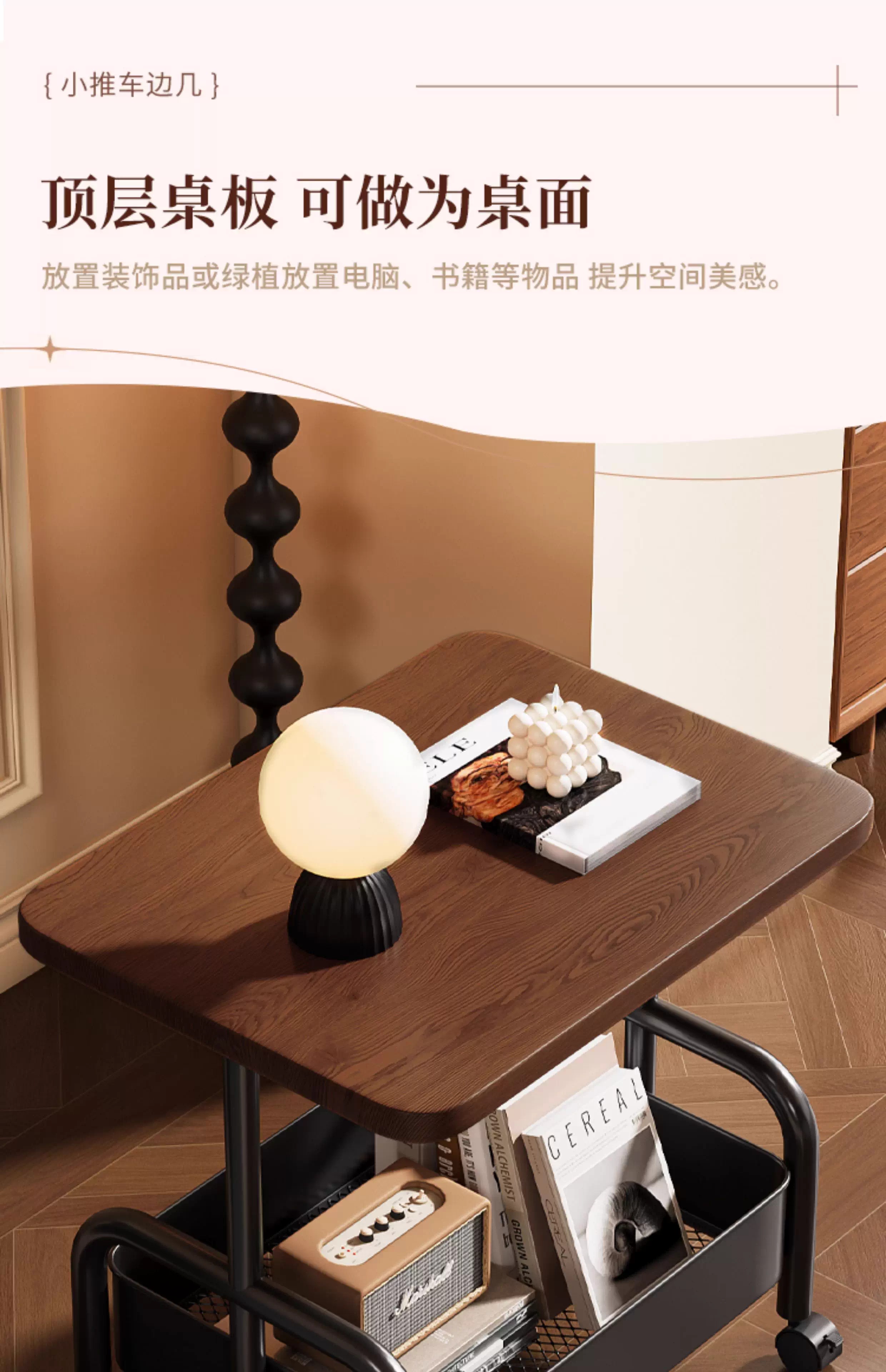 Bedside table, movable coffee table, trolley, sofa, side table, bedside storage rack, high table, living room snack storage rack, cream white 45*30*51, stable + universal wheels
