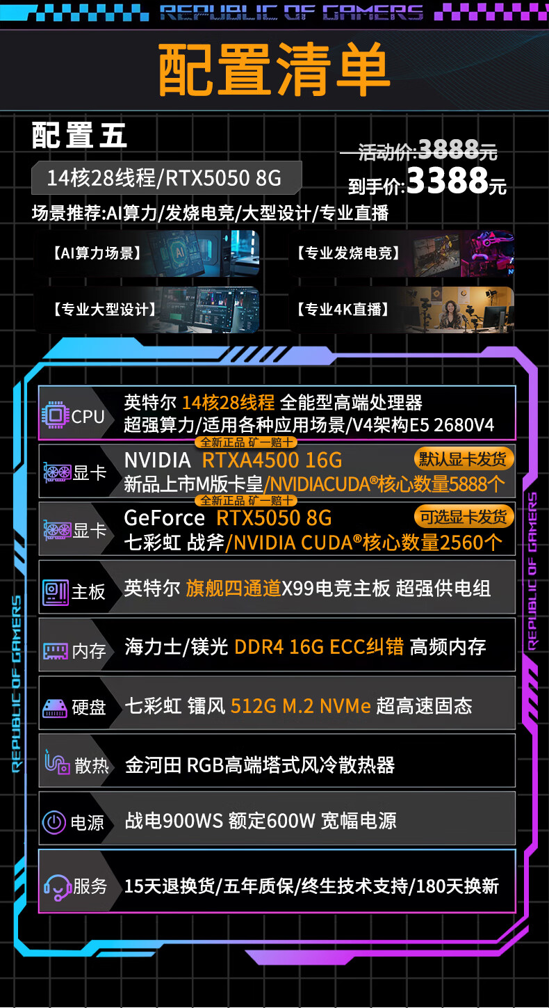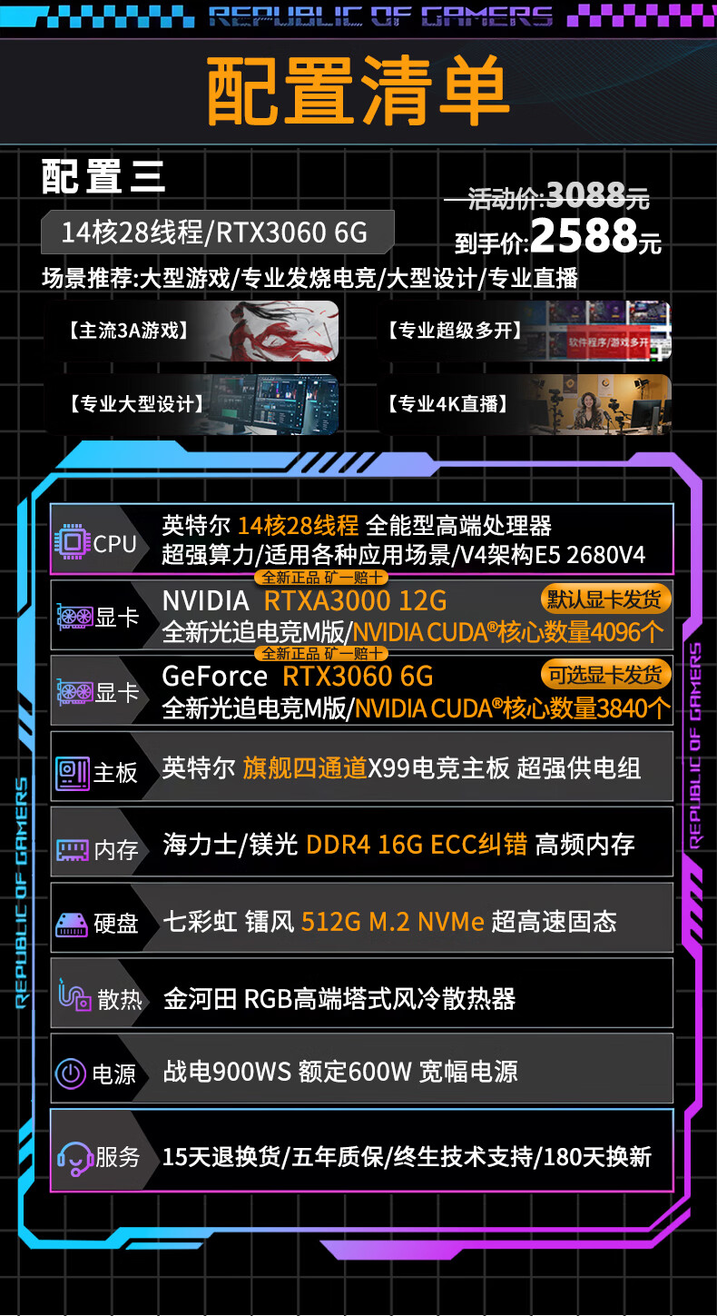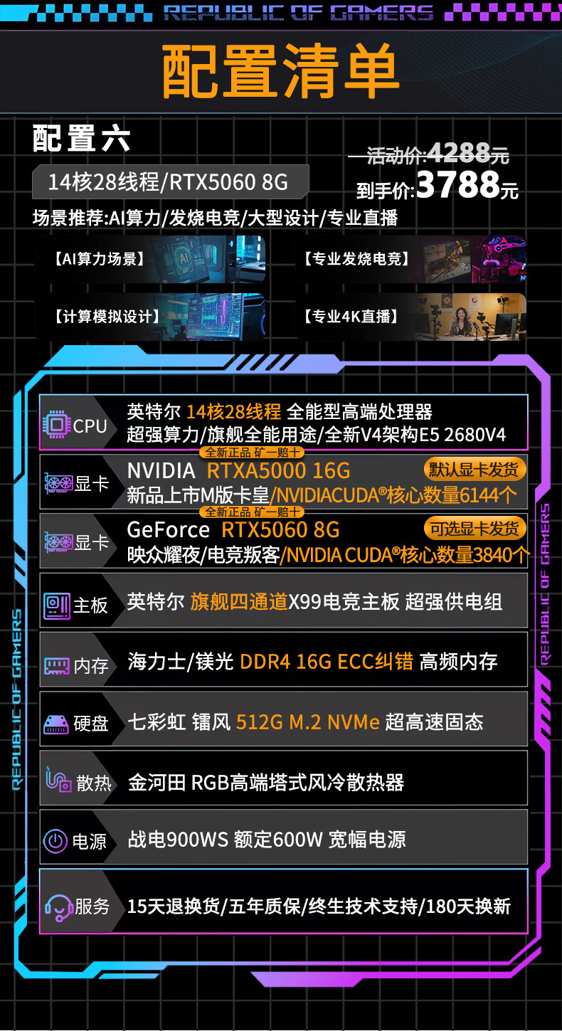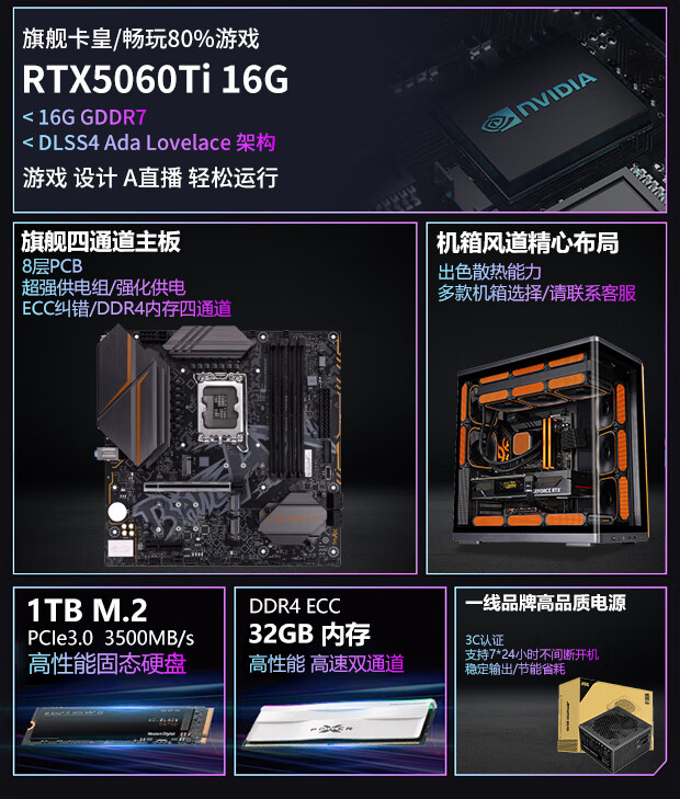 Colorful RTX5060Ti/RTX5050/4070 independent graphics + Intel high-end 18-core 36-thread e-sports gaming desktop computer live broadcast design multi-open assembly host configuration three Intel 14-core 28 threads + RTX3060 6G single host | Five-year warranty | Brand new and authentic