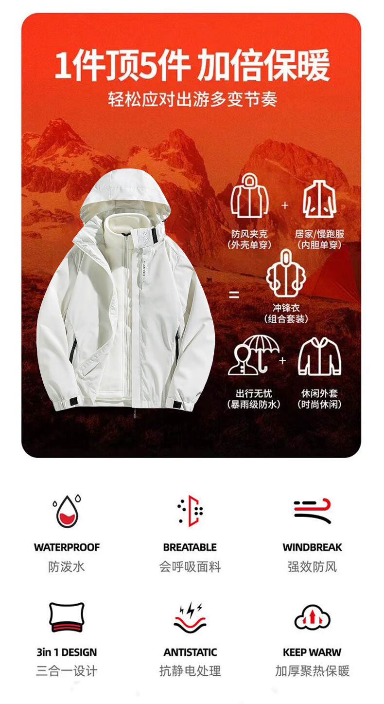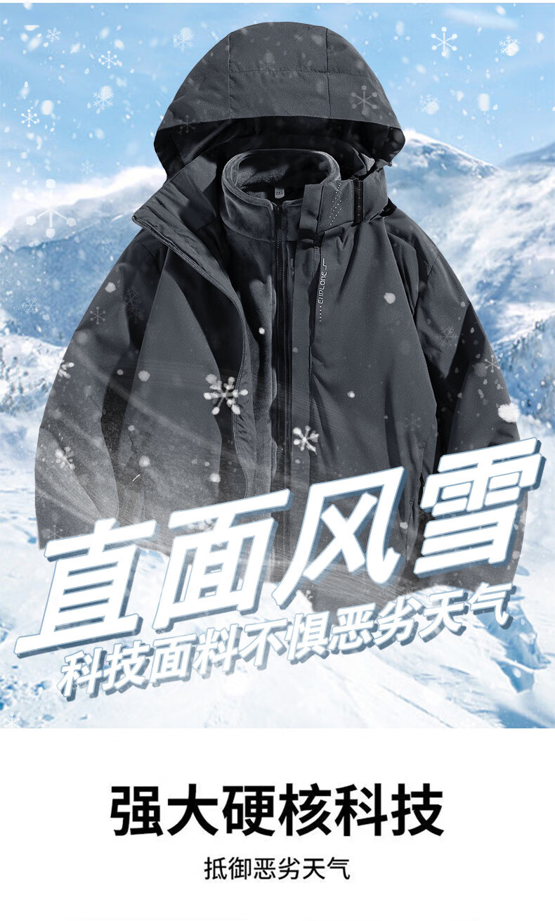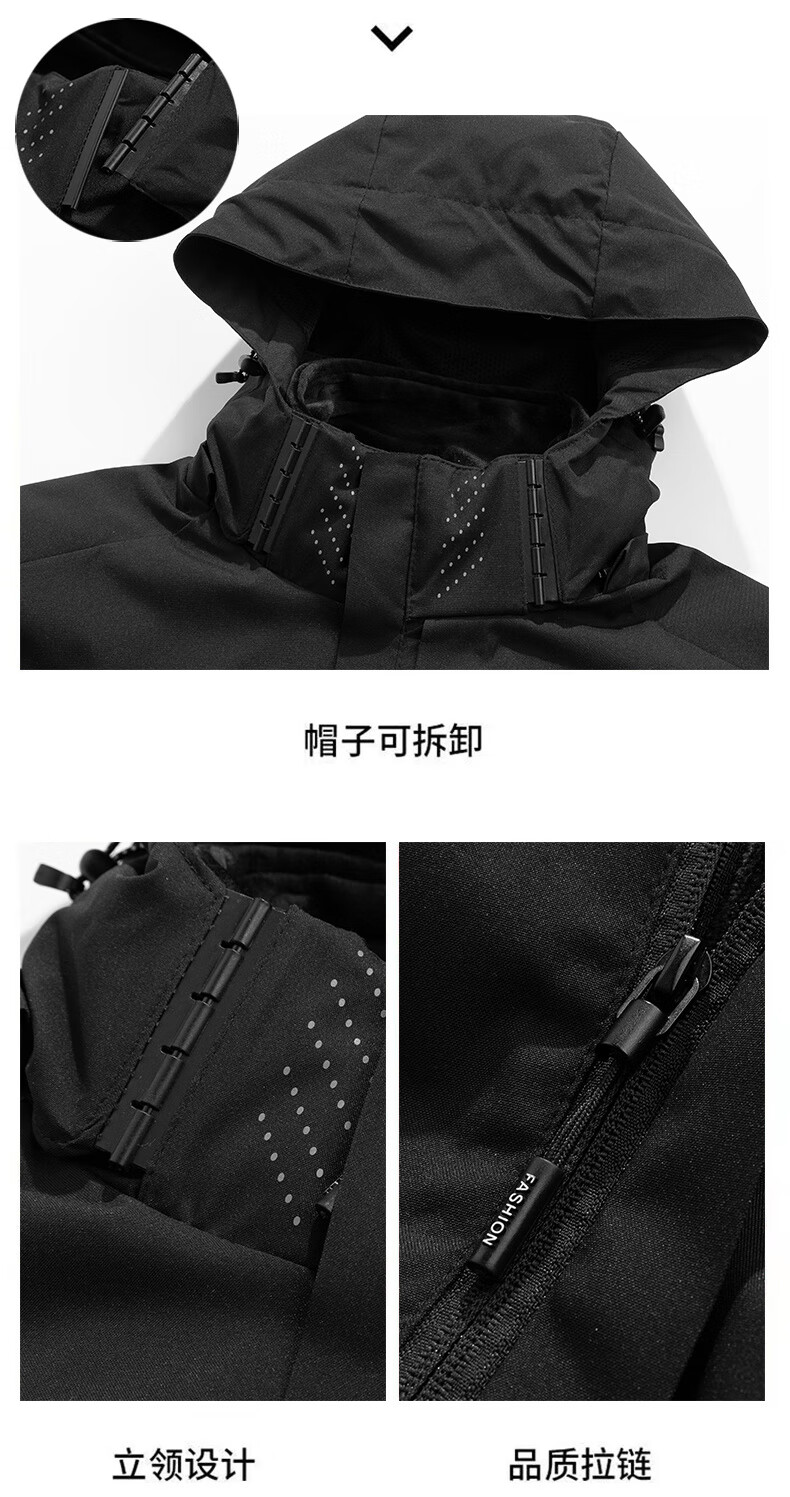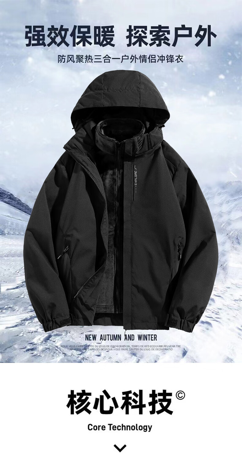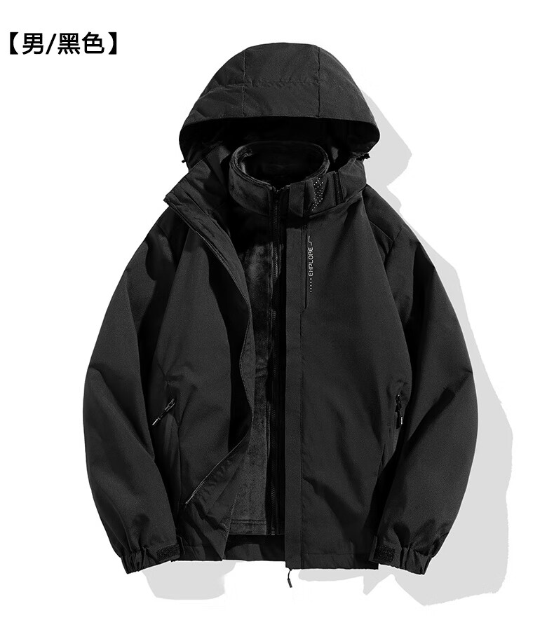 JEEP SPIRIT Jeep Outdoor Three-in-One Jacket Men's Removable Liner Jacket Windproof Spring Season Mountaineering Suit Men's - Black Three-in-One 2XL