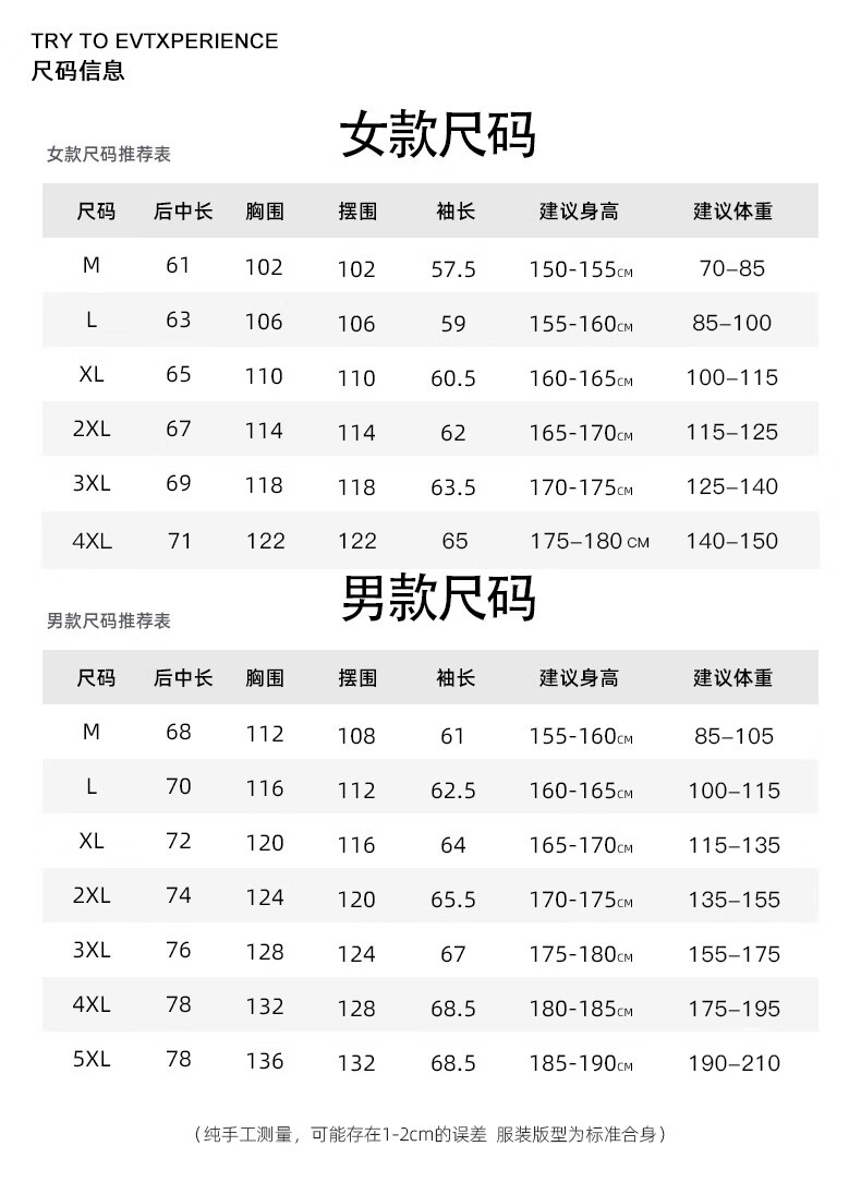 China (cm) 160-165/84-86 165-170 / 88-90 167-172 / 92-96 168-173 / 98-102 170-176 / 106-110