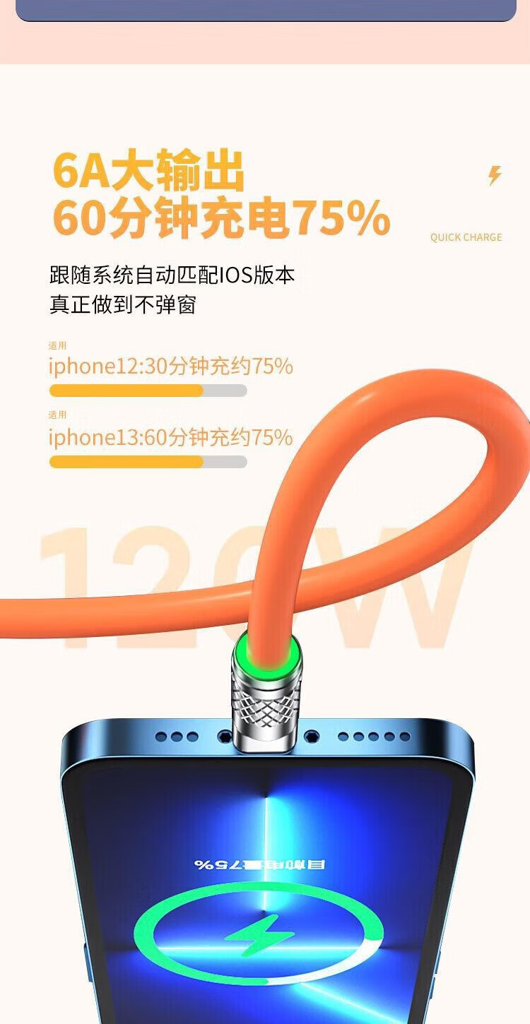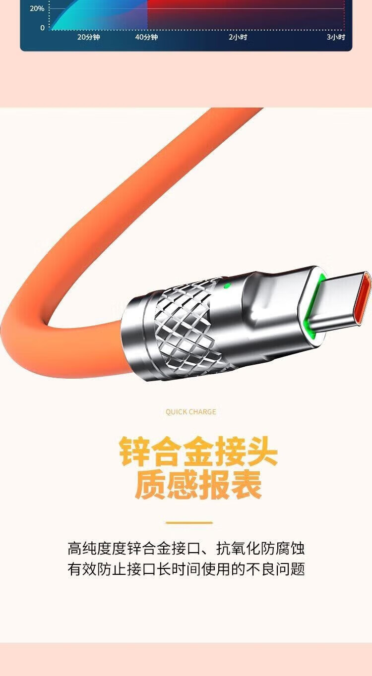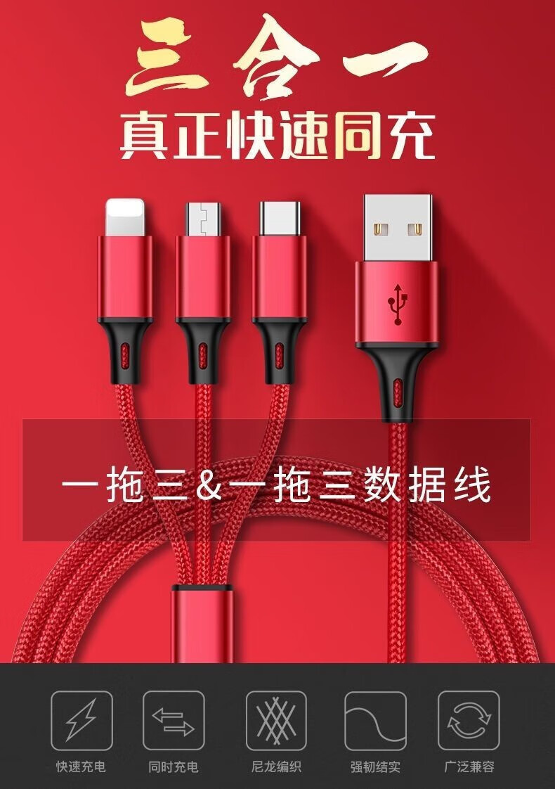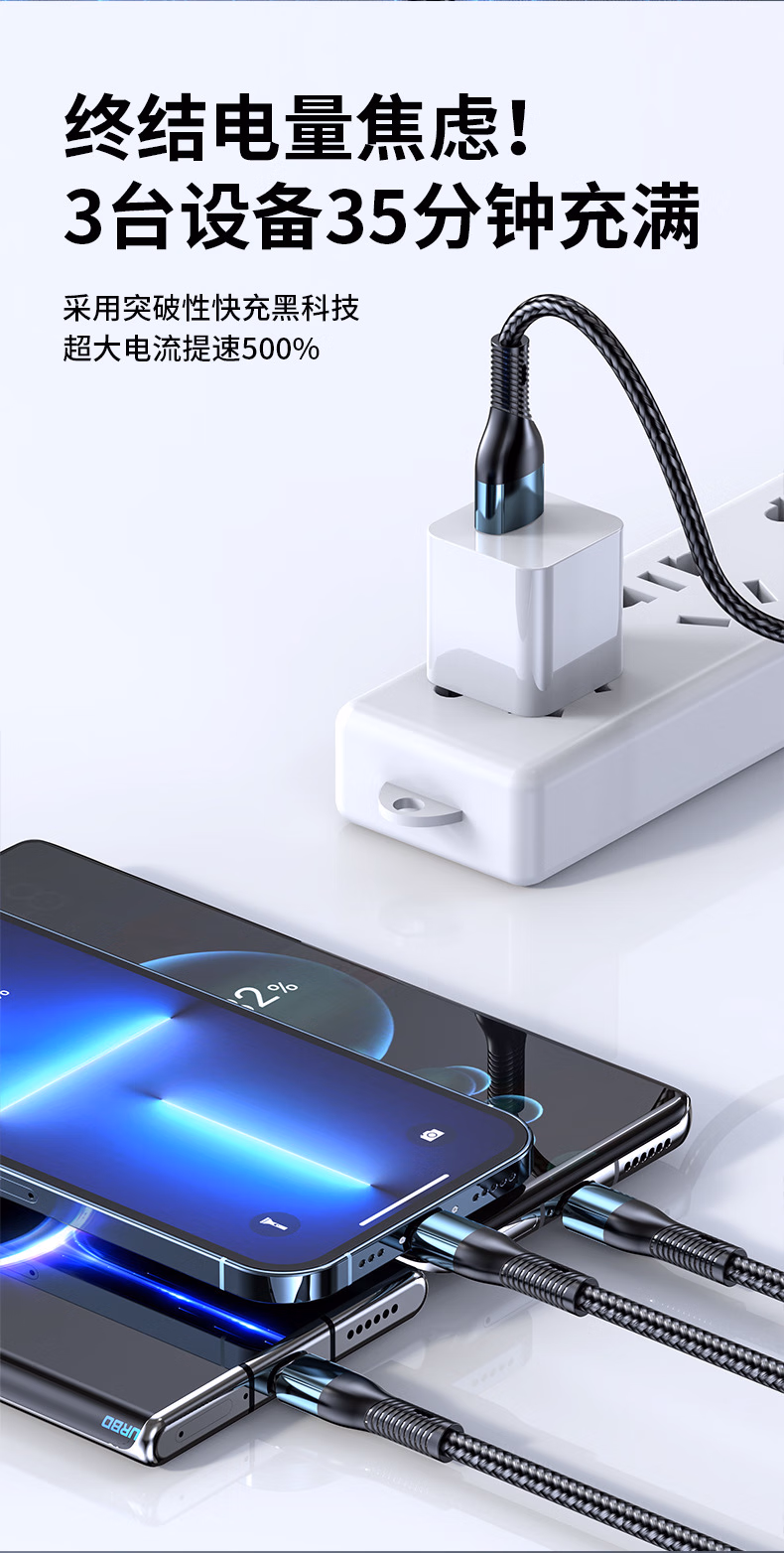 Puchi Apple data cable Type-c fast charging cable Android charging cable three-in-one mobile phone cable one to three VIVO Huawei Samsung Xiaomi universal tablet car power cable 120W class fast charging three-in-one metal head orange