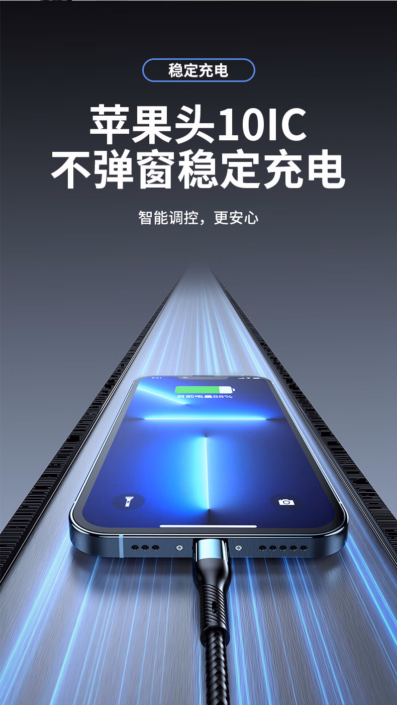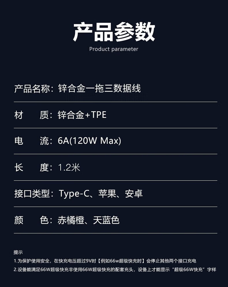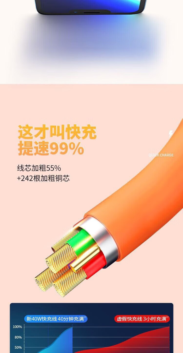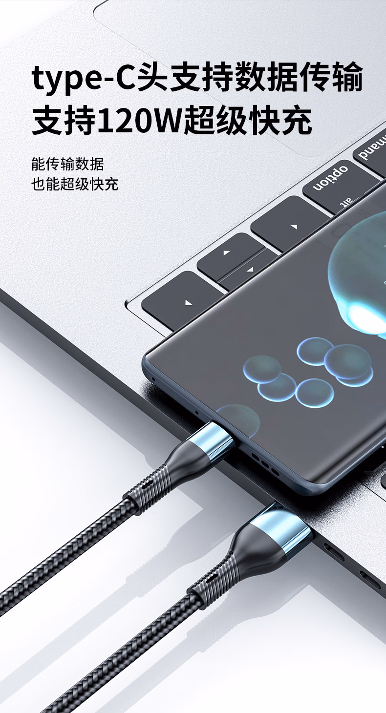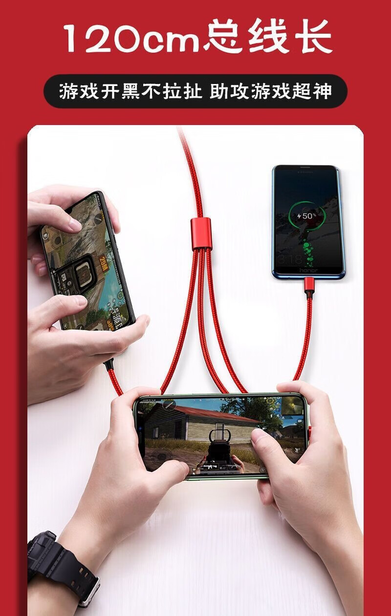 Puchi Apple data cable Type-c fast charging cable Android charging cable three-in-one mobile phone cable one to three VIVO Huawei Samsung Xiaomi universal tablet car power cable 120W class fast charging three-in-one metal head orange