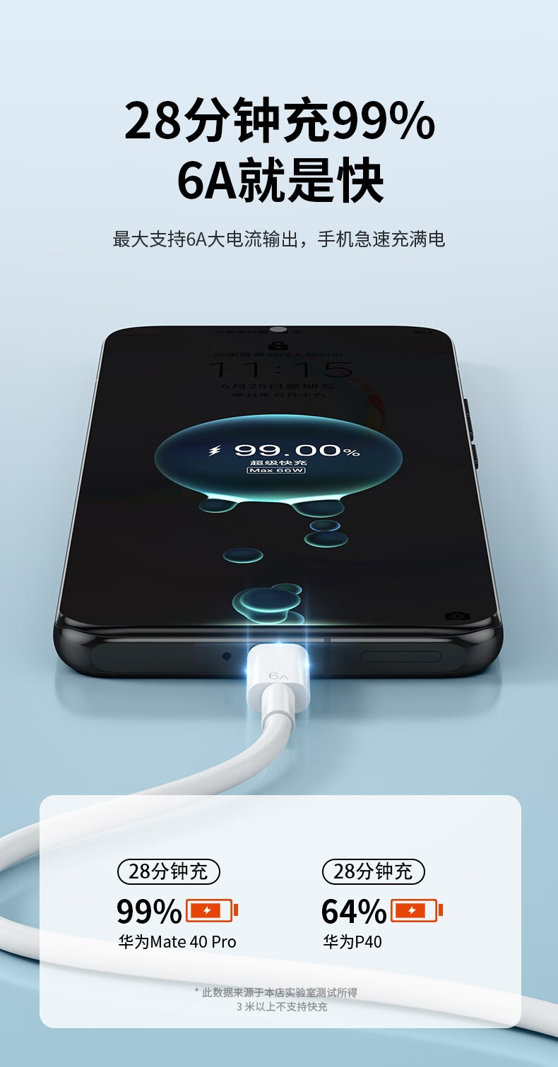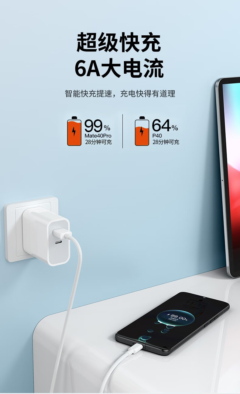 Puchi is suitable for Huawei Type-c level fast charging 6A Android charging cable, suitable for oppovivo Redmi Xiaomi Huawei charging cable data cable. 6A level fast charging SUB-Type-c