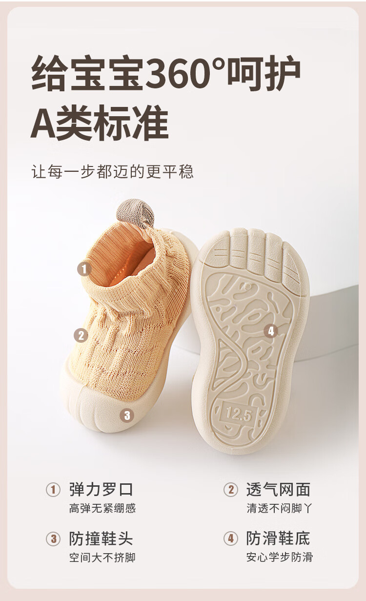 Youqi baby floor socks spring and autumn new soft-soled cooling baby pre-step shoes autumn and winter non-slip toddler shoes for boys and girls yellow 6-12 months