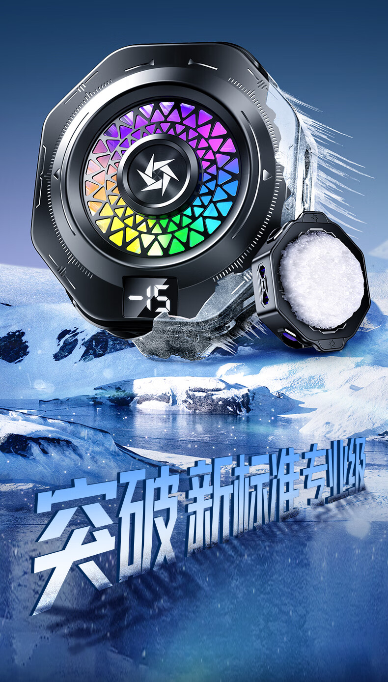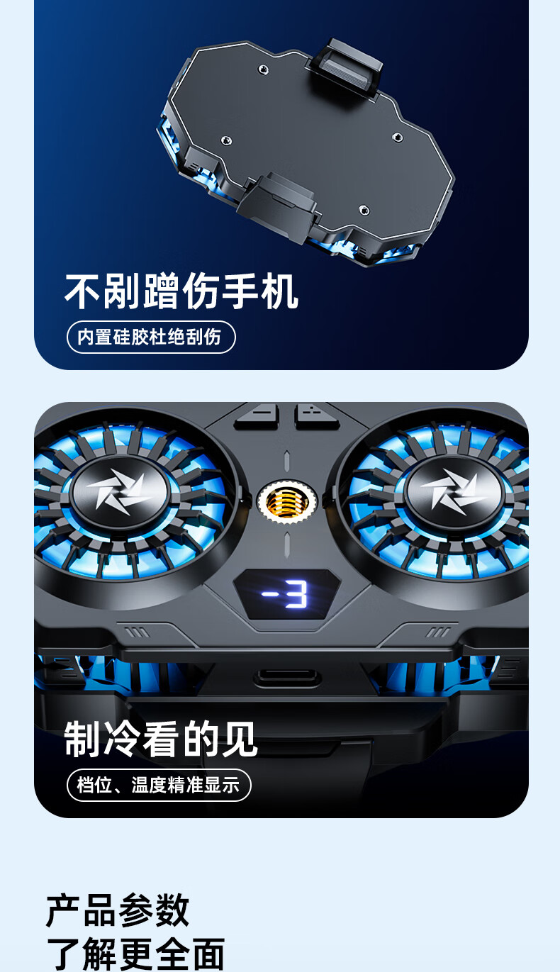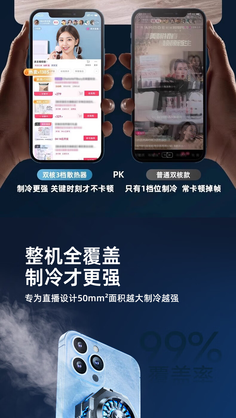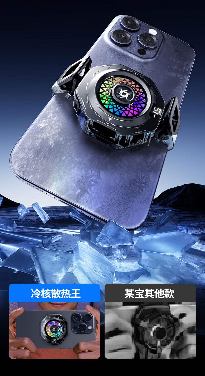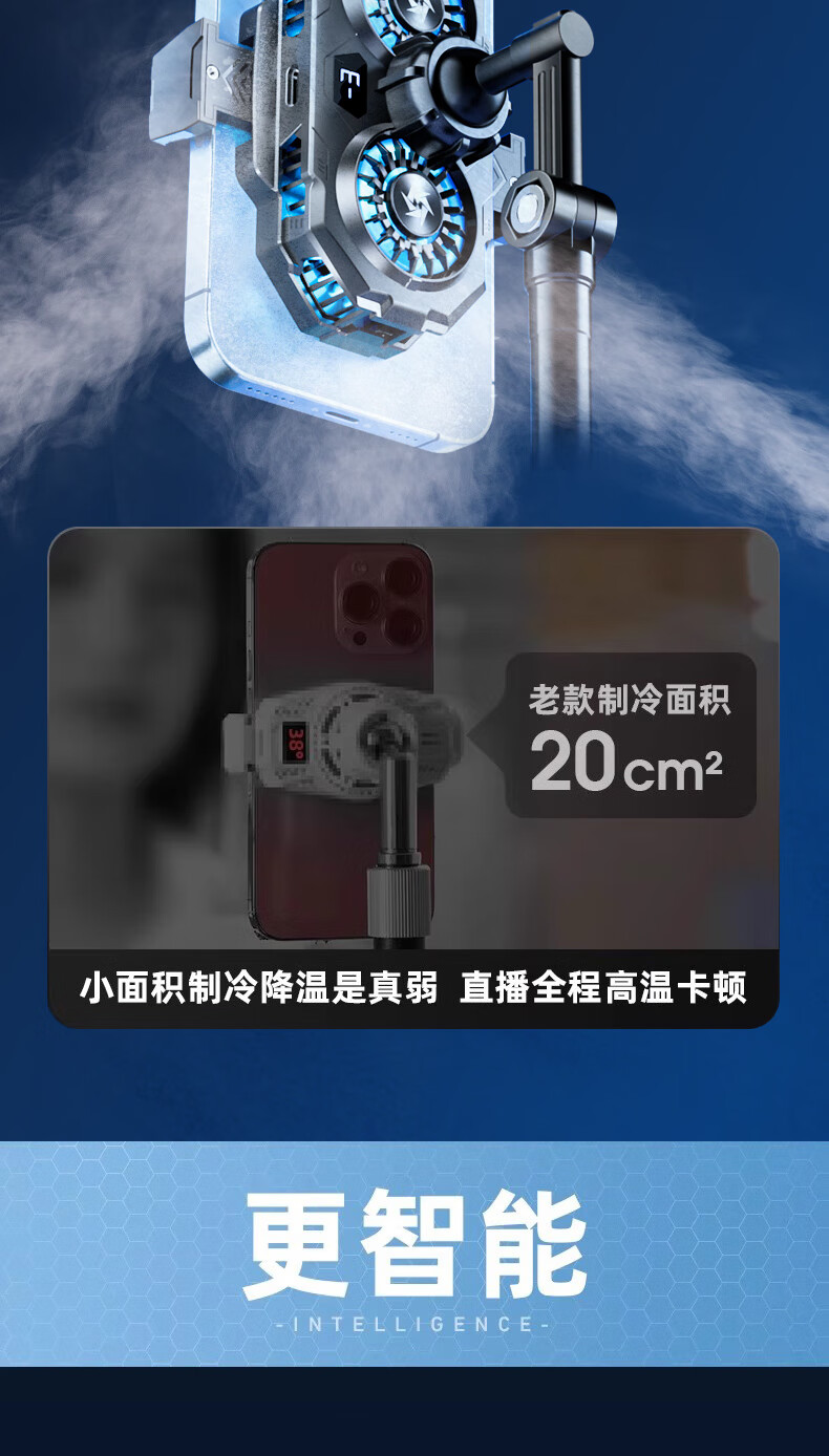 Newmine live broadcast mobile phone radiator magnetic back clip semiconductor refrigeration, dedicated to chicken king games, e-sports grade cooling, suitable for Apple IQOO, Black Shark and Red Magic mobile phones and tablets, dedicated for live broadcast, twin turbine cooling丨large surface positive rapid cooling