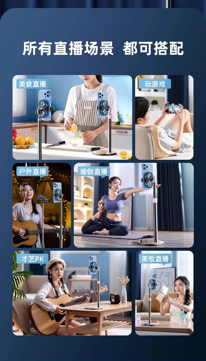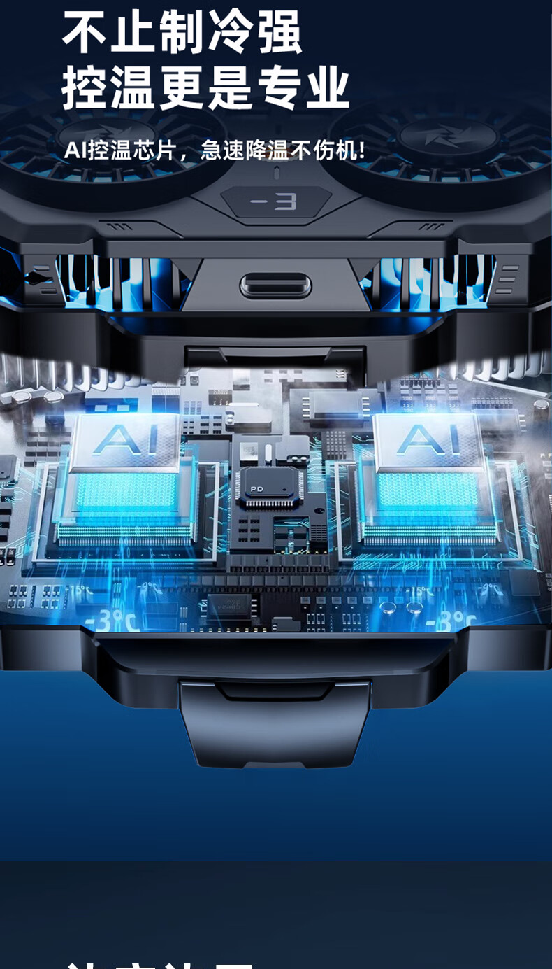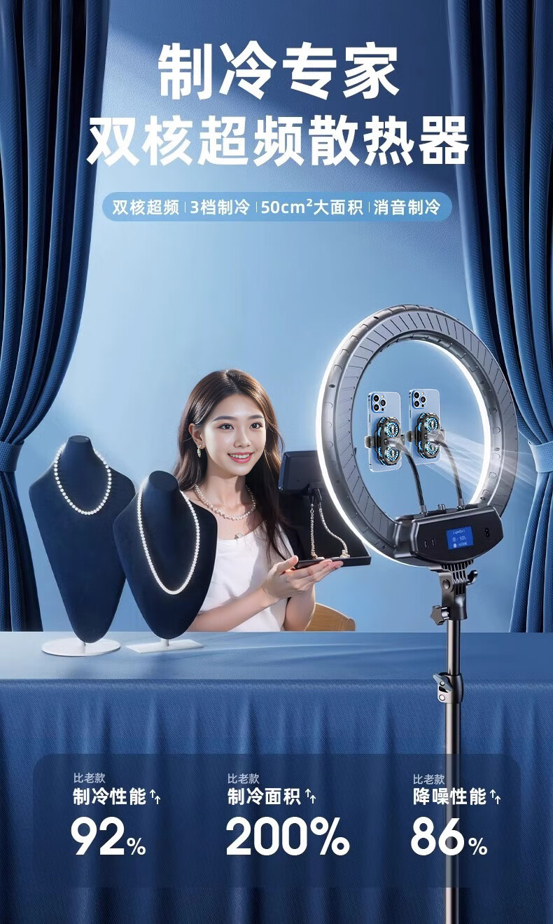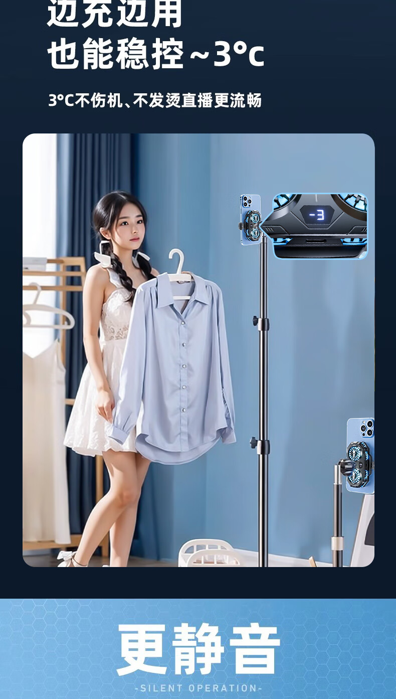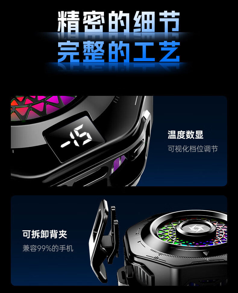 Newmine live broadcast mobile phone radiator magnetic back clip semiconductor refrigeration, dedicated to chicken king games, e-sports grade cooling, suitable for Apple IQOO, Black Shark and Red Magic mobile phones and tablets, dedicated for live broadcast, twin turbine cooling丨large surface positive rapid cooling