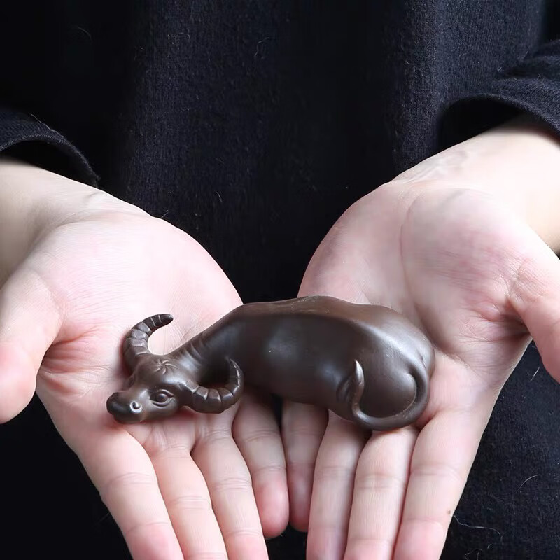 Meikejie Purple Clay Tea Pet Cow Turns the World and Plays with Golden Toad Ornaments Boutique Handmade Sculpture Tea Tray Tea Props Can Raise Figure Bull
