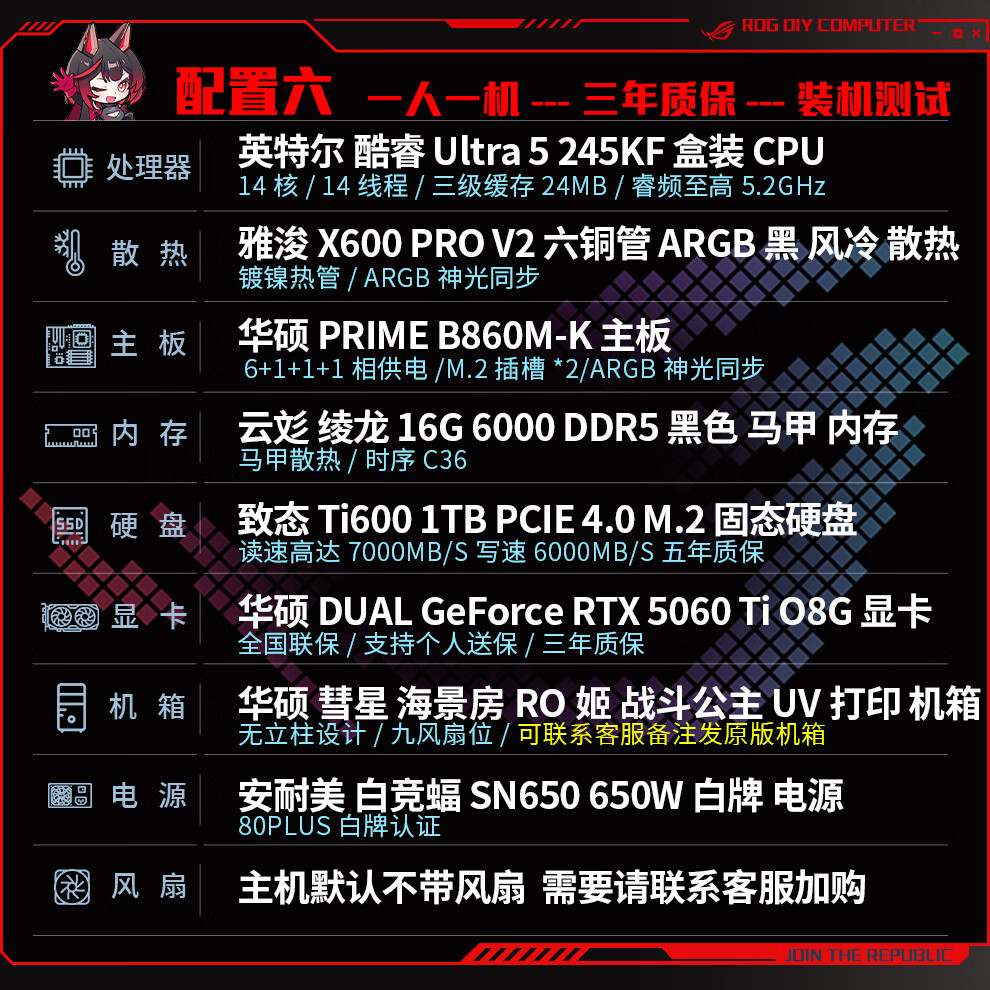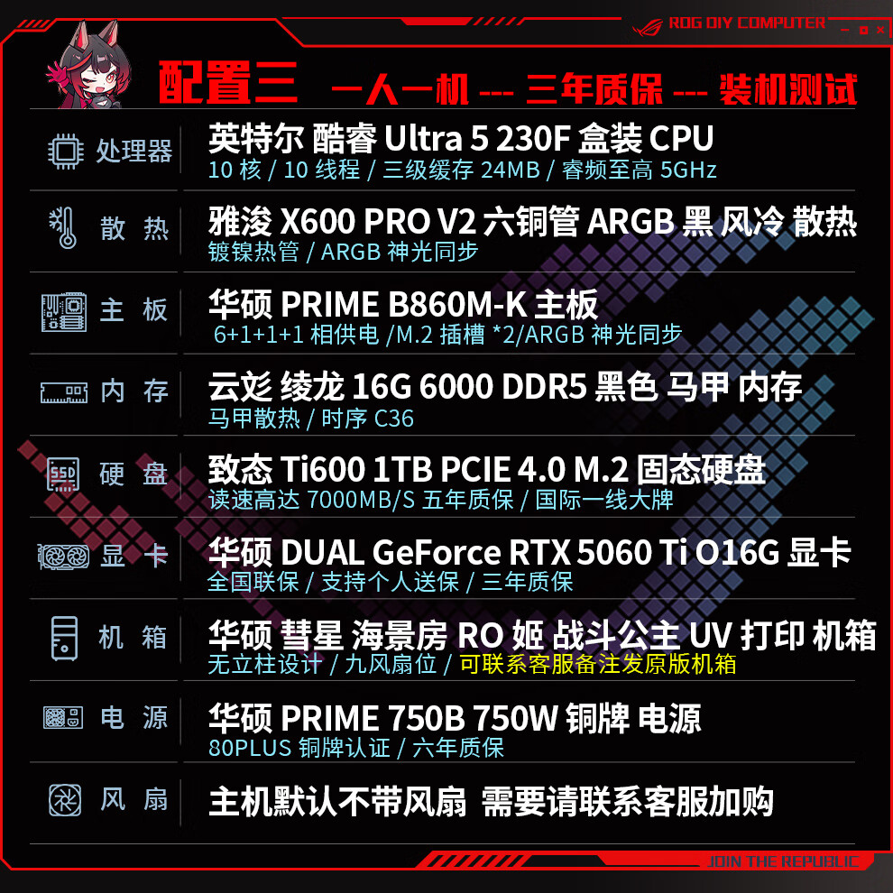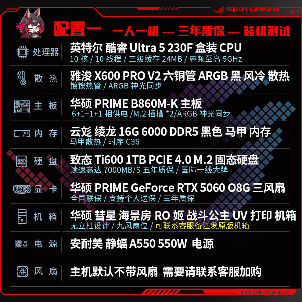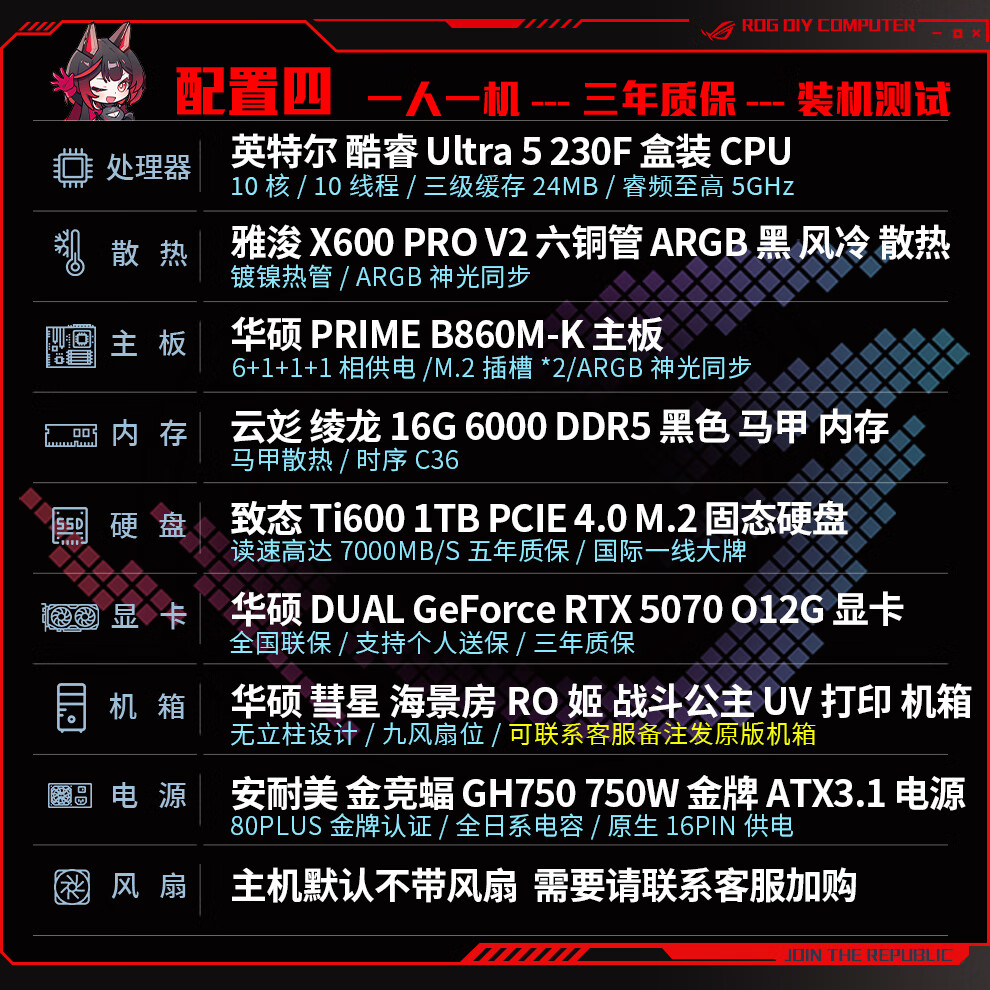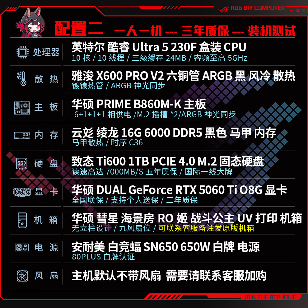 ASUS ROG family bucket 230F/RTX5060Ti RTX5070 computer host live broadcast e-sports Delta game design rendering desktop assembly computer DIY complete machine with two 230F+RTX5060Ti