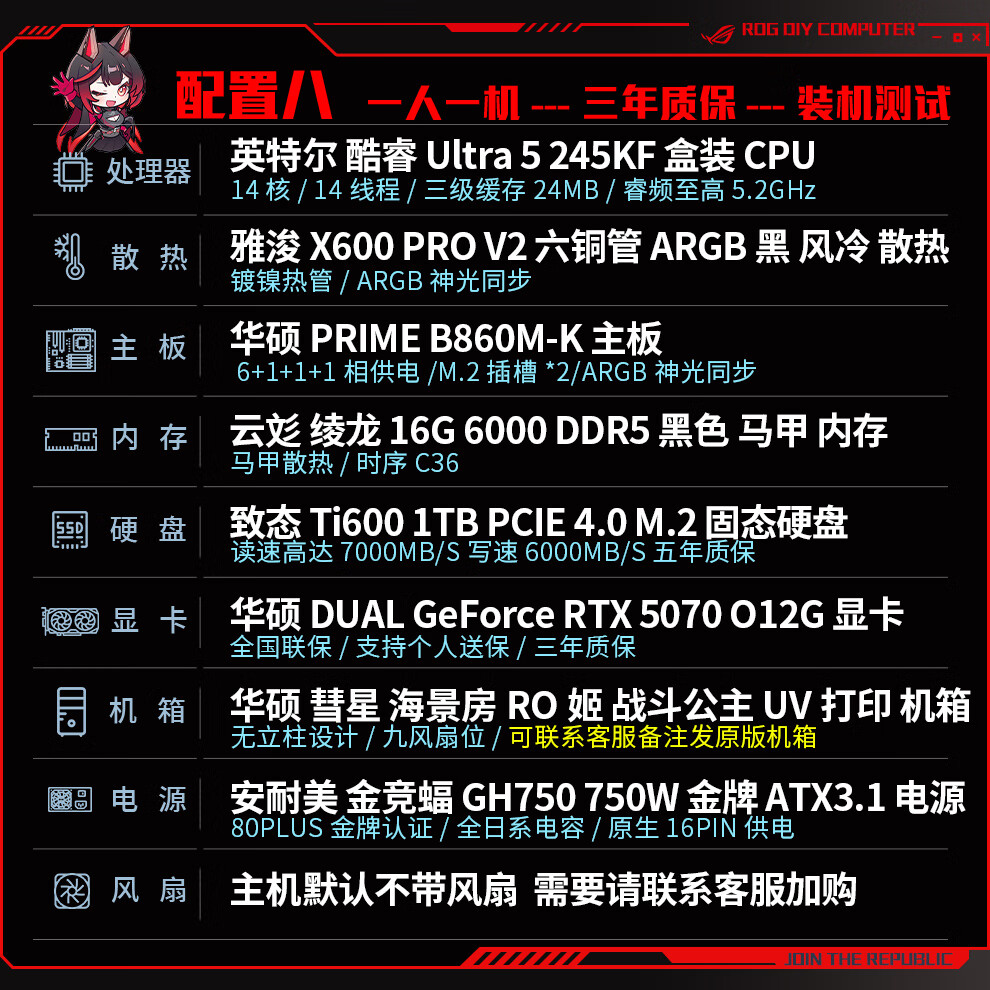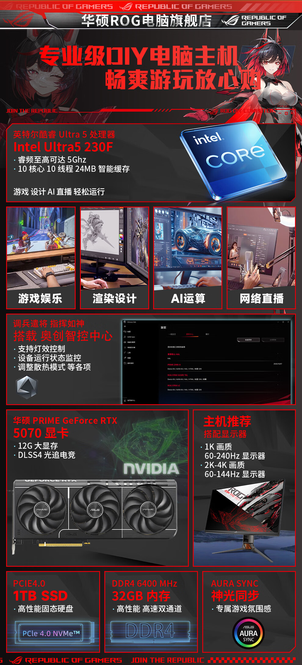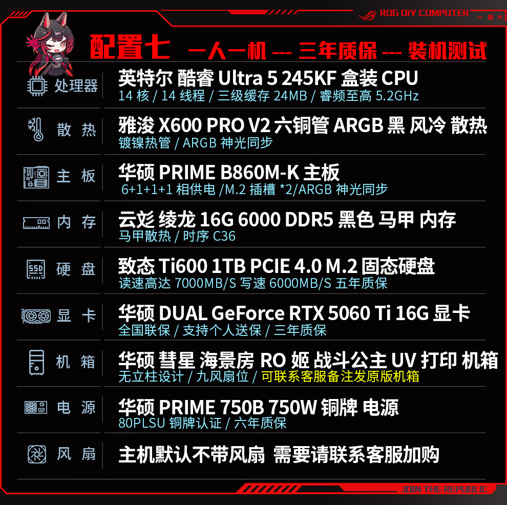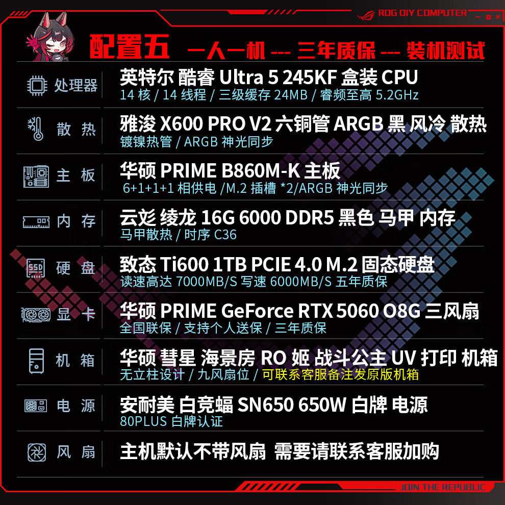 ASUS ROG family bucket 230F/RTX5060Ti RTX5070 computer host live broadcast e-sports Delta game design rendering desktop assembly computer DIY complete machine with two 230F+RTX5060Ti