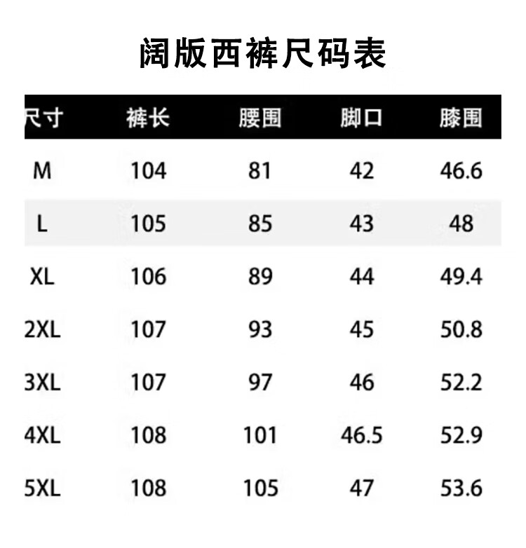 Outseam (cm) 99 cm 101.5 cm 104 cm 106.5 cm 109 cm