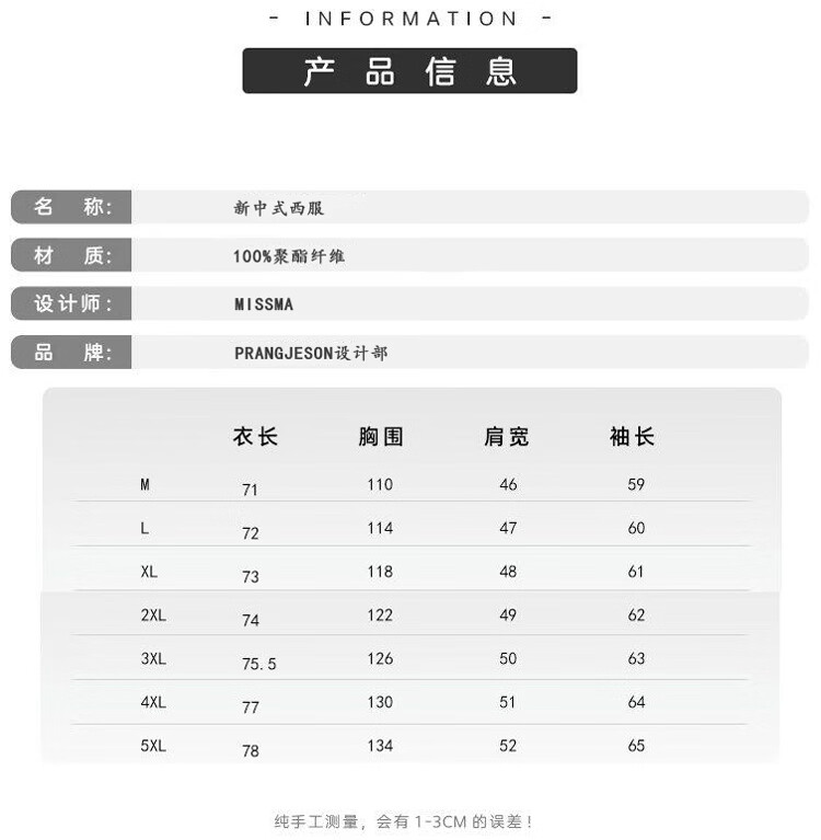 China (cm) 165 / 88-90 170 / 96-98 175 / 108-110 180 / 118-122 185 / 126-130
